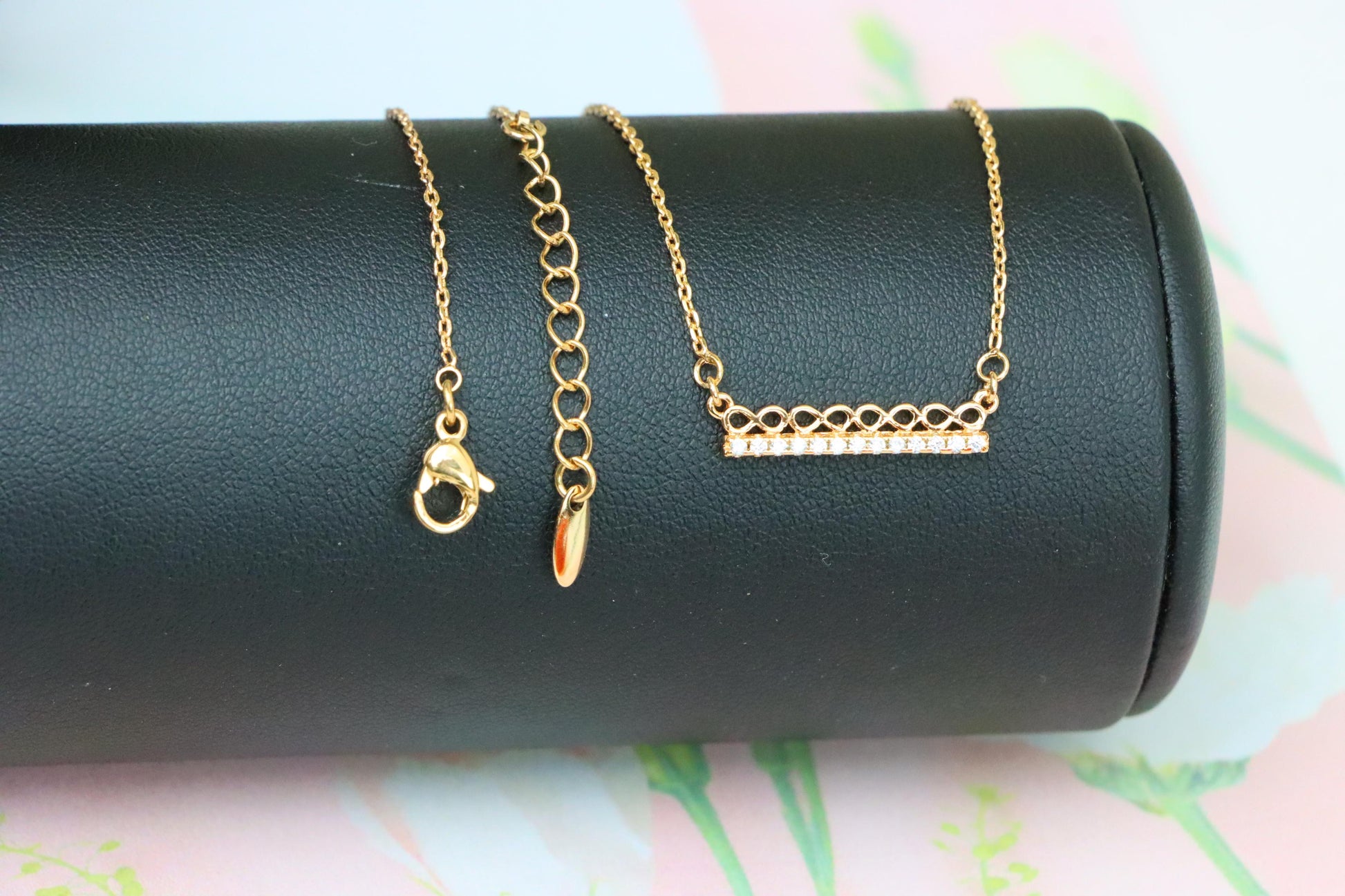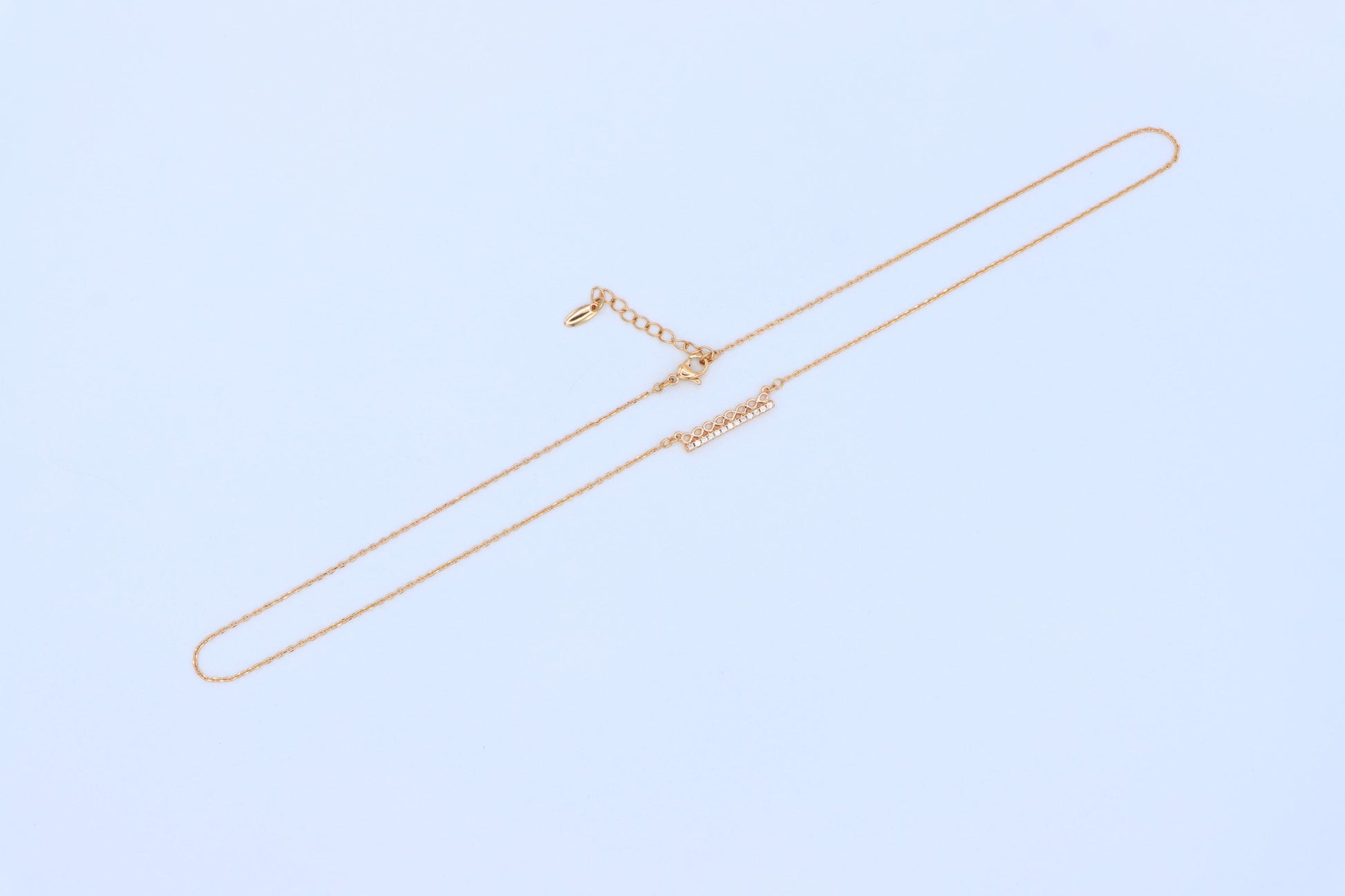 Elegant Rose Gold Bar Necklace with Geometric Crystal Accent, XPNL1895 (2160-8)