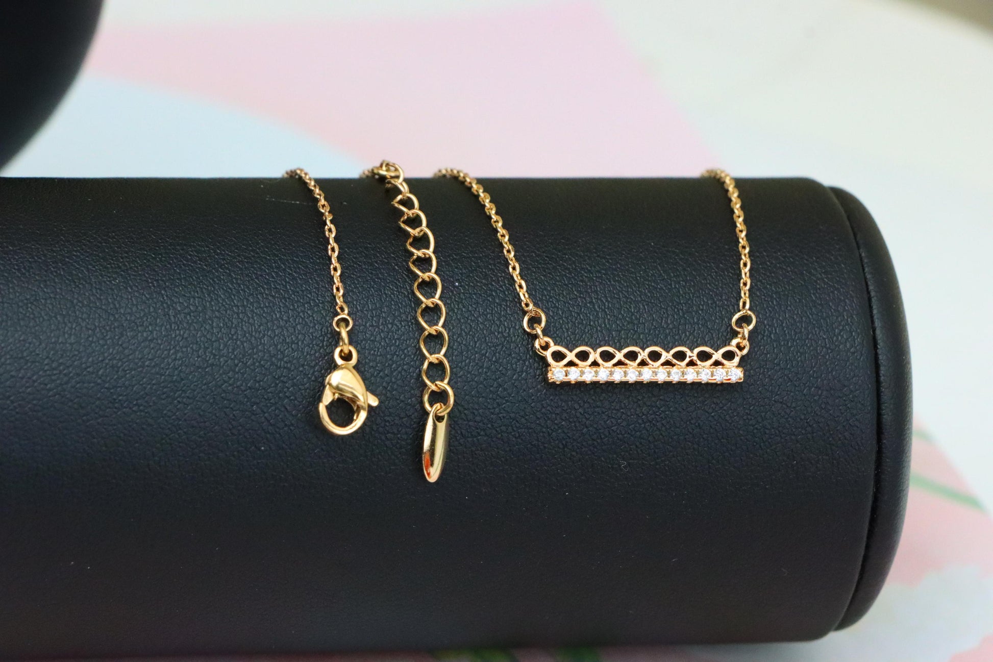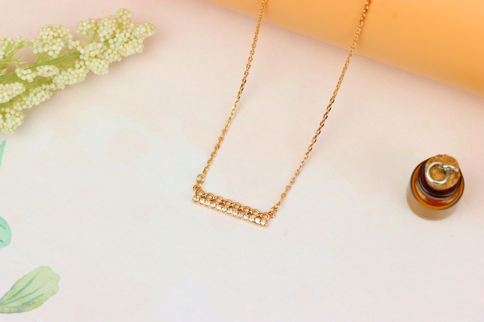 Elegant Rose Gold Bar Necklace with Geometric Crystal Accent, XPNL1895