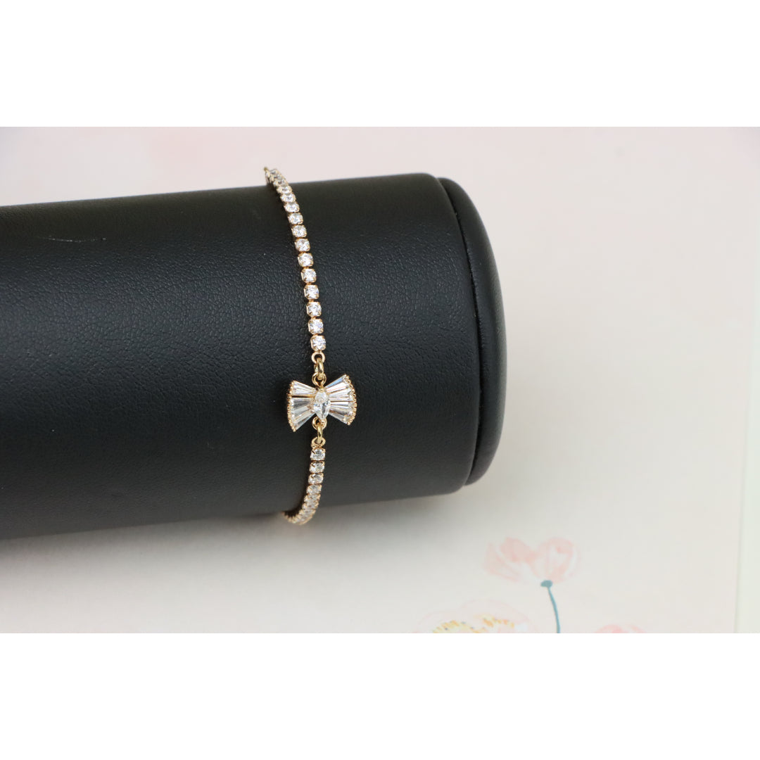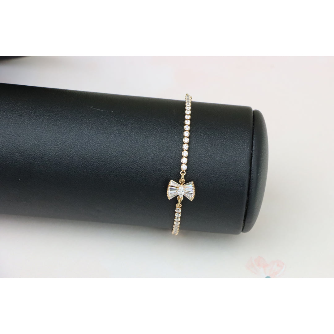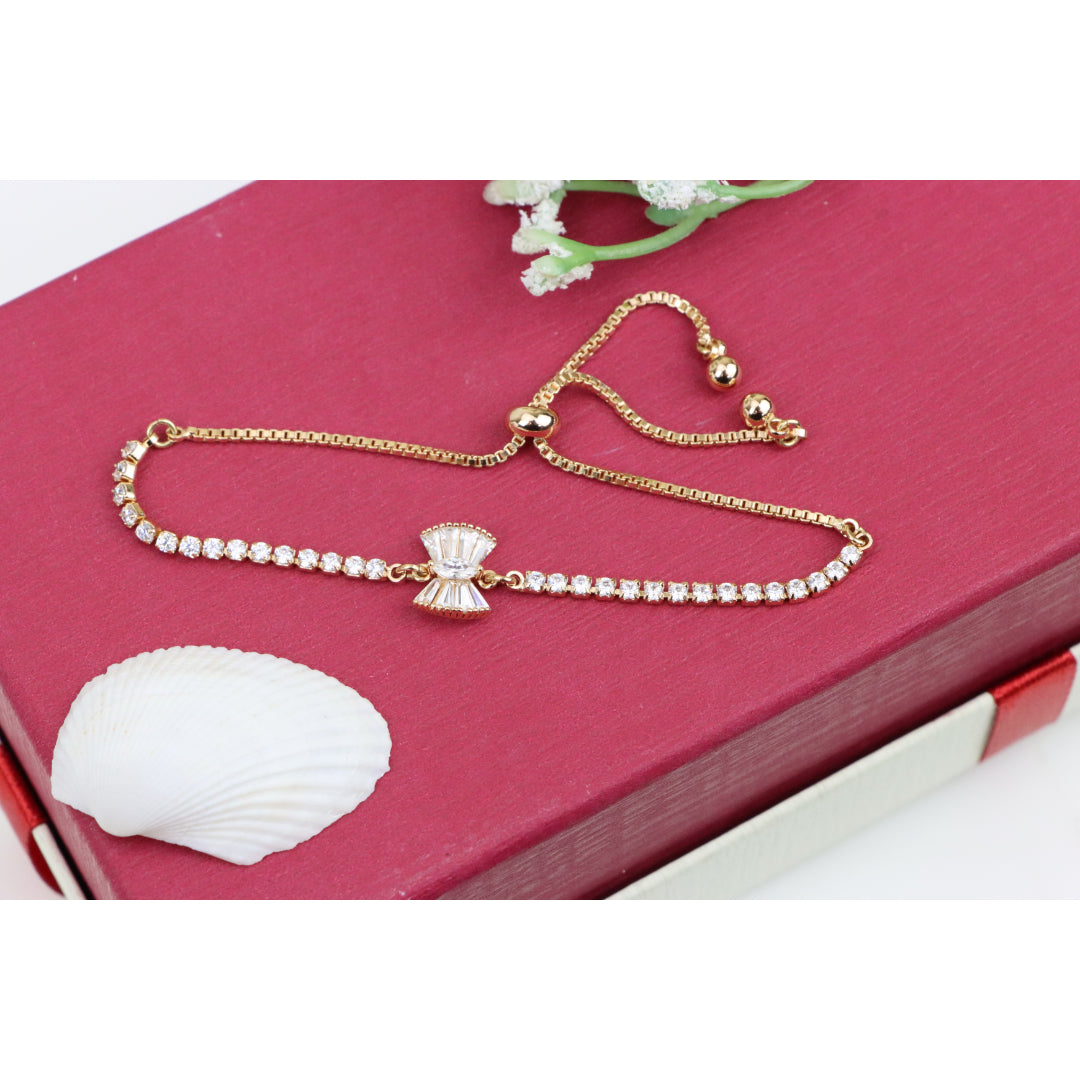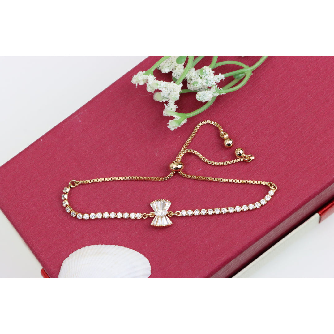 Elegant Rose Gold Bow Charm Adjustable Bracelet with CZ Stones, XPAB0834 (2084-3)