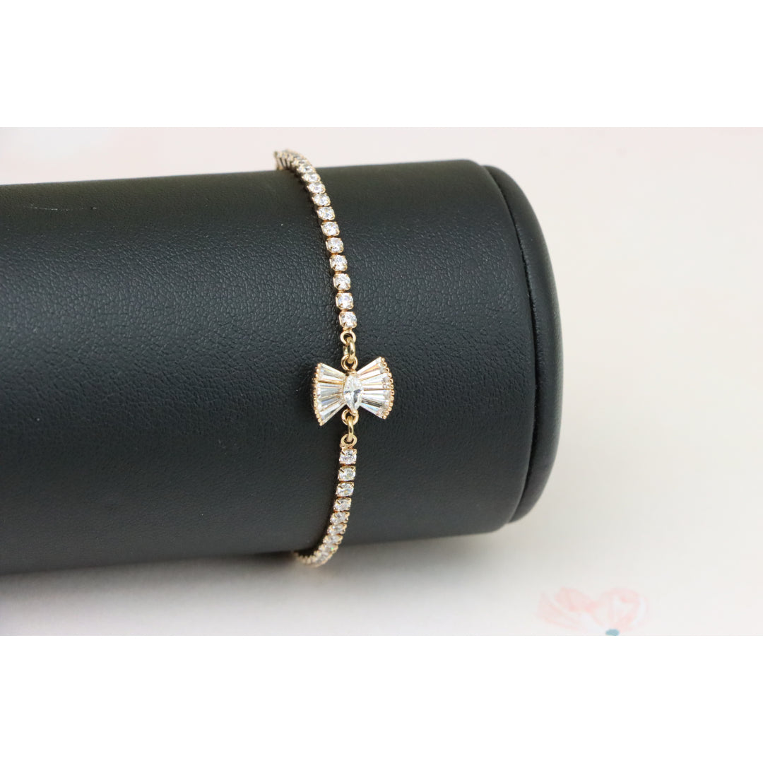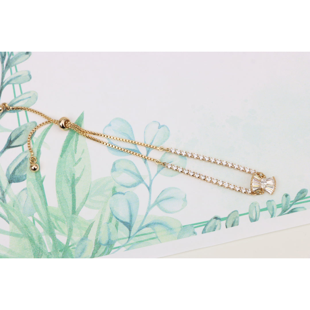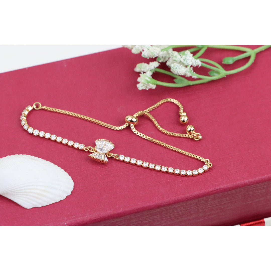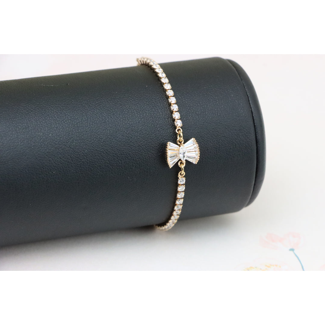 Elegant Rose Gold Bow Charm Adjustable Bracelet with CZ Stones, XPAB0834 (2084-3)