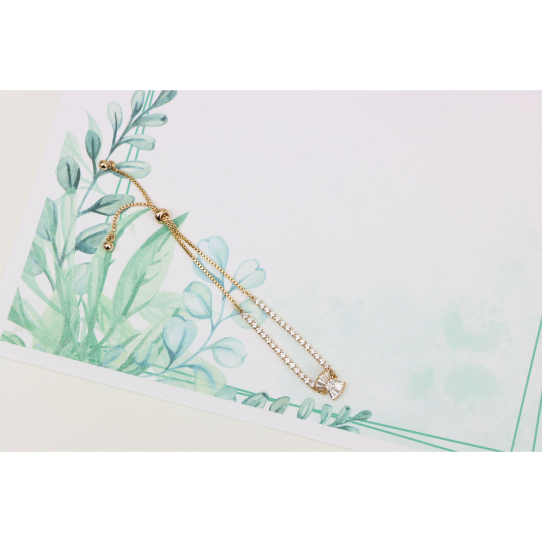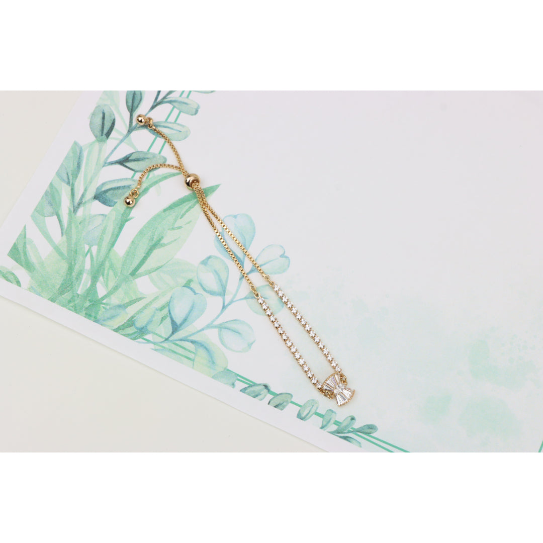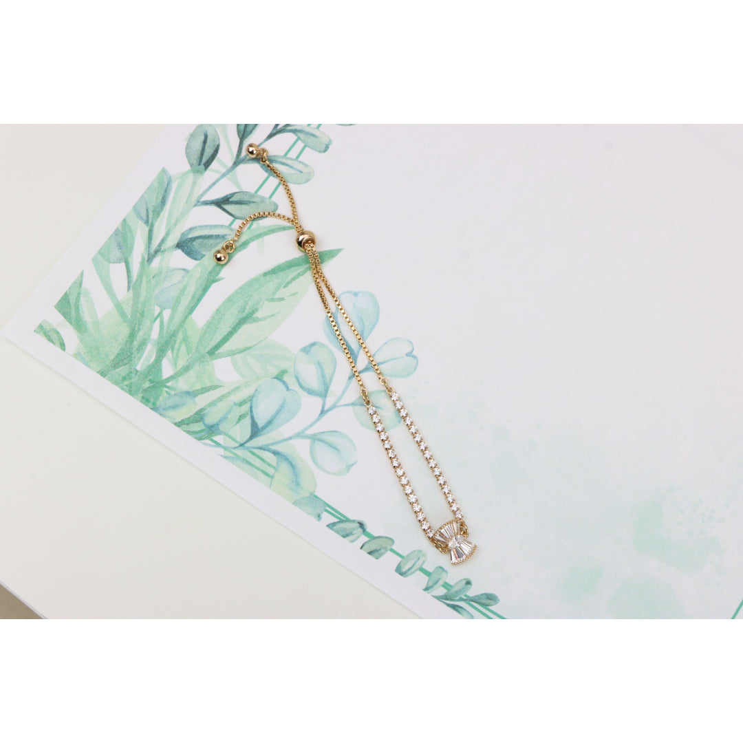 Elegant Rose Gold Bow Charm Adjustable Bracelet with CZ Stones, XPAB0834