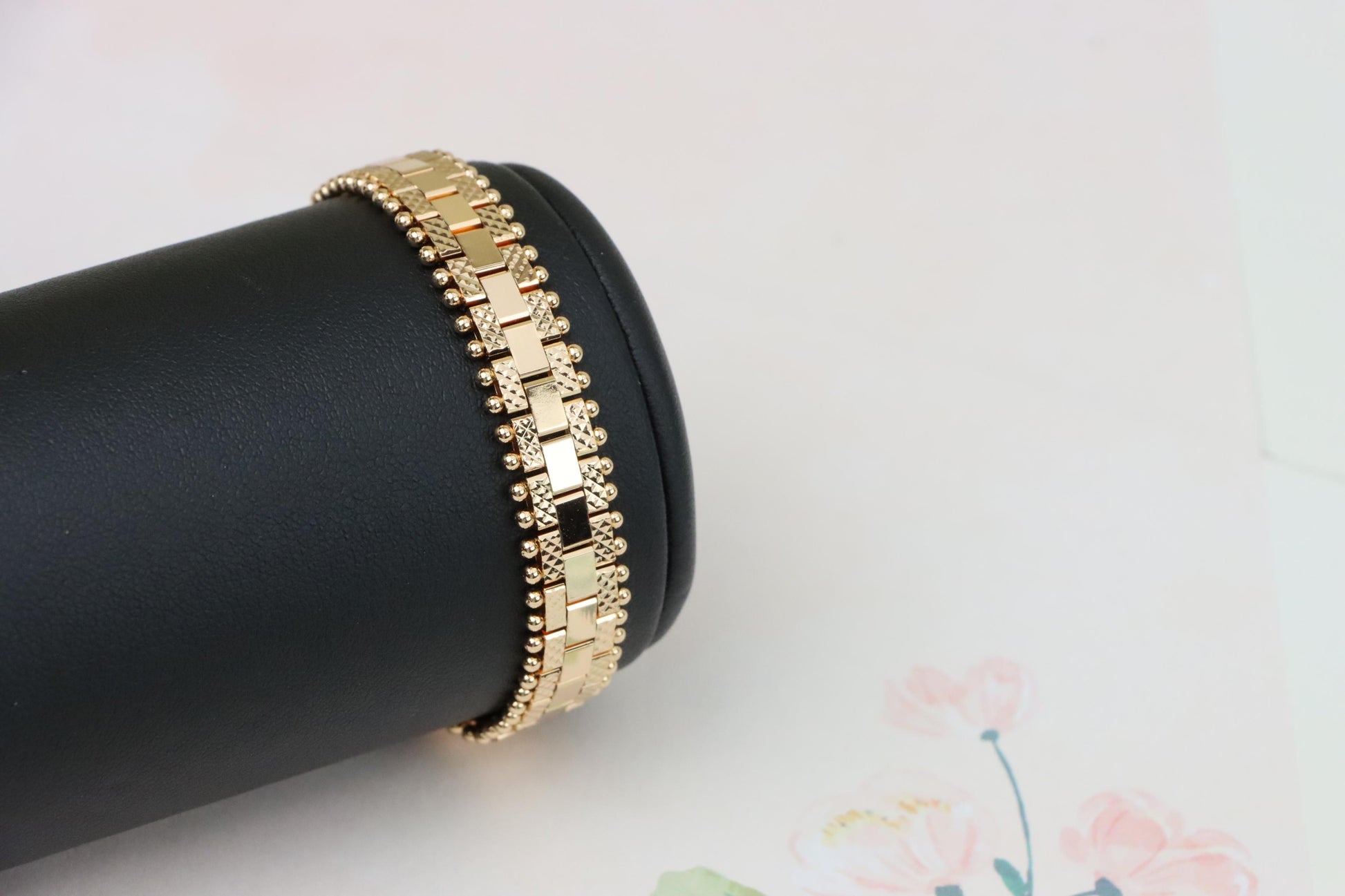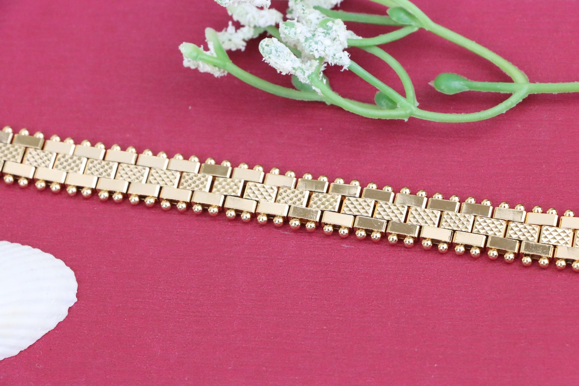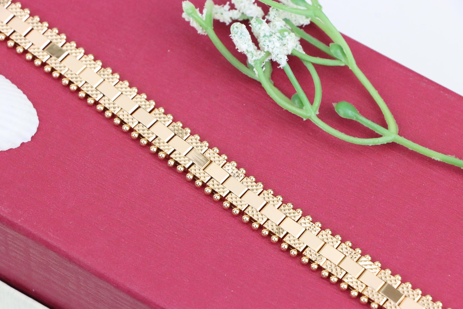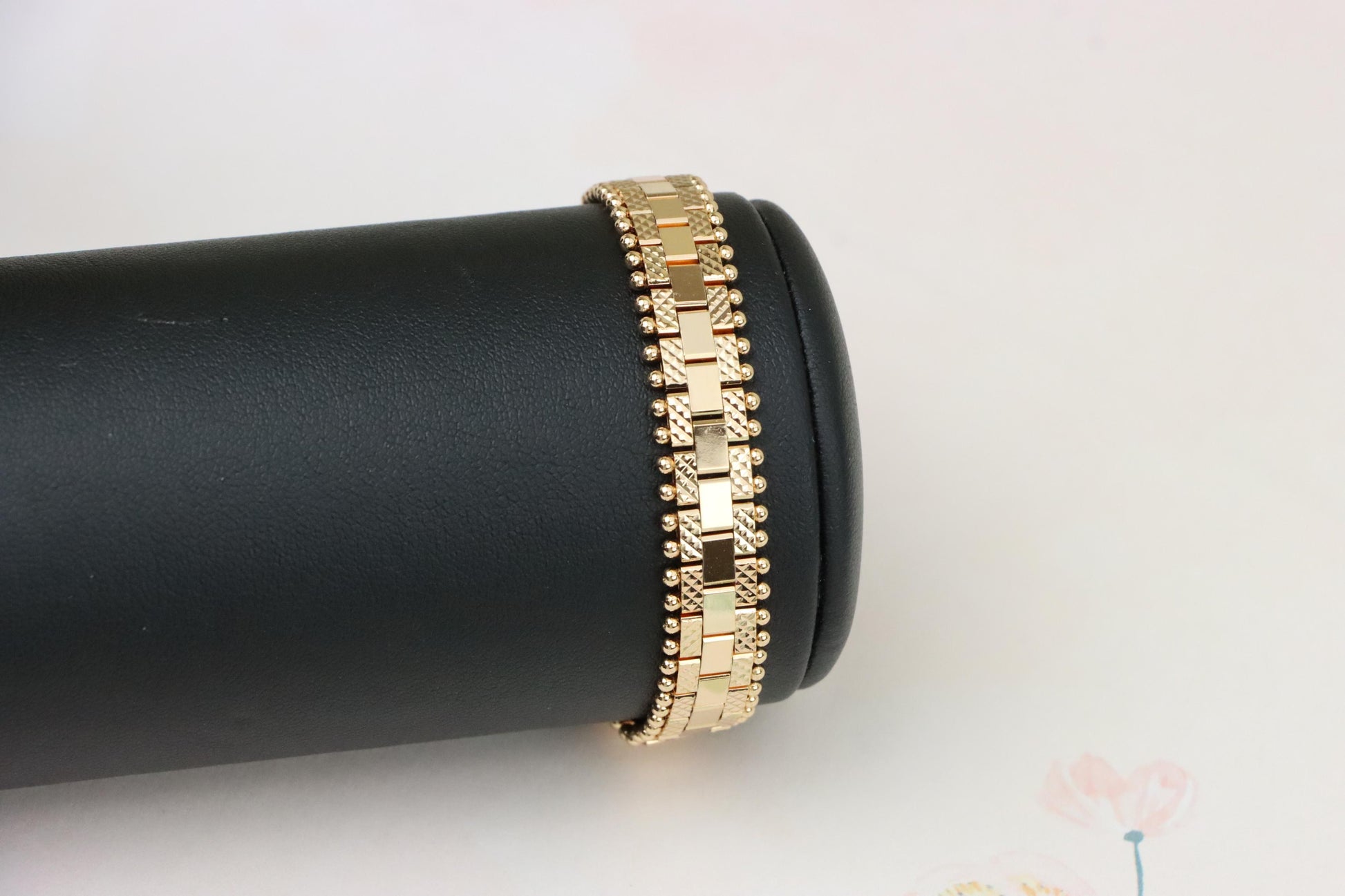 Elegant Rose Gold Bracelet with Beaded Edges and Modern Design, XPBL1004