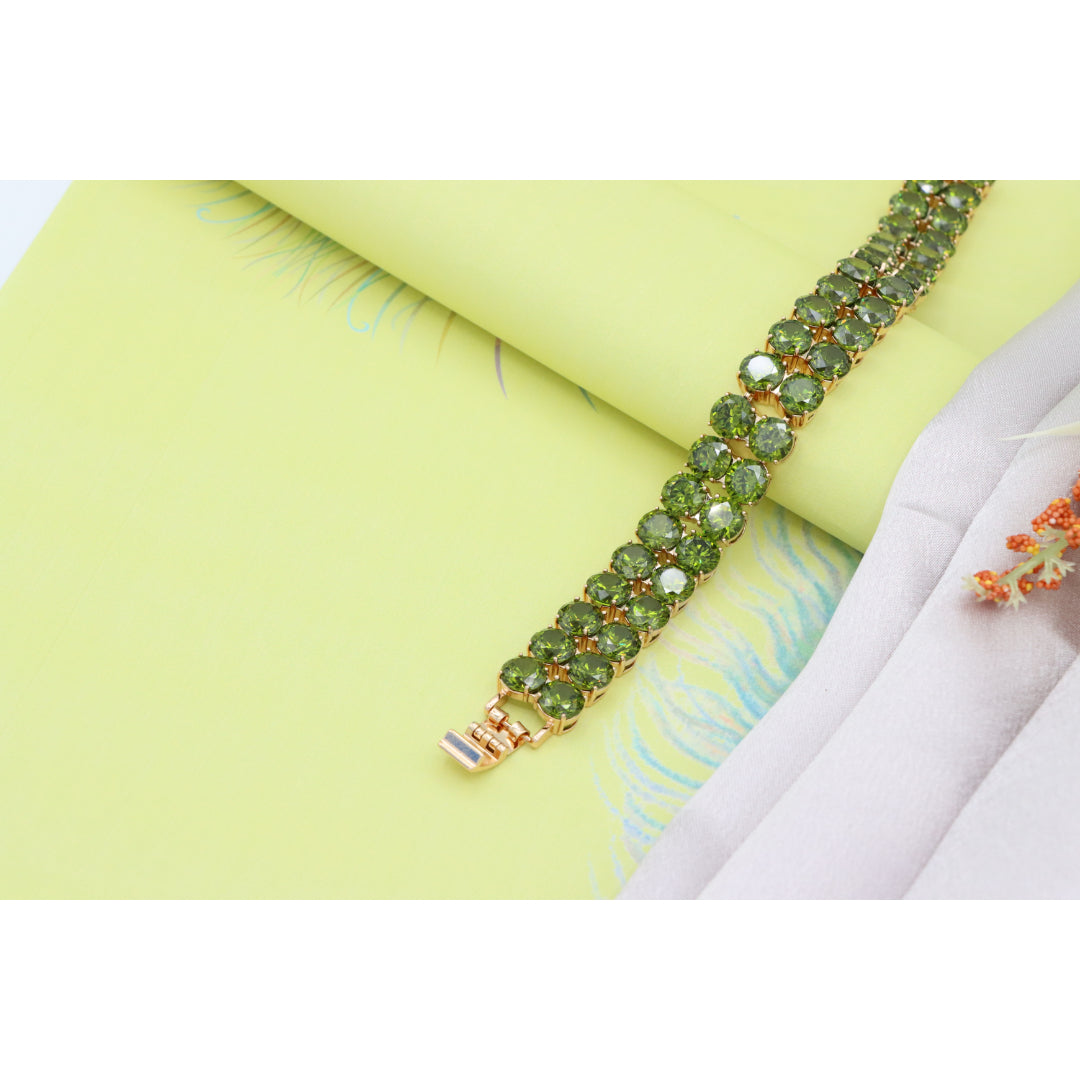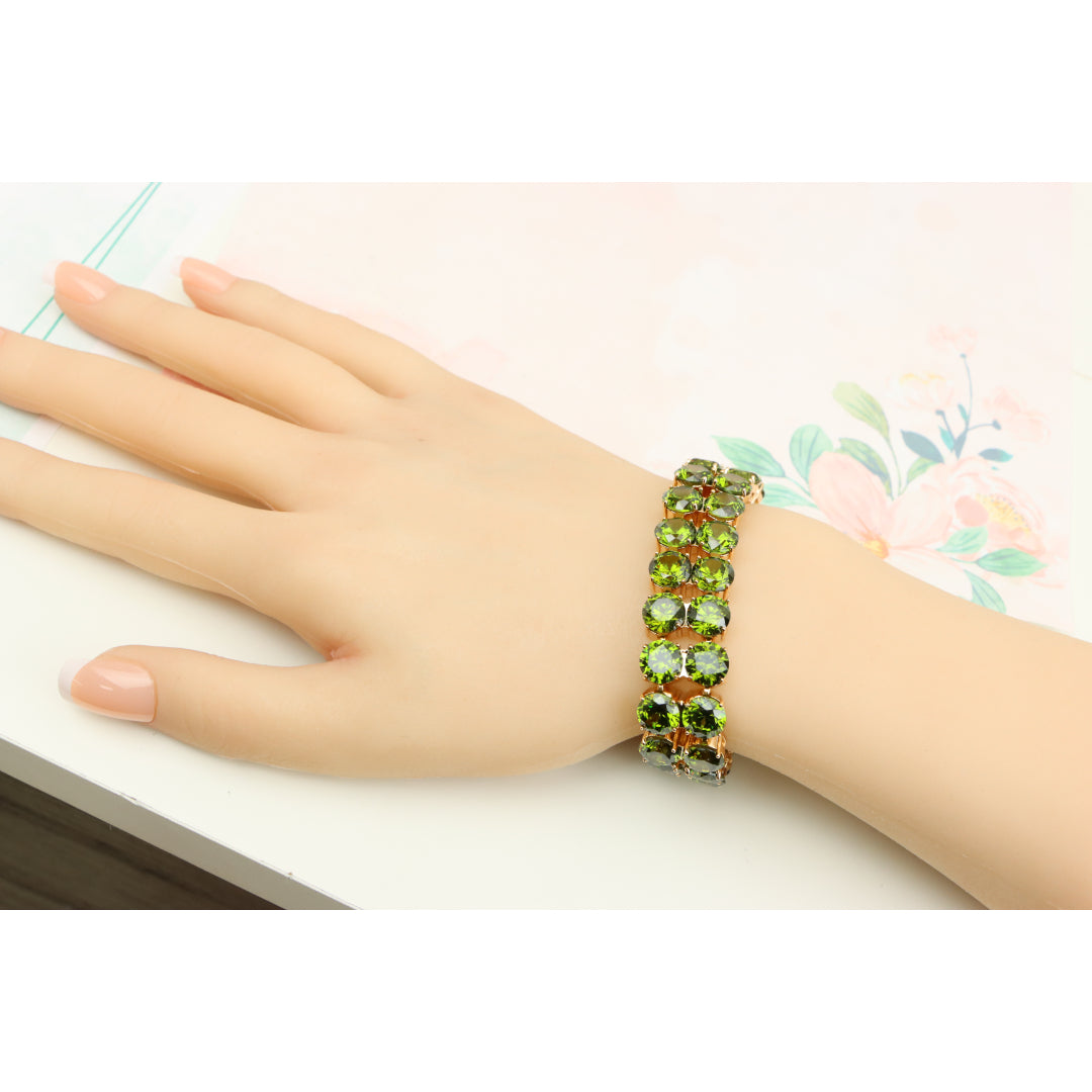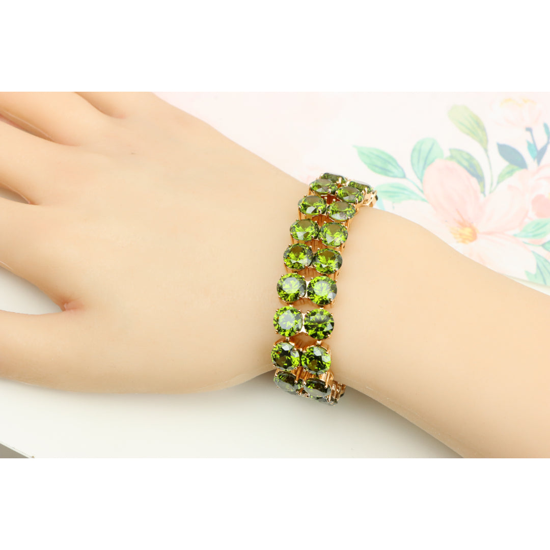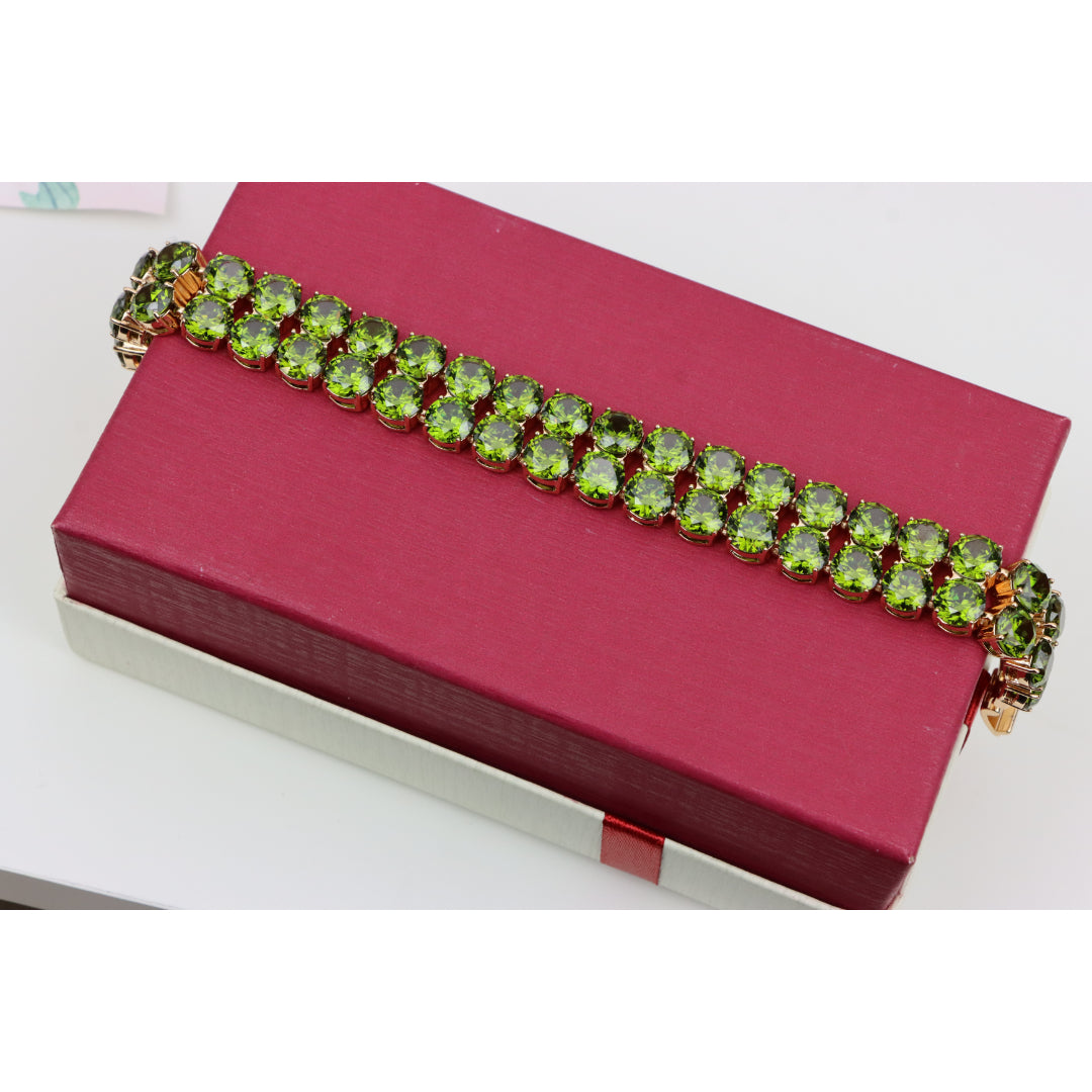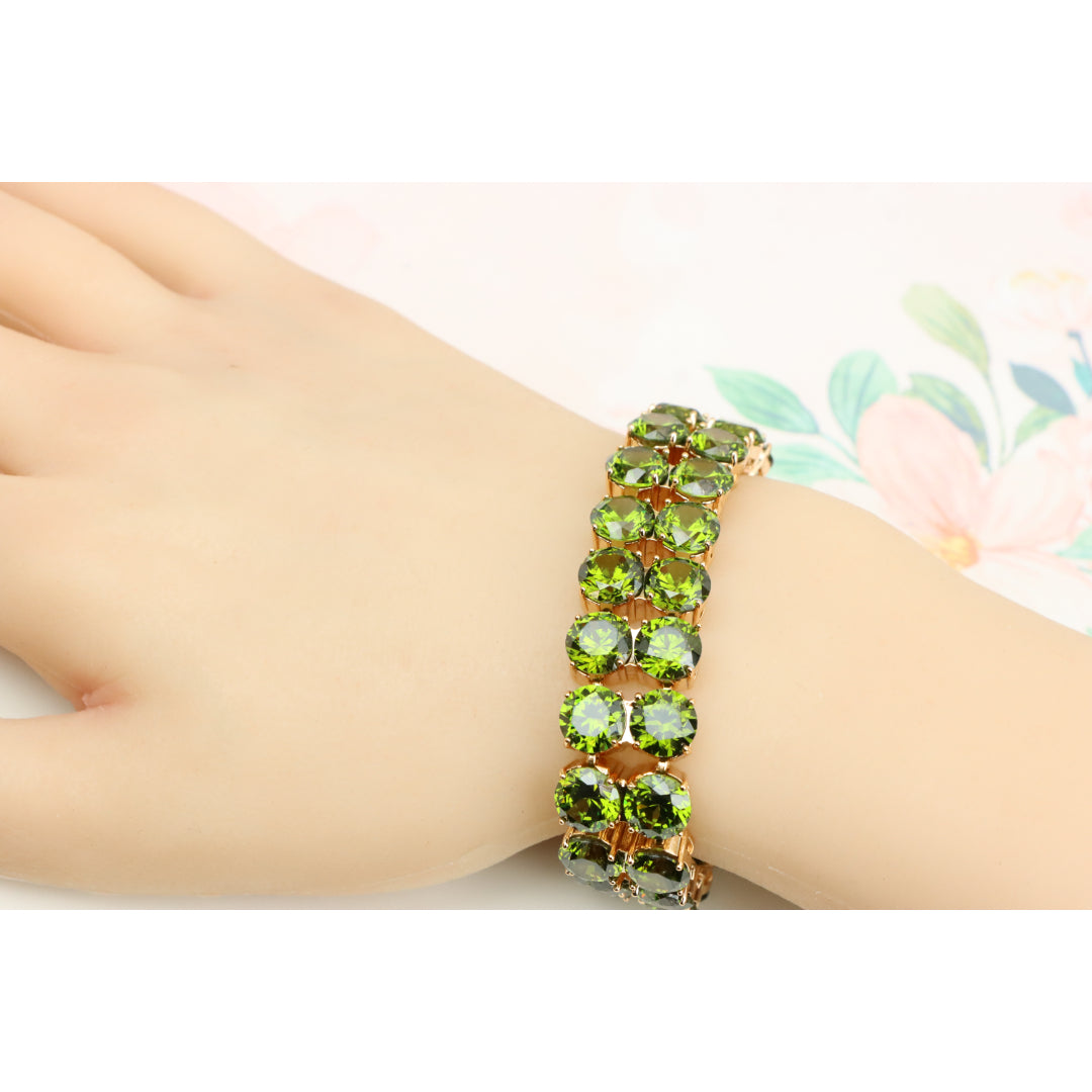 Elegant Rose Gold Bracelet with Green Sparkling Stones, XPBL0643 (2065-2)
