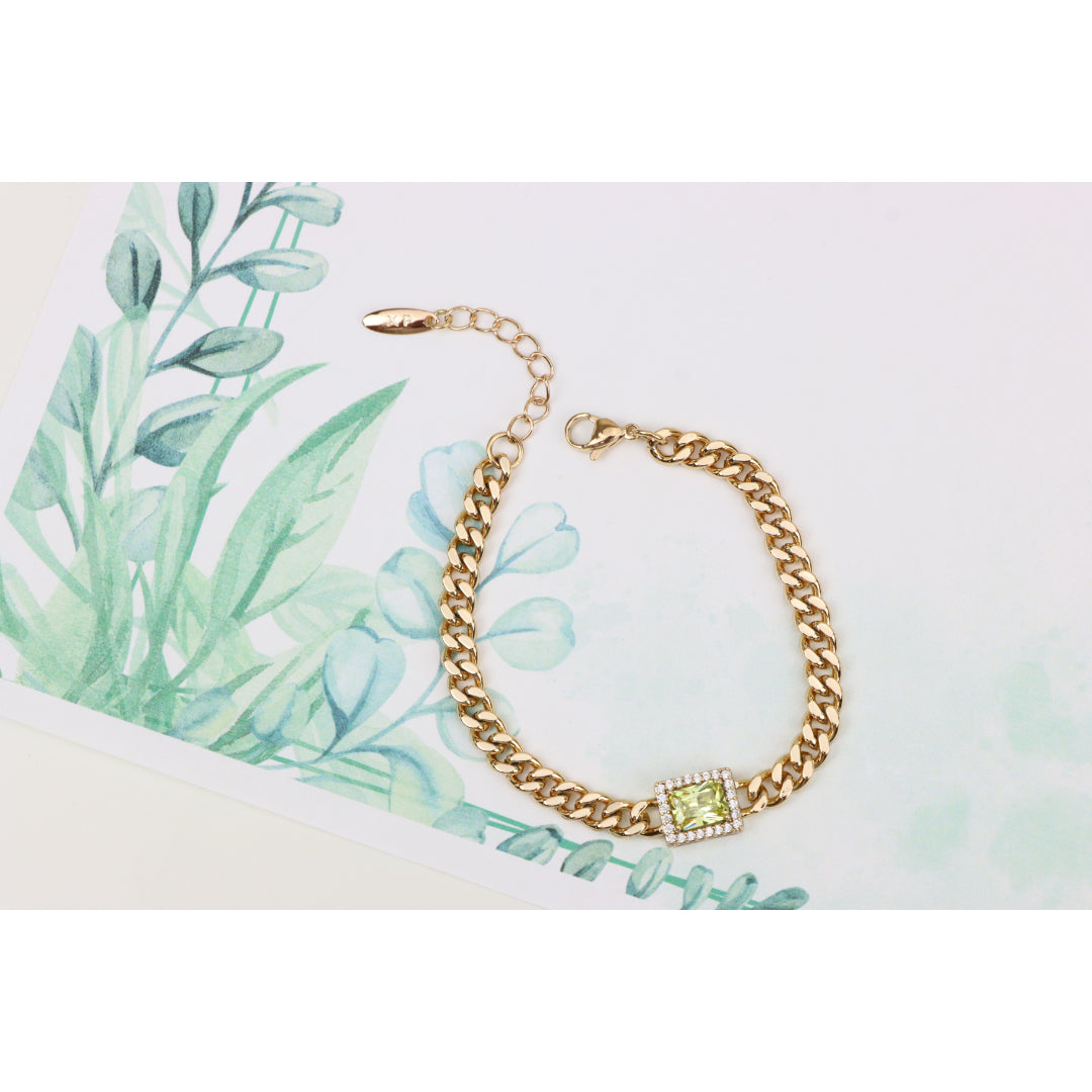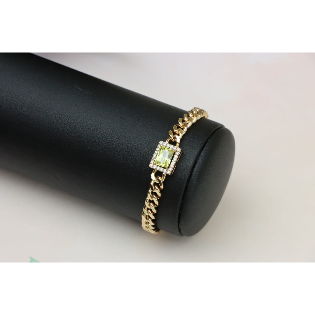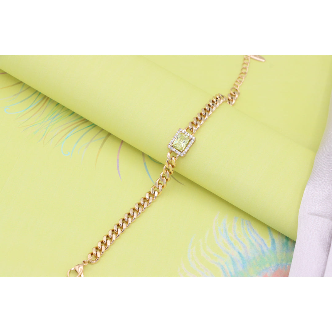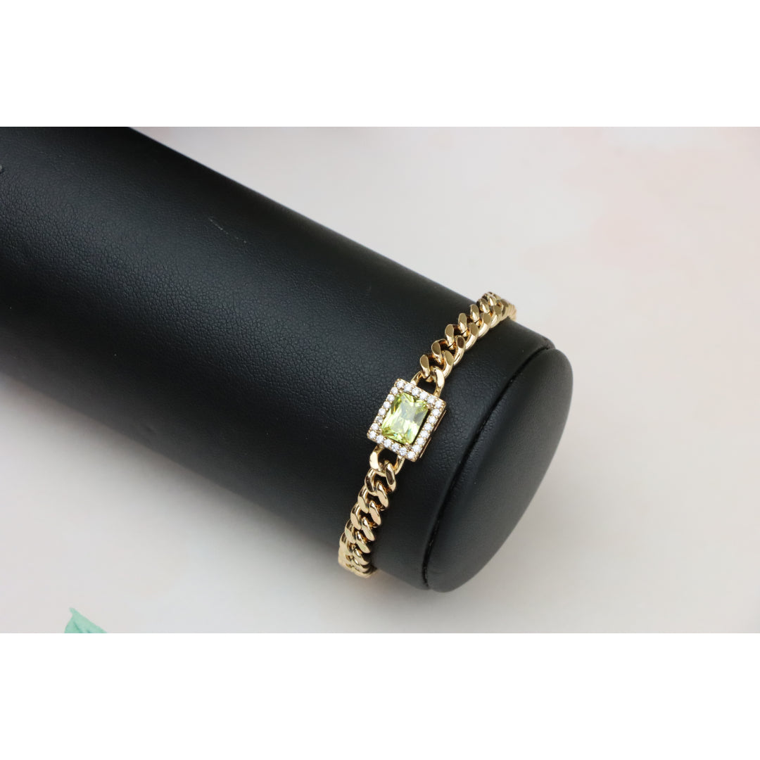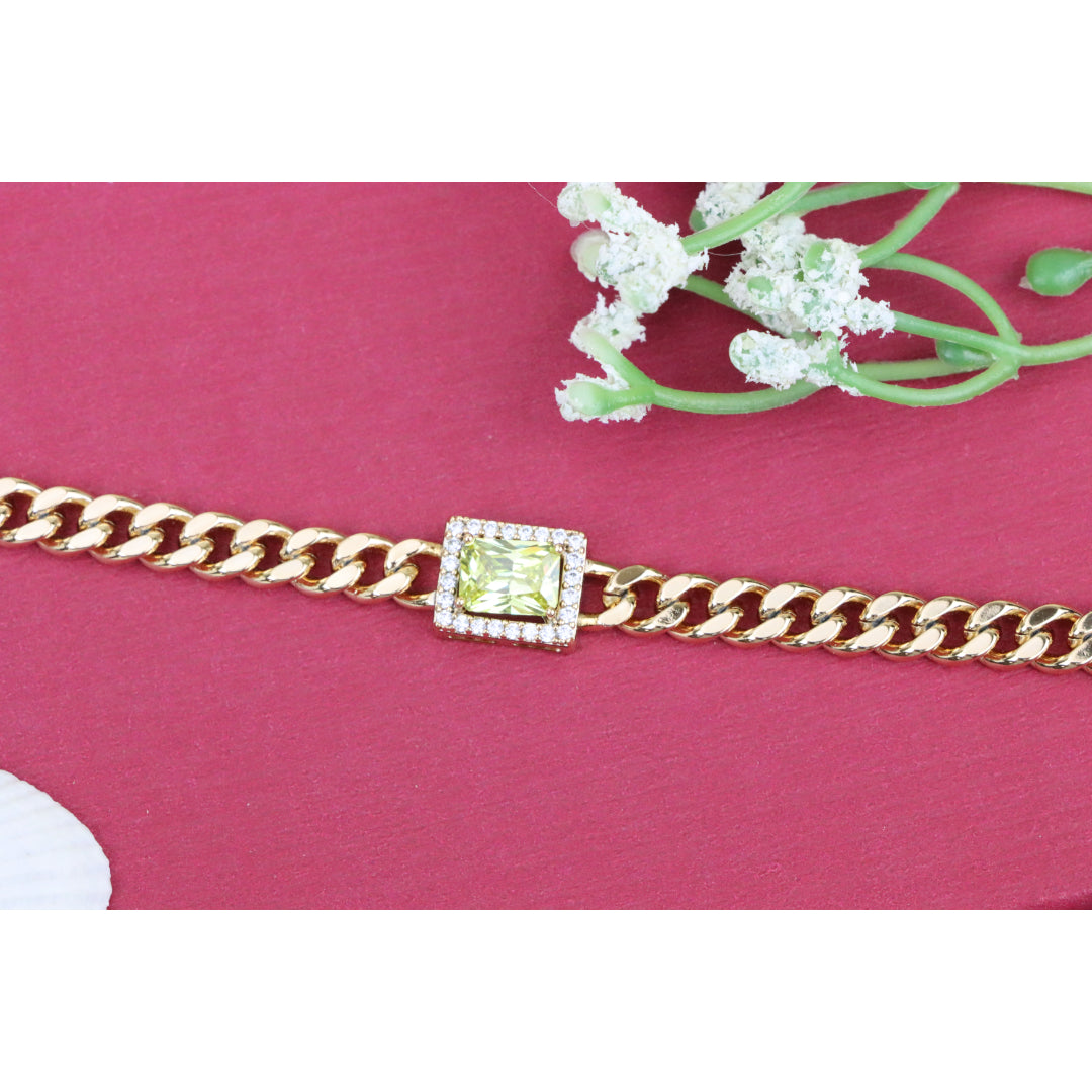 Add a splash of elegance with this luxurious rose gold bracelet featuring a vivid green central stone, surrounded by sparkling cubic zirconia.