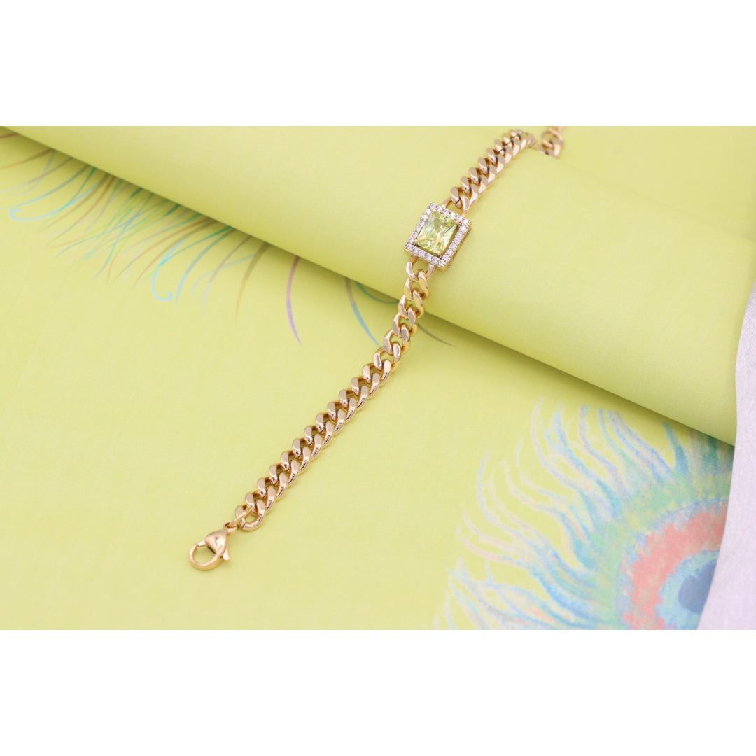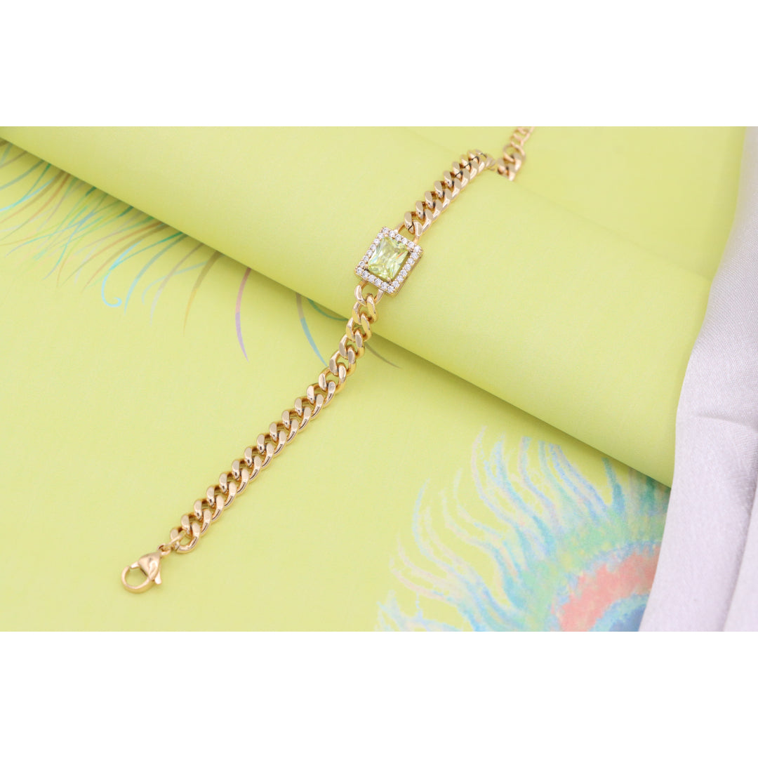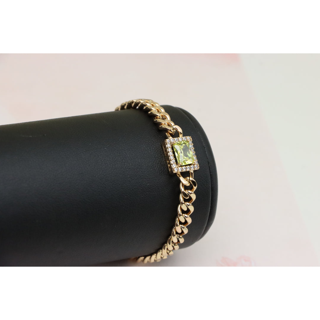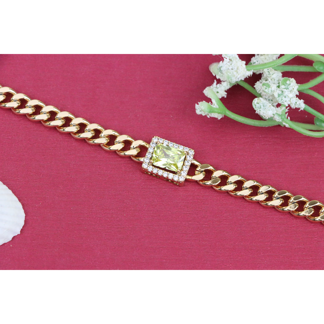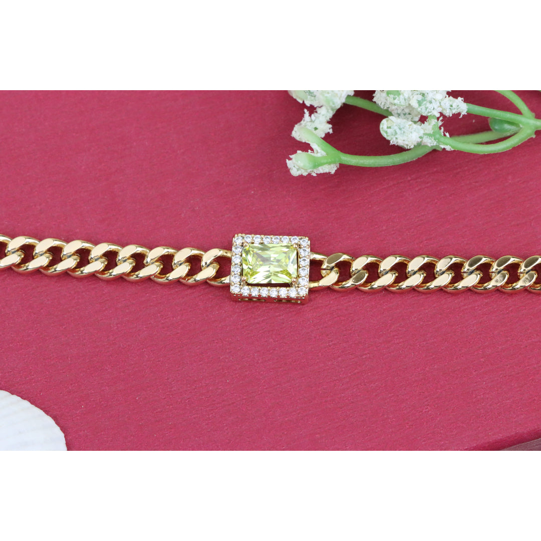 Add a splash of elegance with this luxurious rose gold bracelet featuring a vivid green central stone, surrounded by sparkling cubic zirconia.