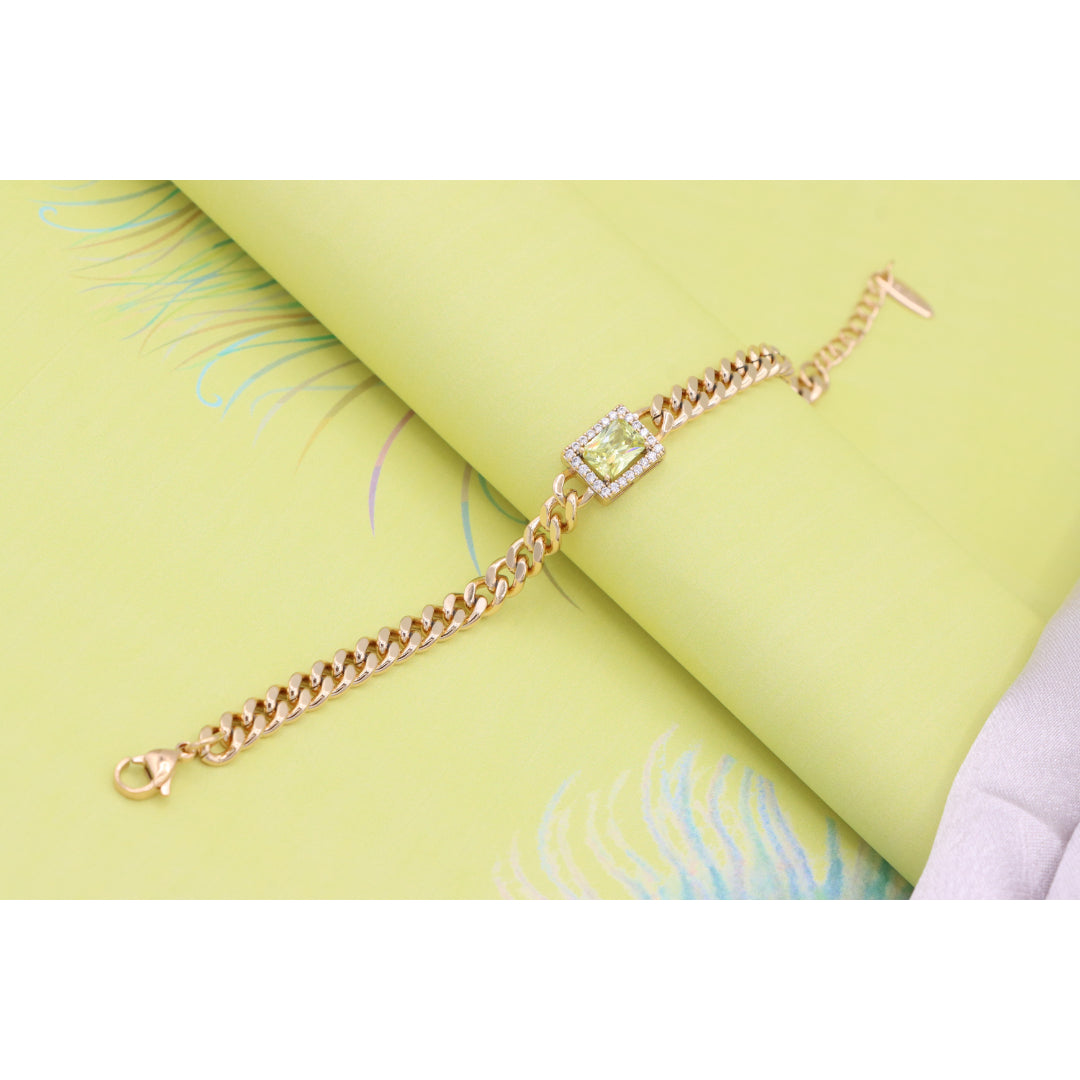 Elegant Rose Gold Bracelet with Green Stone & Cubic Zirconia Charm, XPBL0805 (2081-4)