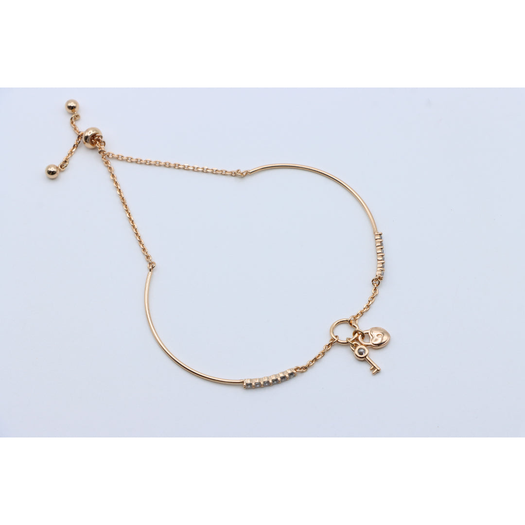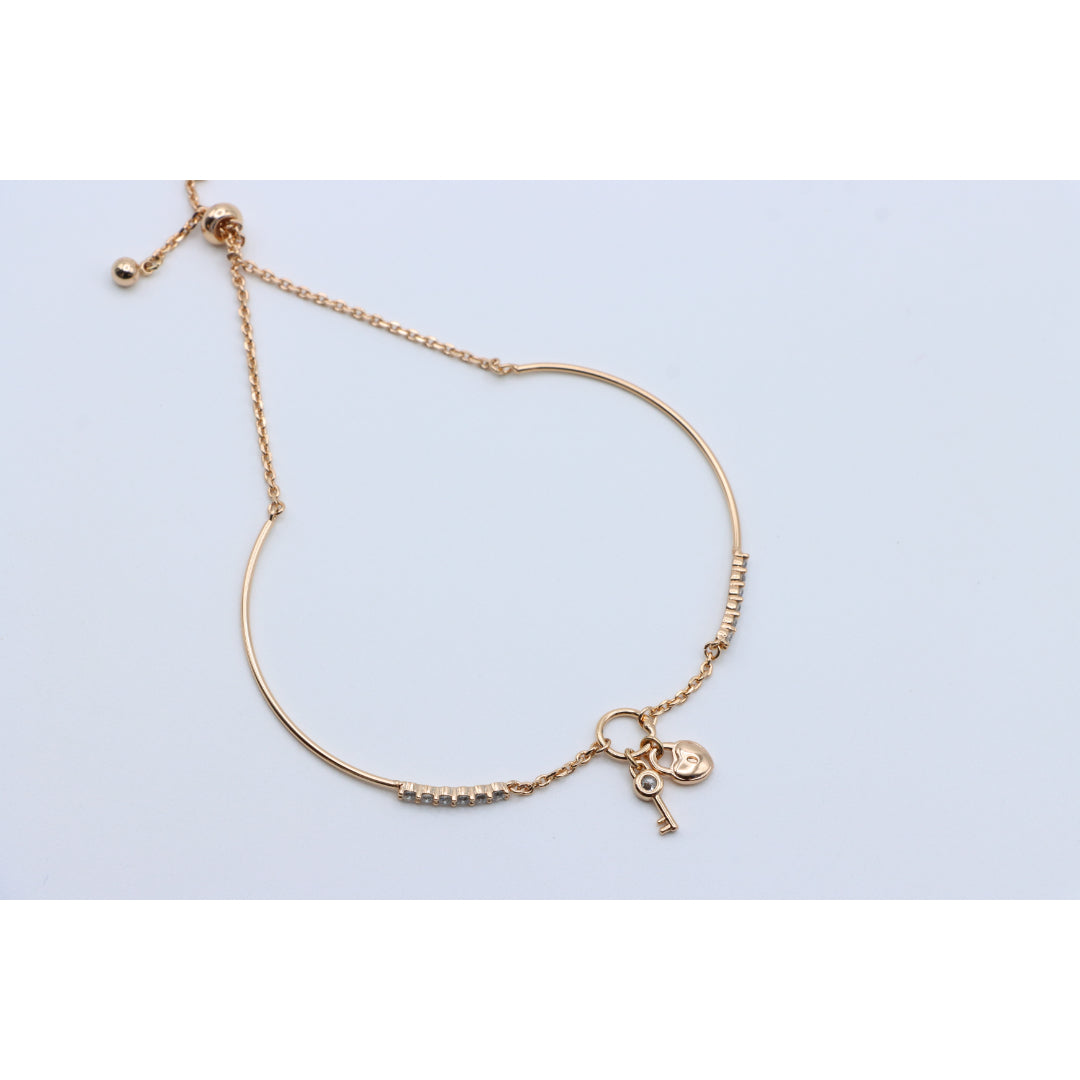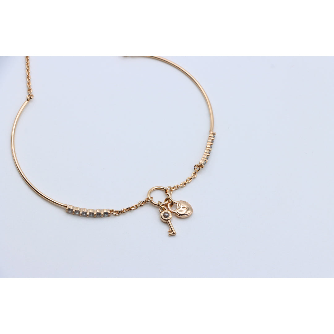 Elegant Rose Gold Bracelet with Heart and Key Charm, XPAB0699