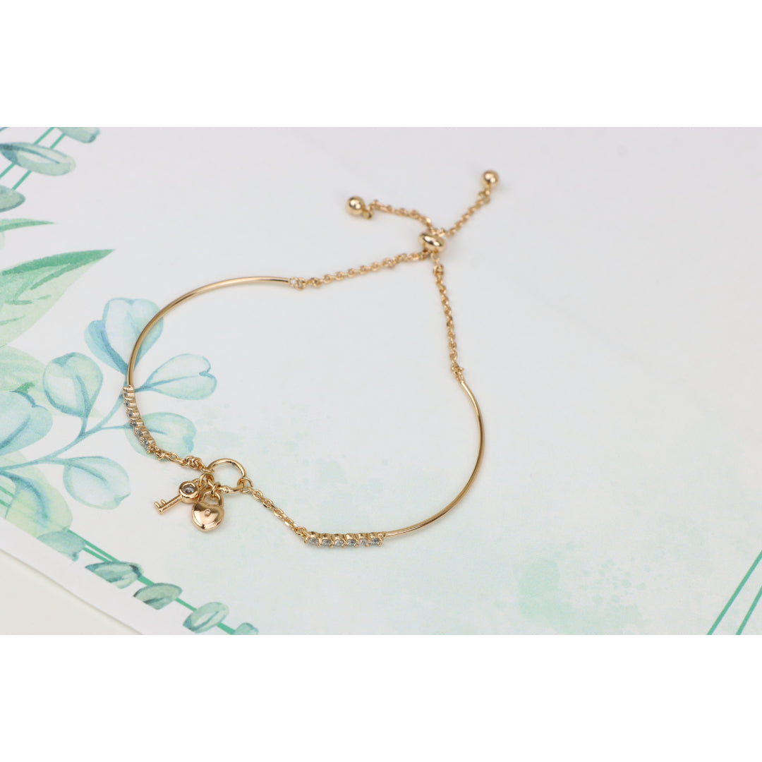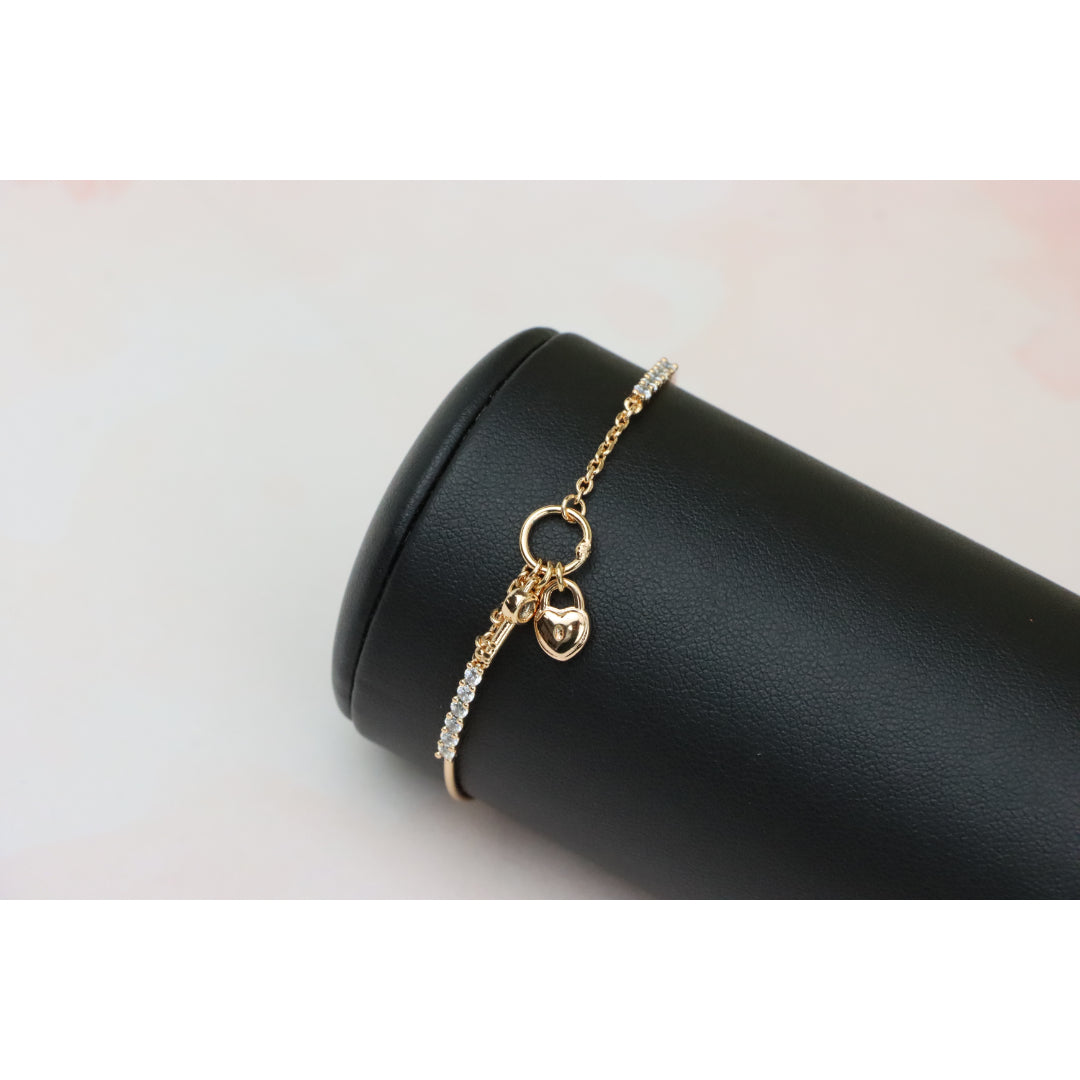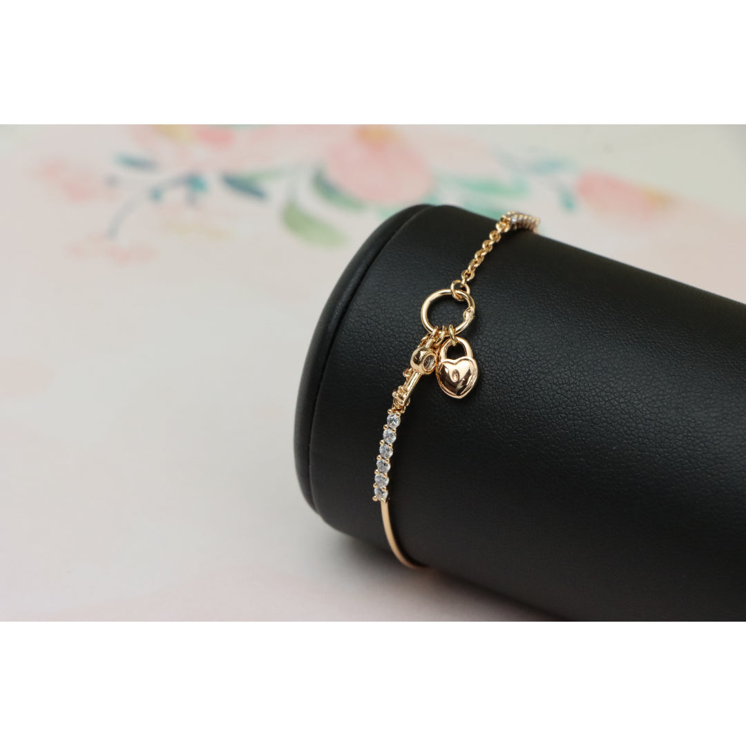 Elegant Rose Gold Bracelet with Heart and Key Charm, XPAB0699