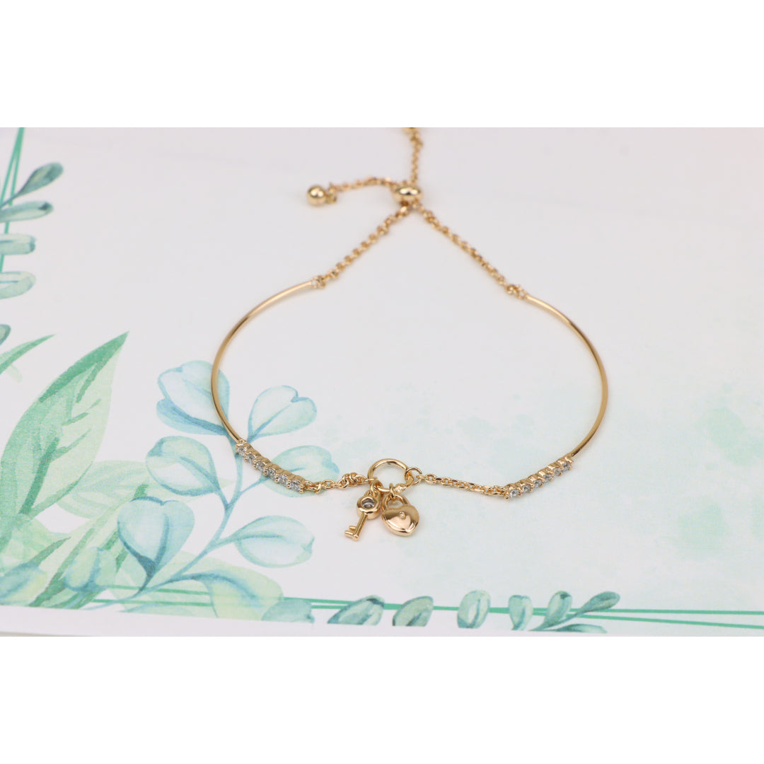 Elegant Rose Gold Bracelet with Heart and Key Charm, XPAB0699 (2070-8)