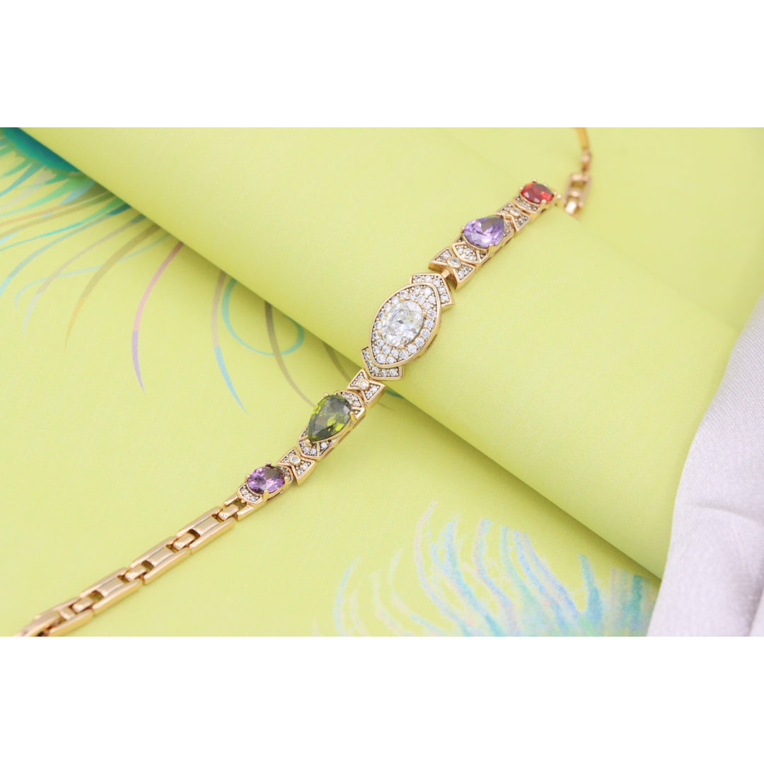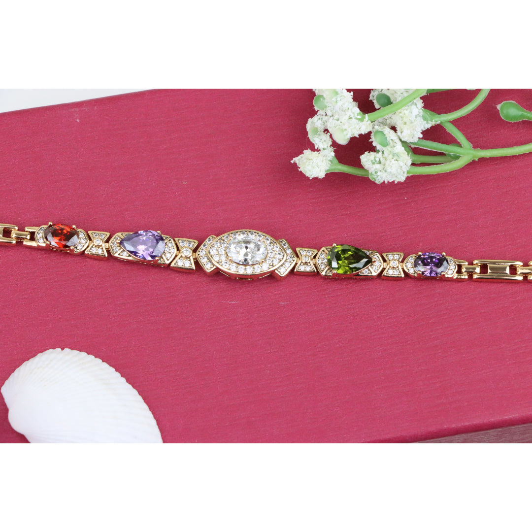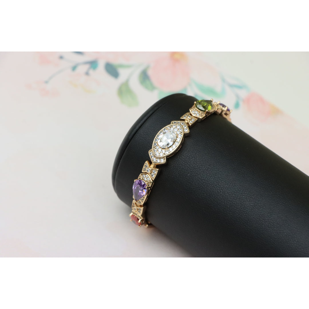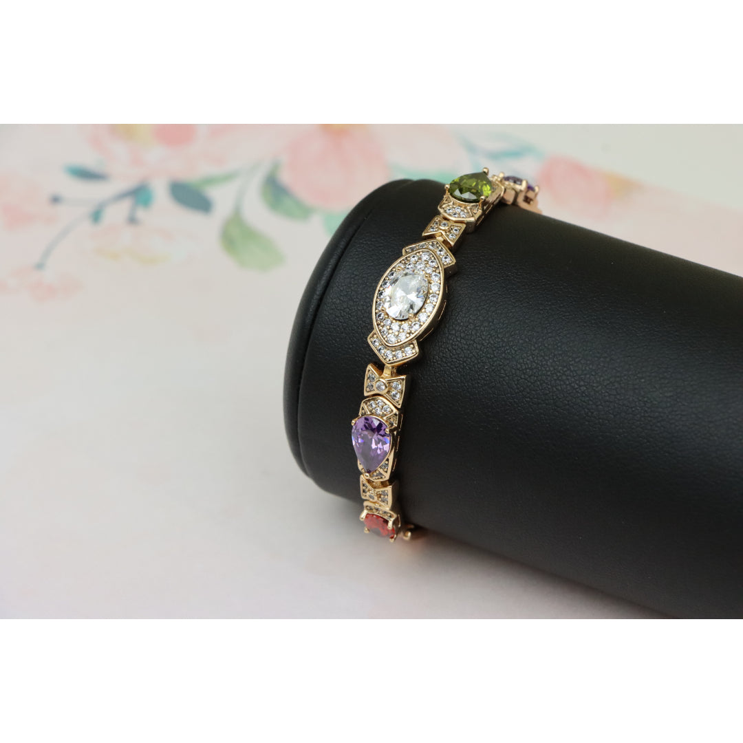 Elegant Rose Gold Bracelet with Multicolor Stones and CZ Sparkle, XPBL0727 (2073-6)