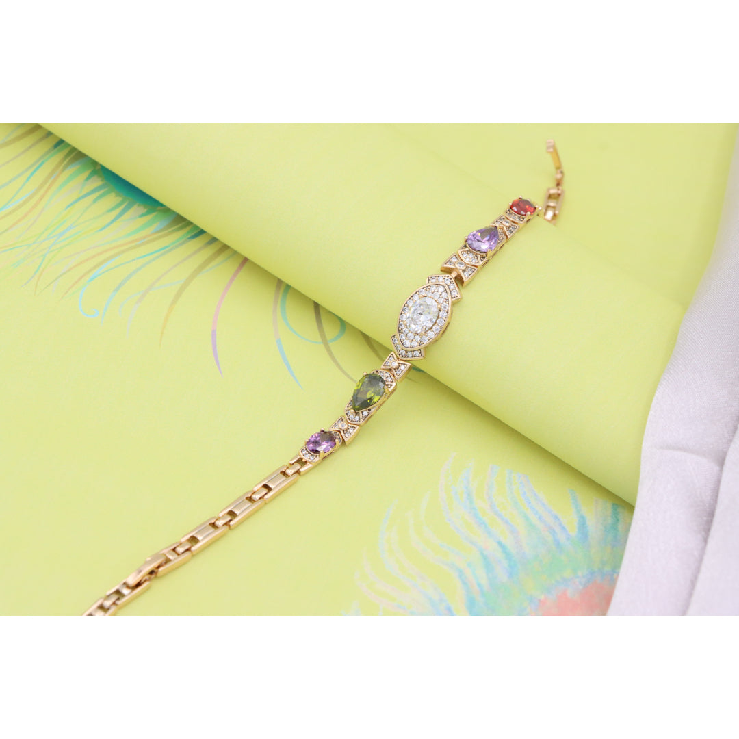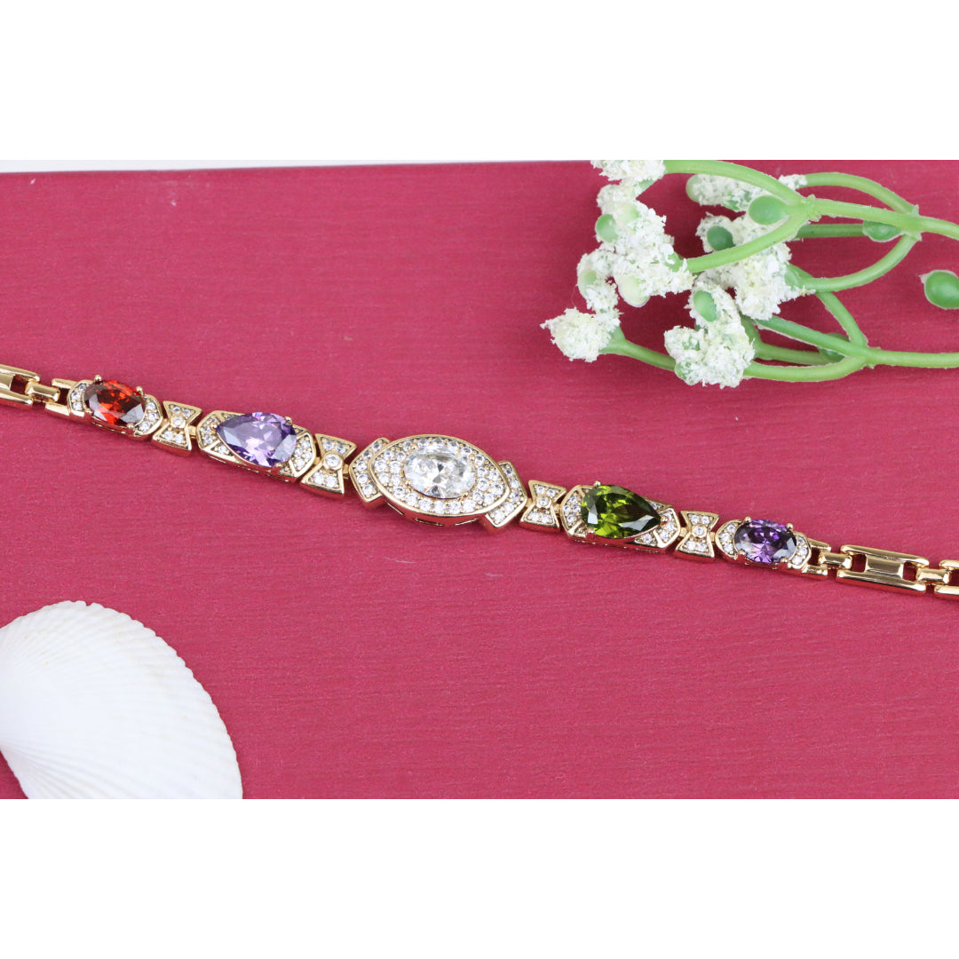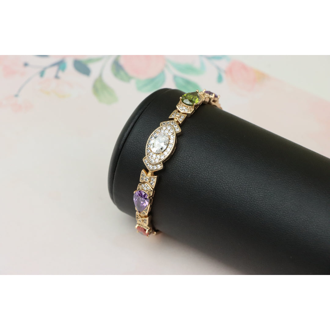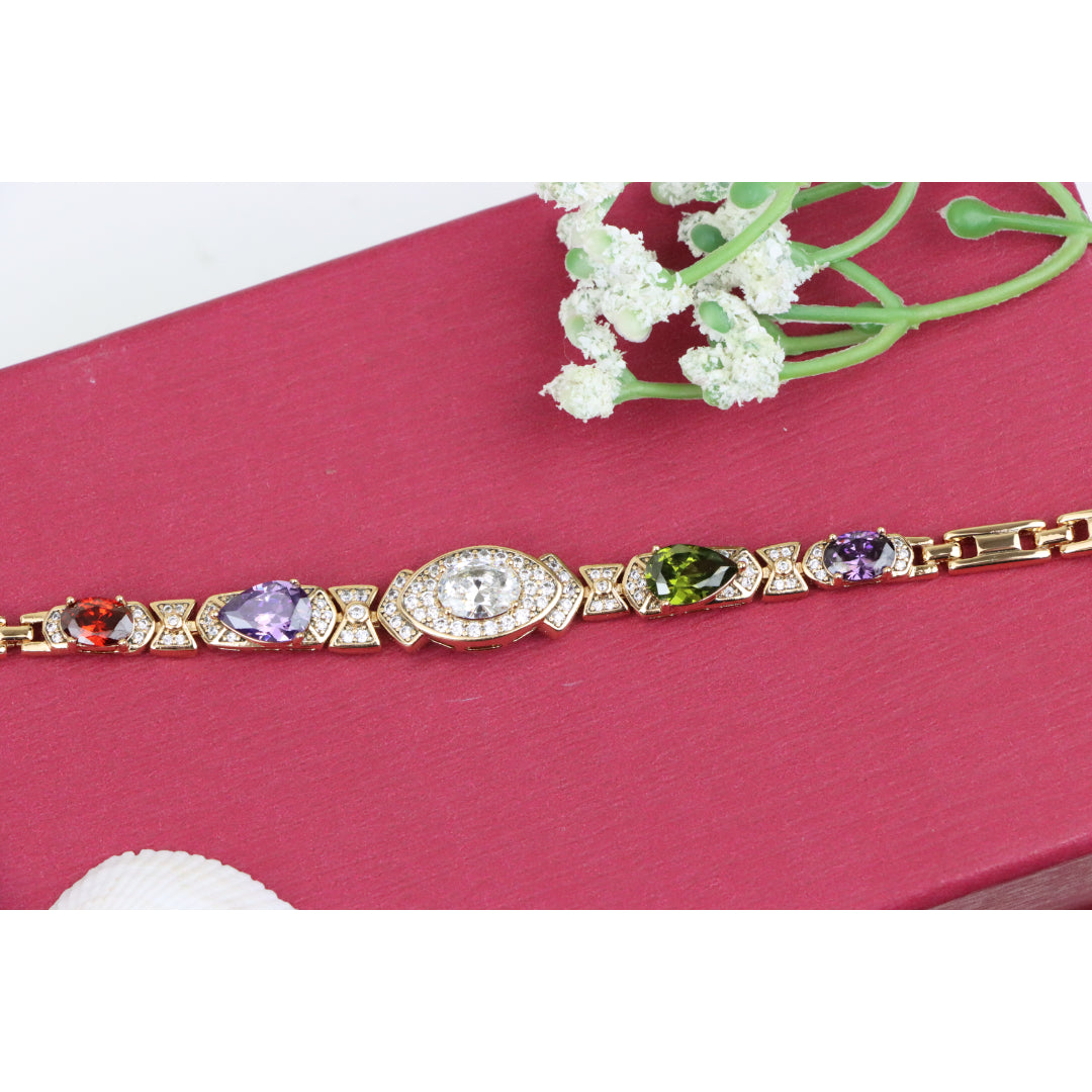 Elegant Rose Gold Bracelet with Multicolor Stones and CZ Sparkle, XPBL0727 (2073-6)