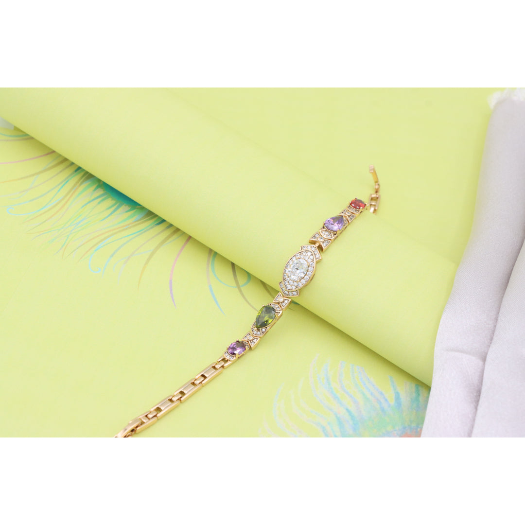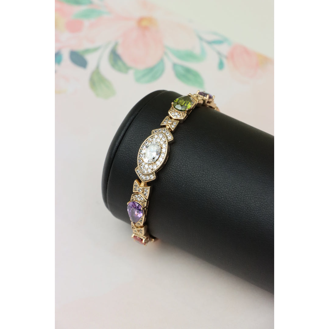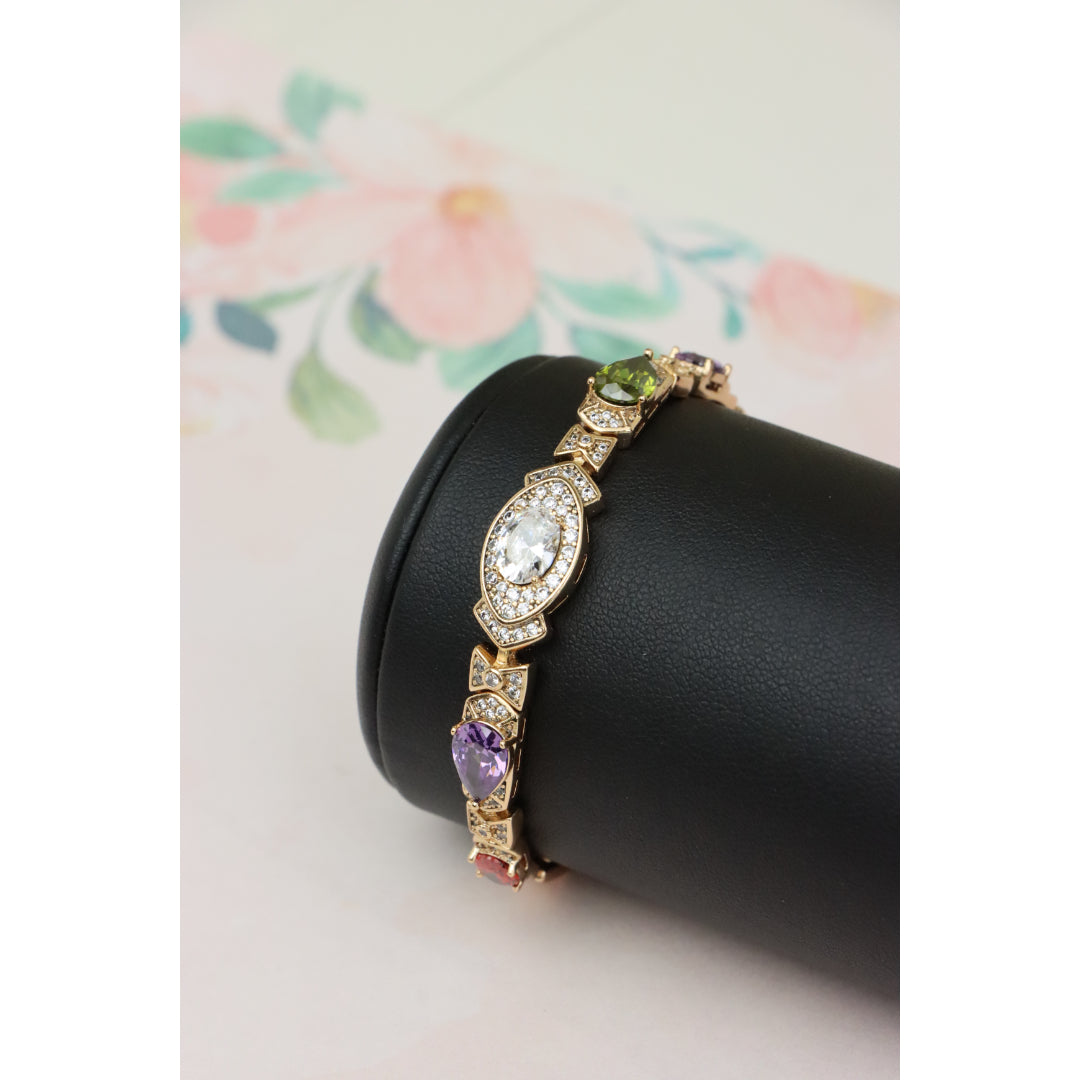 Elegant Rose Gold Bracelet with Multicolor Stones and CZ Sparkle, XPBL0727