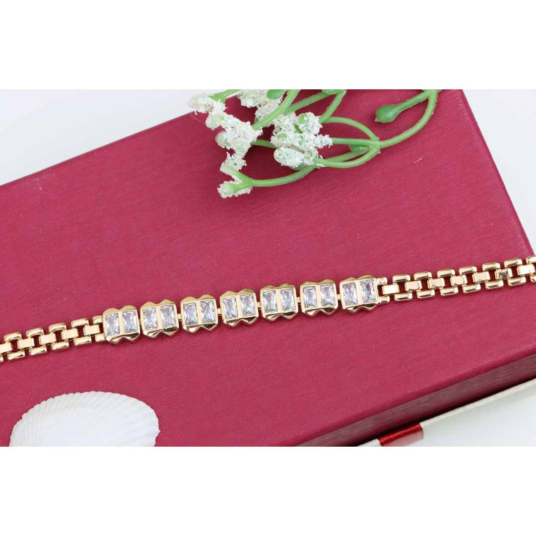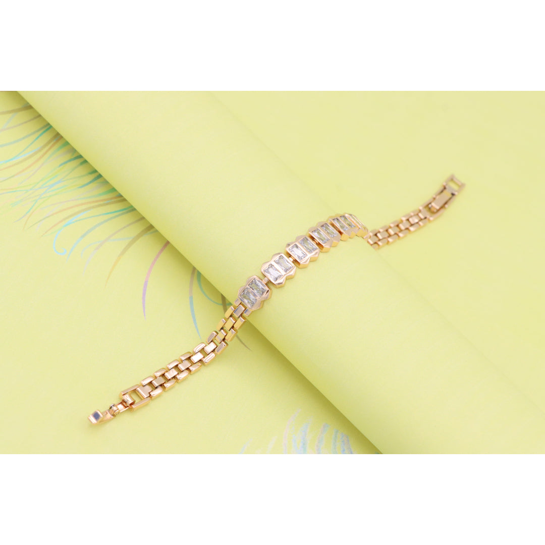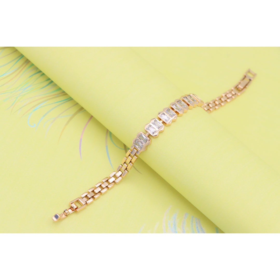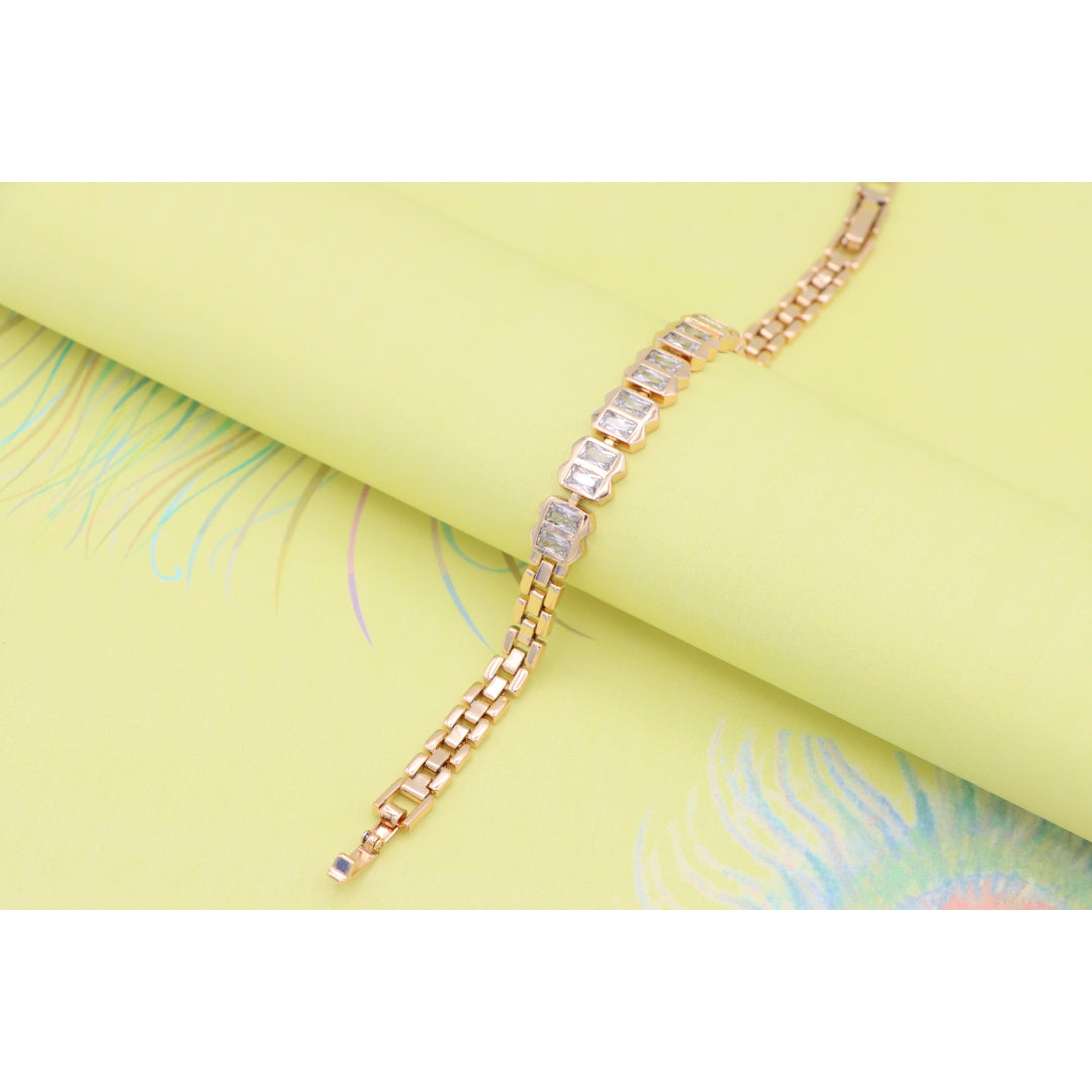 Elegant Rose Gold Bracelet with Rectangular Crystal Links, XPBL0933