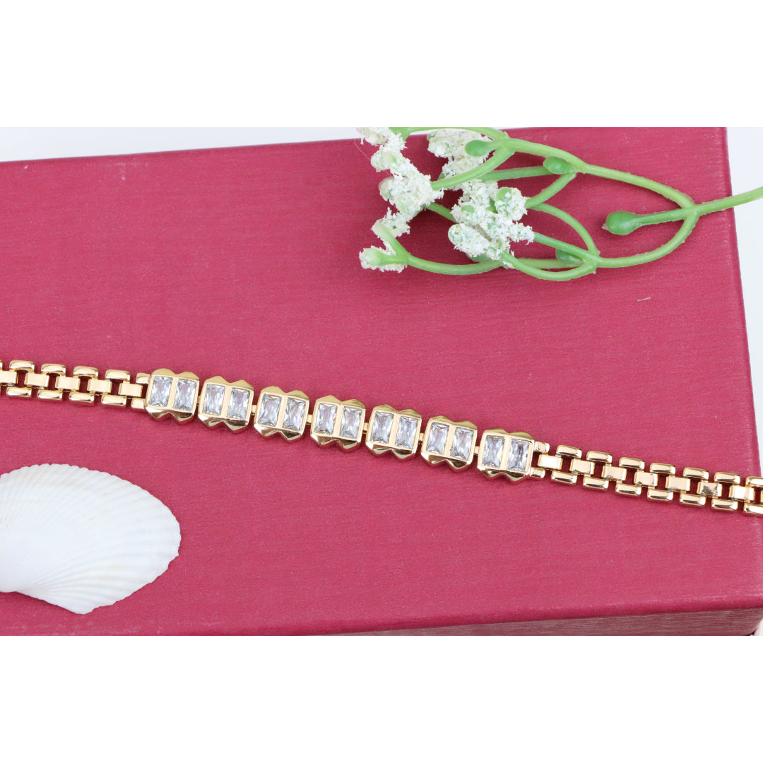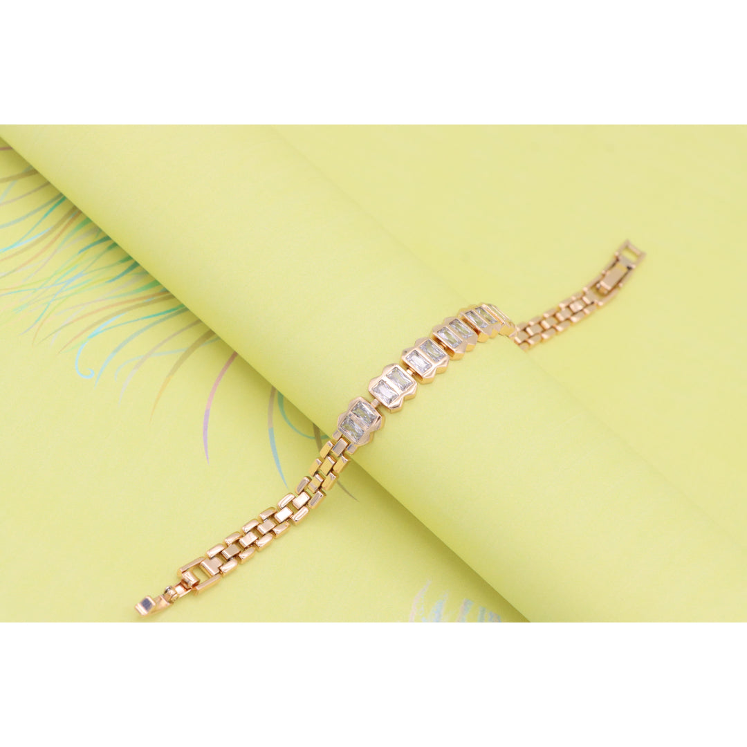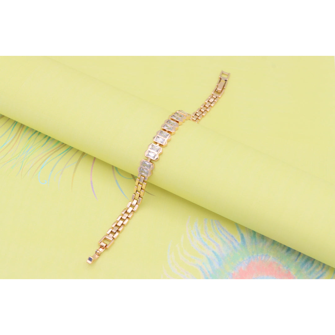 Elegant Rose Gold Bracelet with Rectangular Crystal Links, XPBL0933
