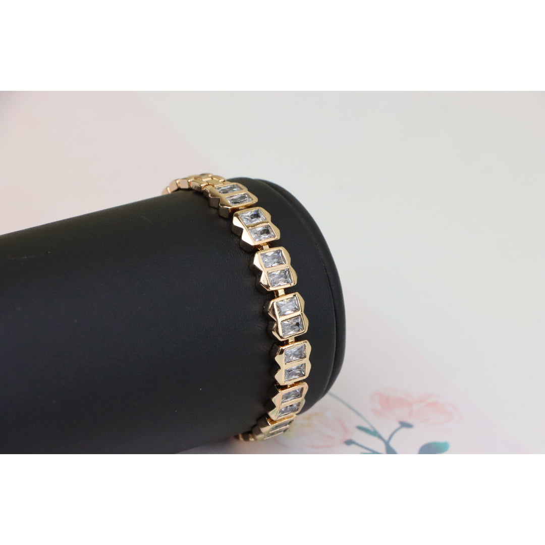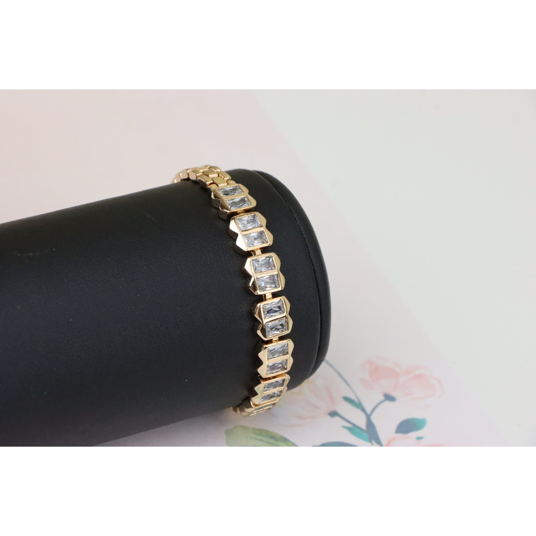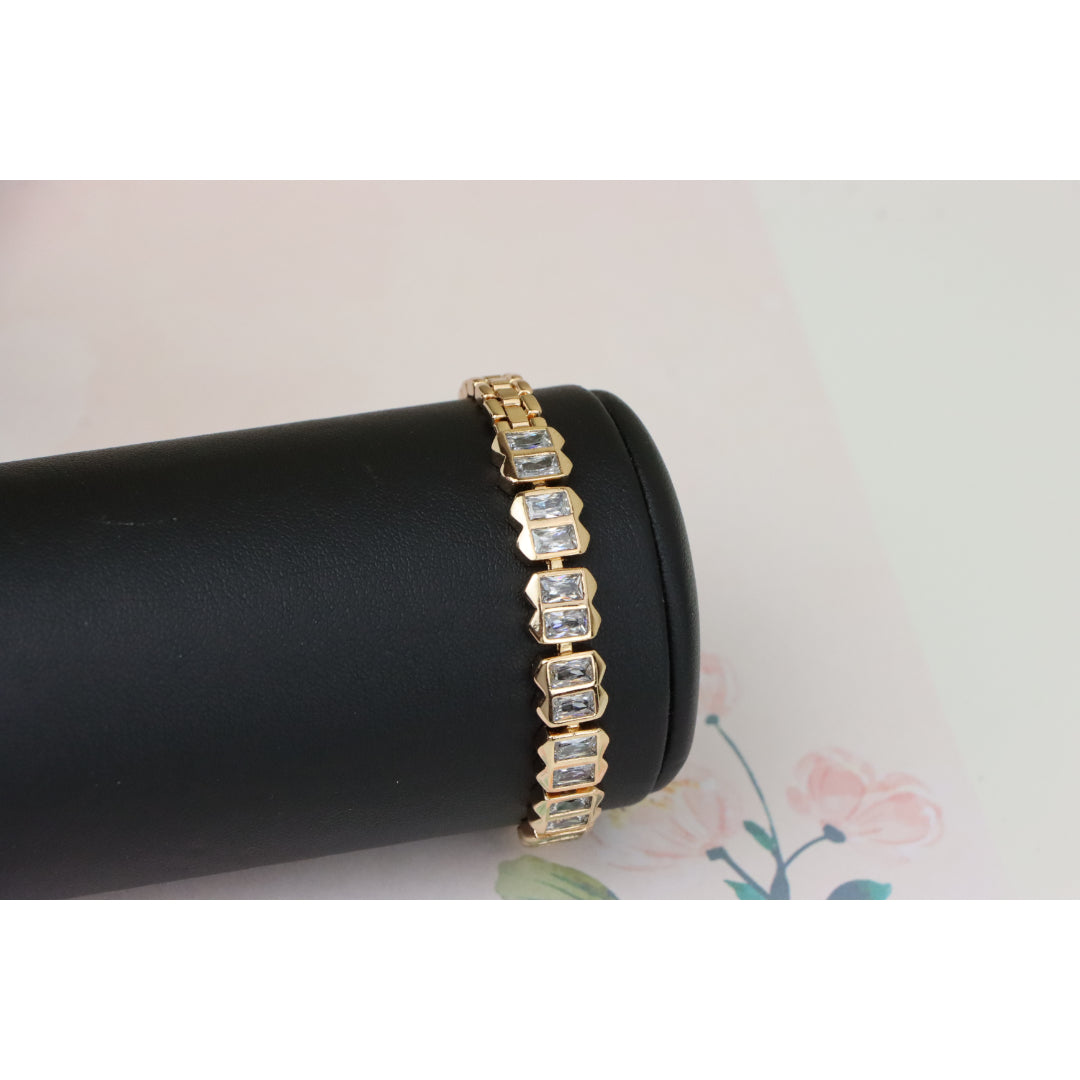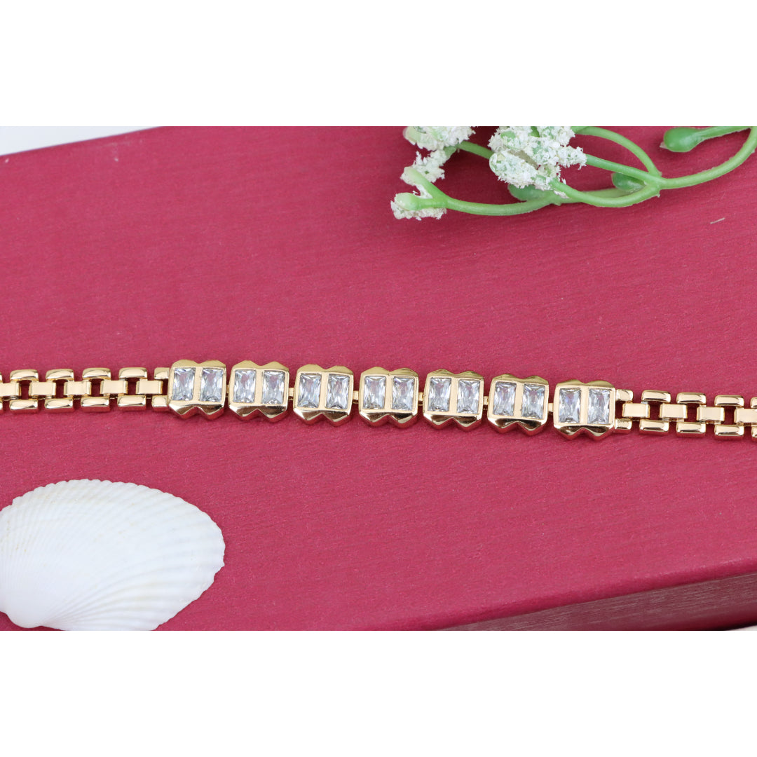 Elegant Rose Gold Bracelet with Rectangular Crystal Links, XPBL0933