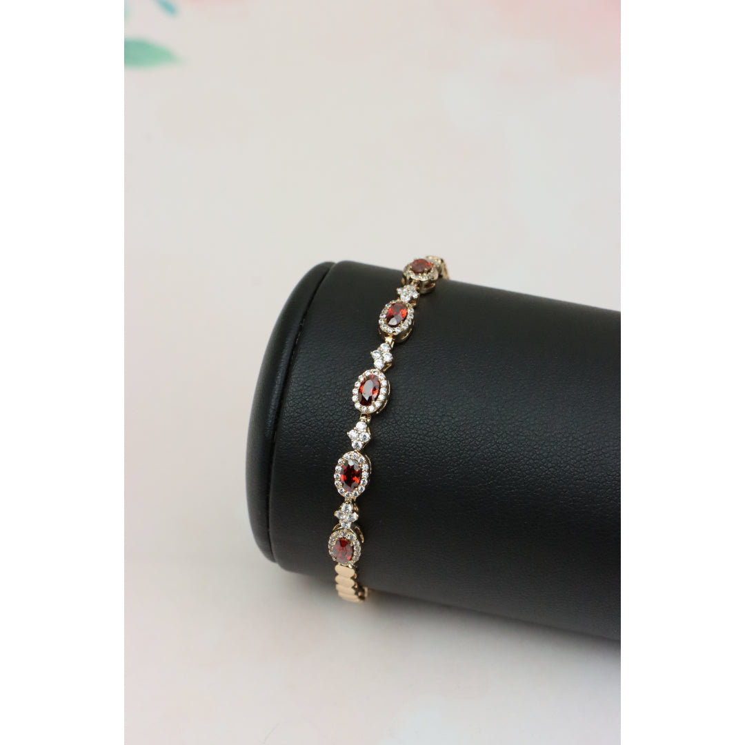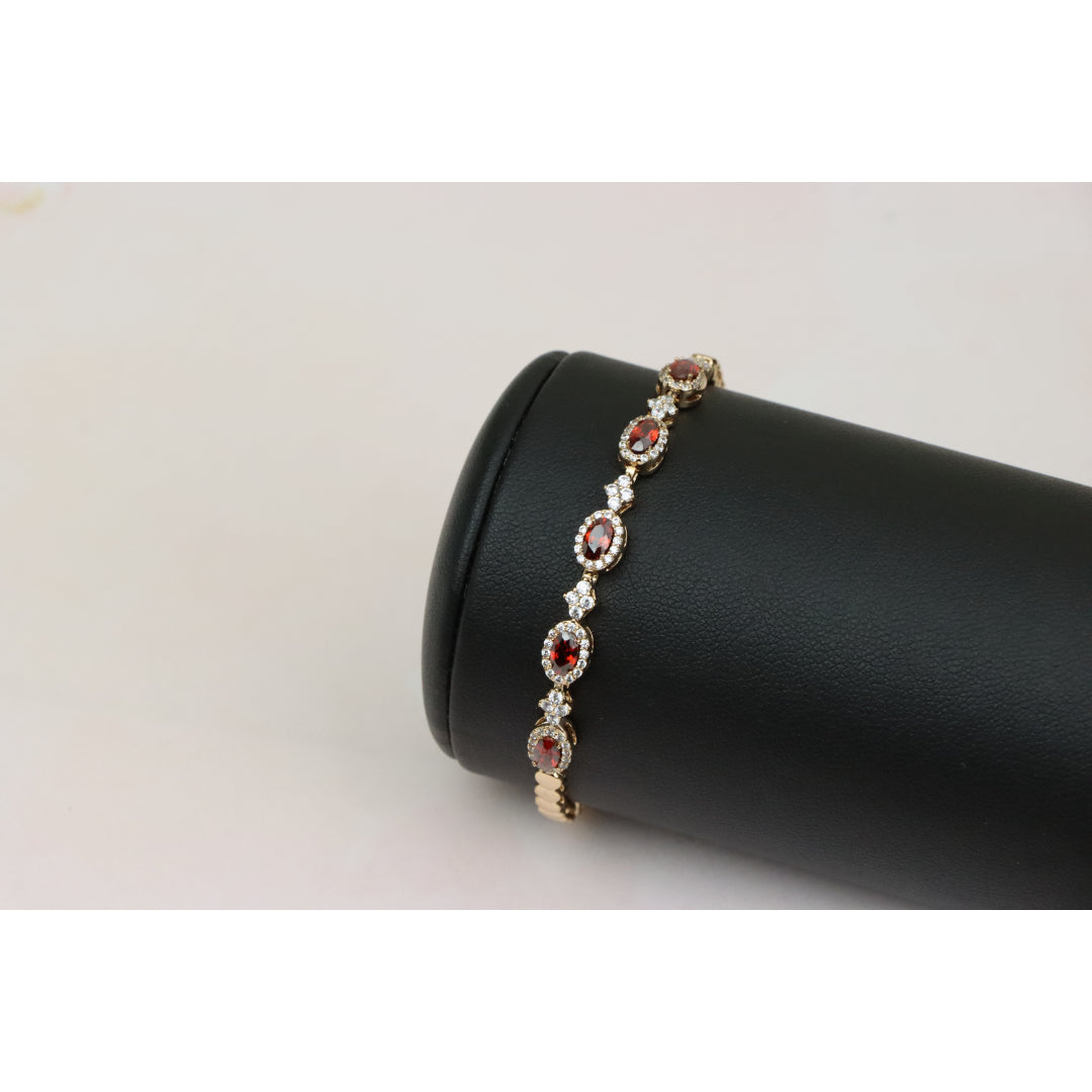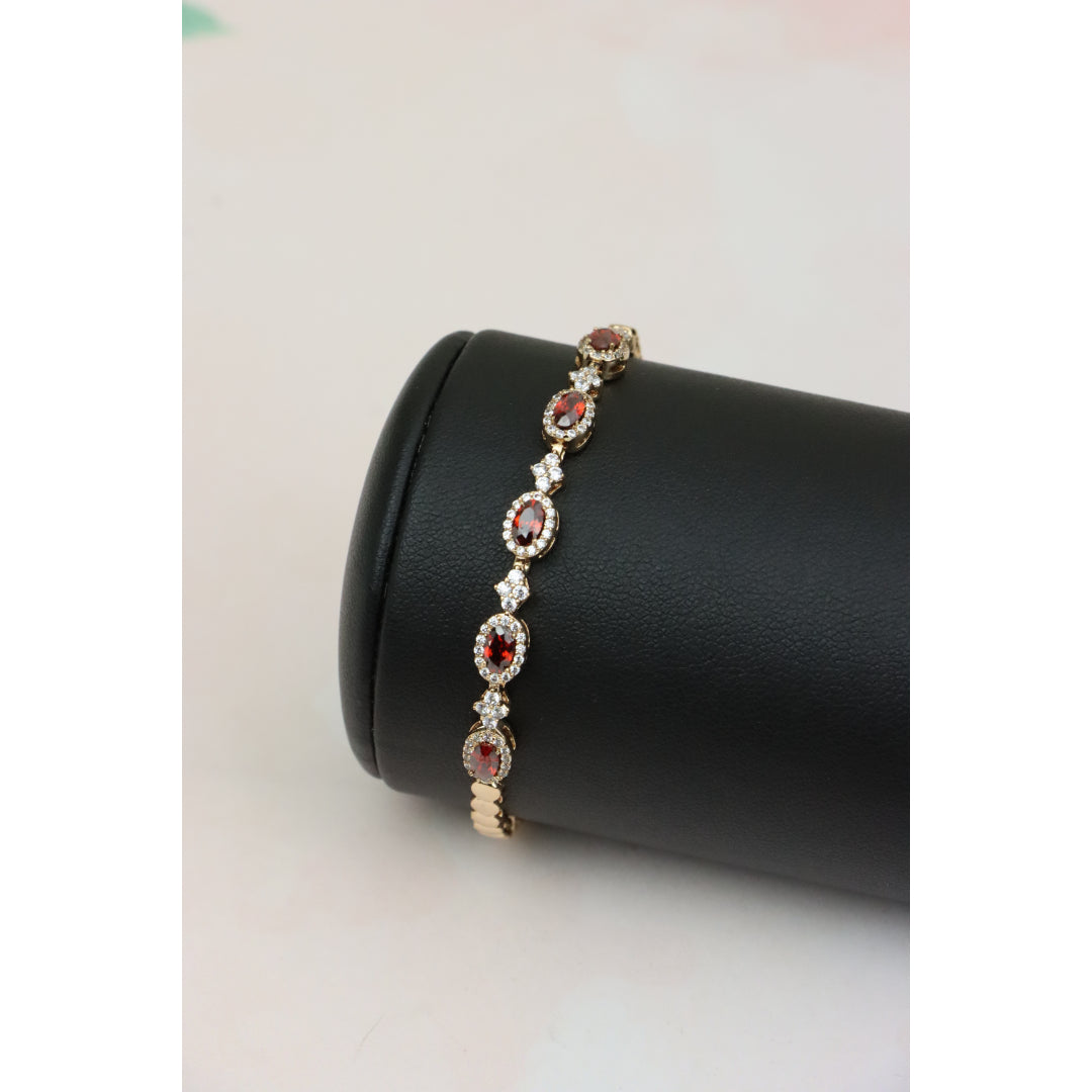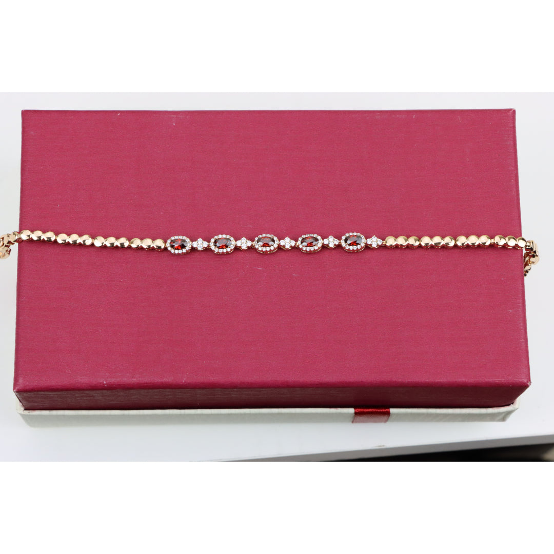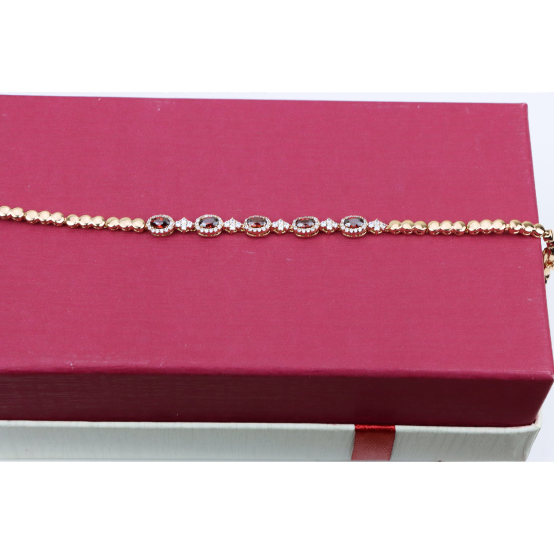 Elegant Rose Gold Bracelet with Red Stones and Sparkling CZ Accents, XPBL0642