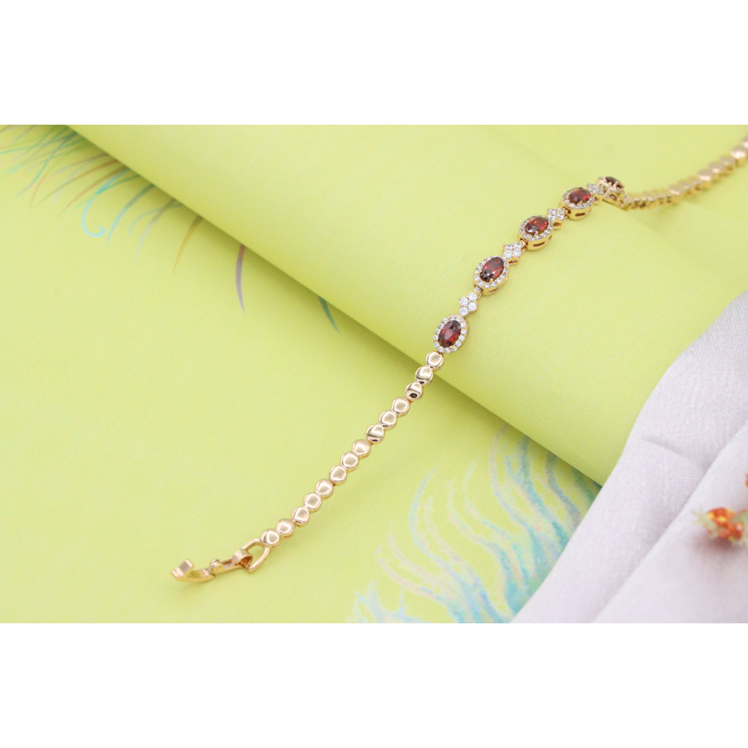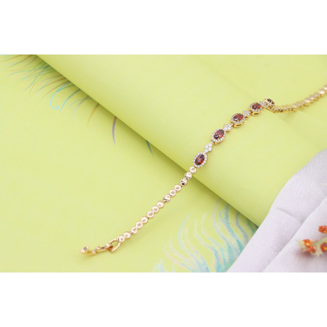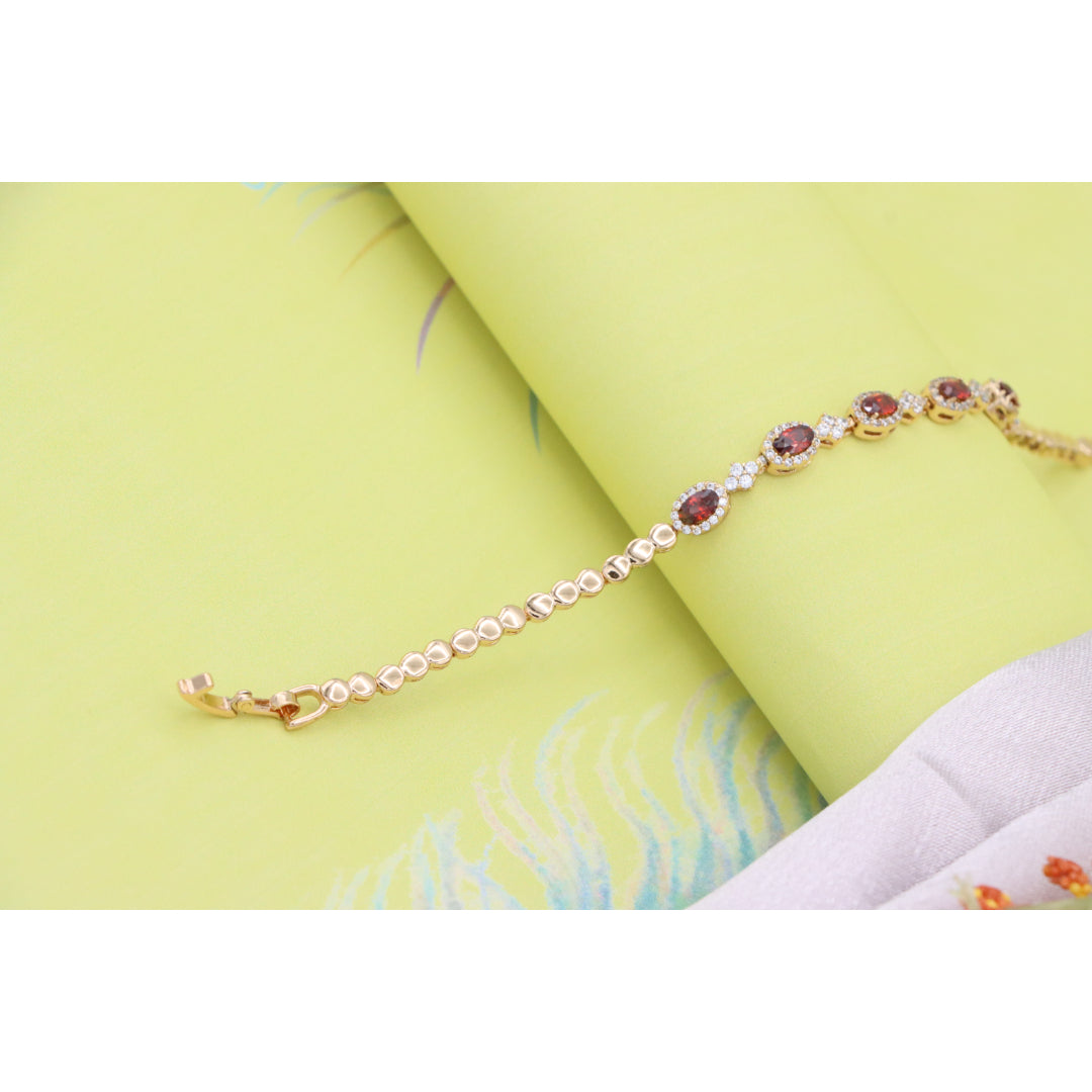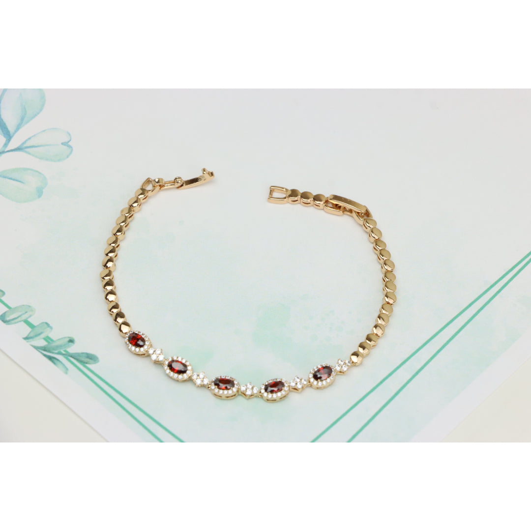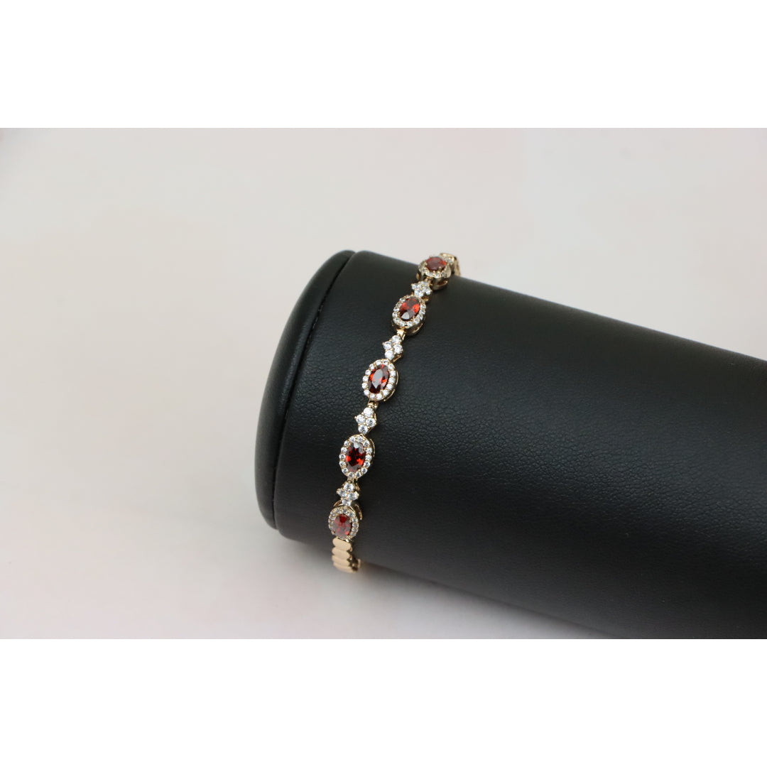 Elegant Rose Gold Bracelet with Red Stones and Sparkling CZ Accents, XPBL0642
