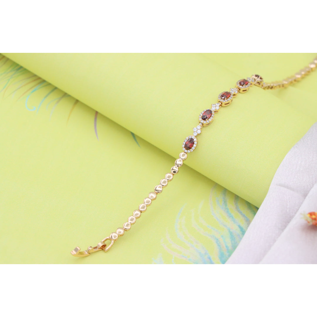 Elegant Rose Gold Bracelet with Red Stones and Sparkling CZ Accents, XPBL0642 (2065-1)