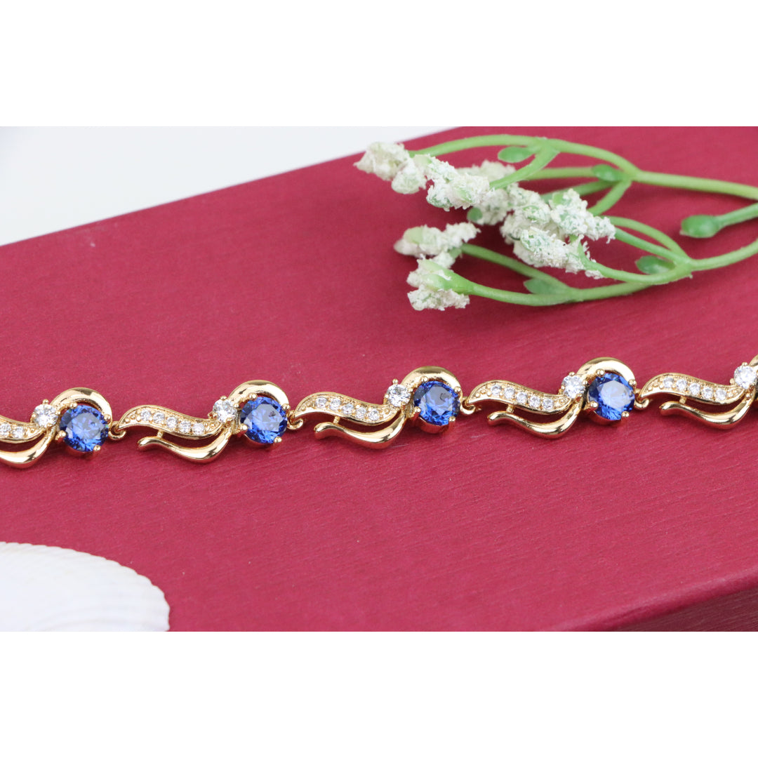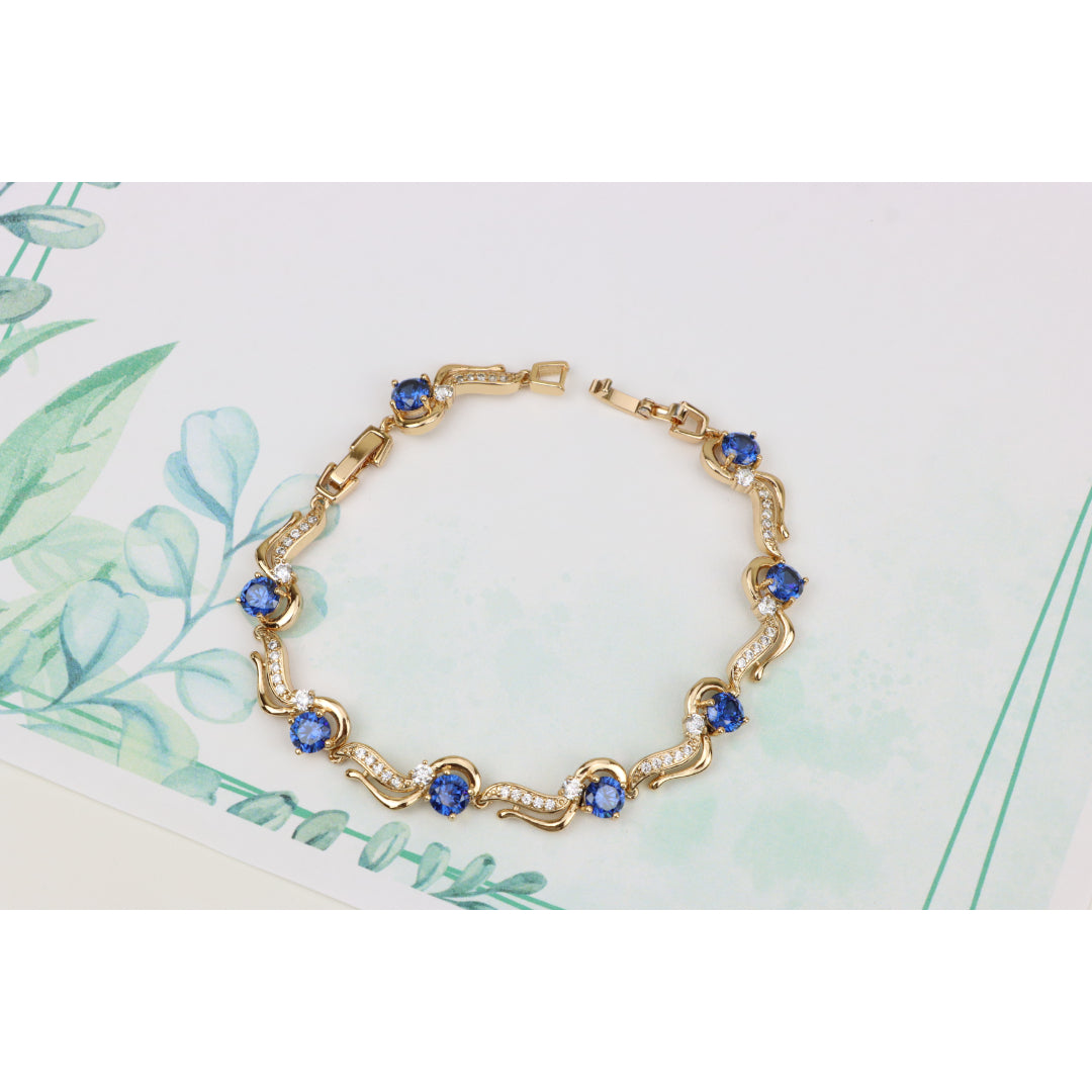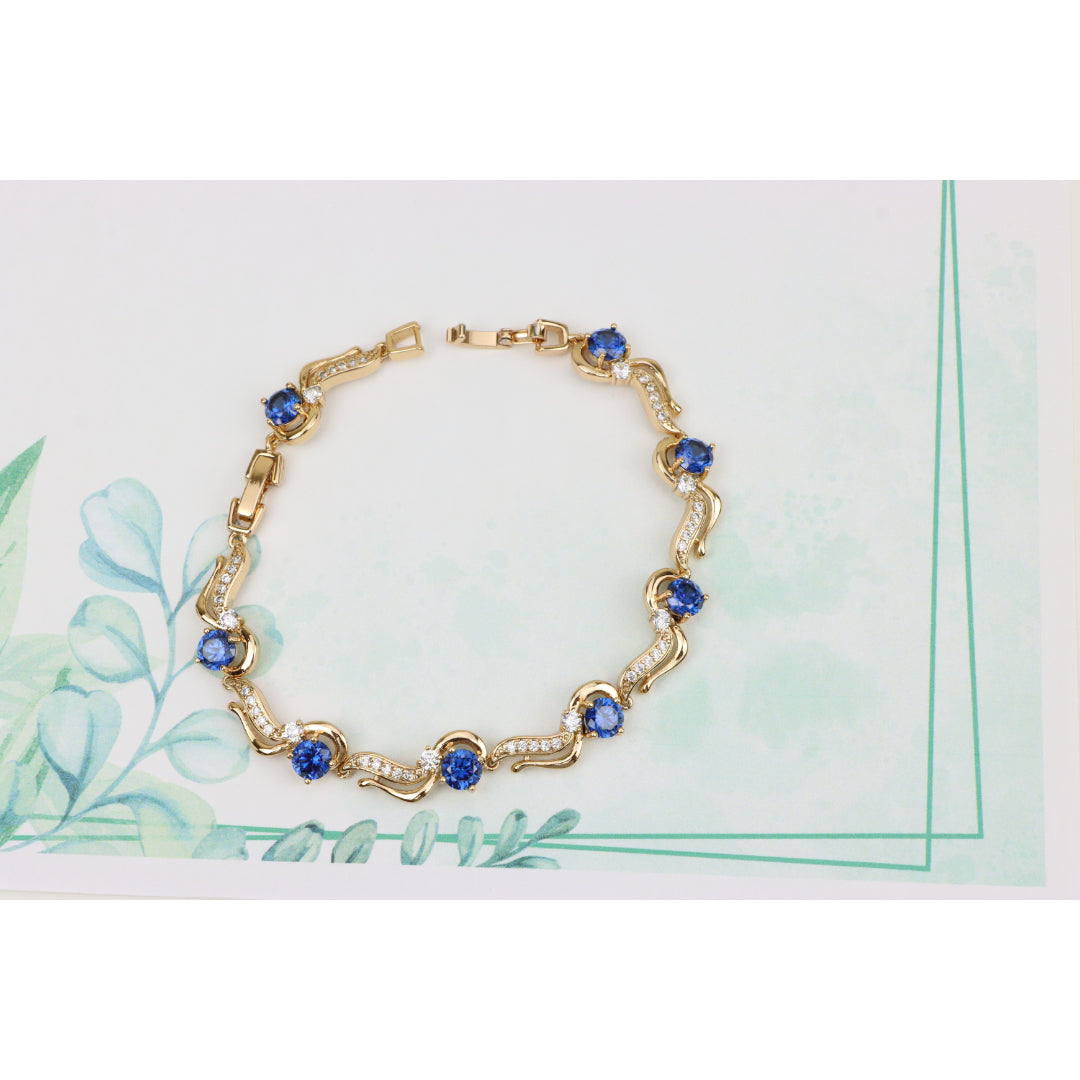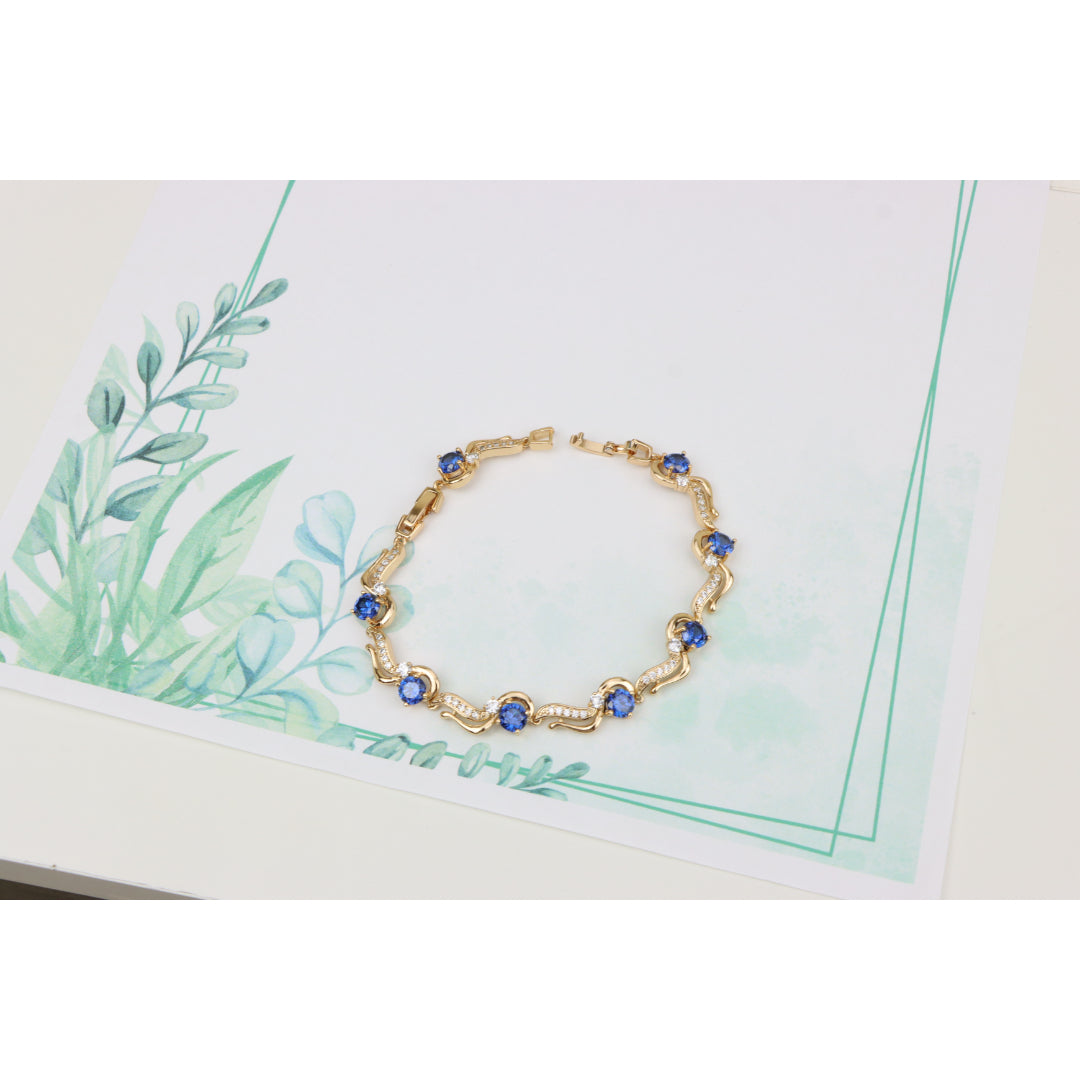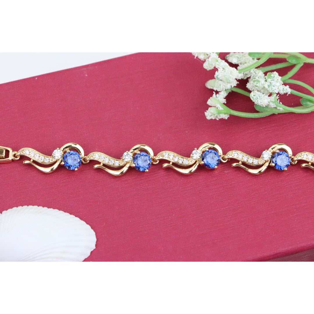 Elegant Rose Gold Bracelet with Sapphire Blue and Crystal Accents, XPBL0804 (2081-3)