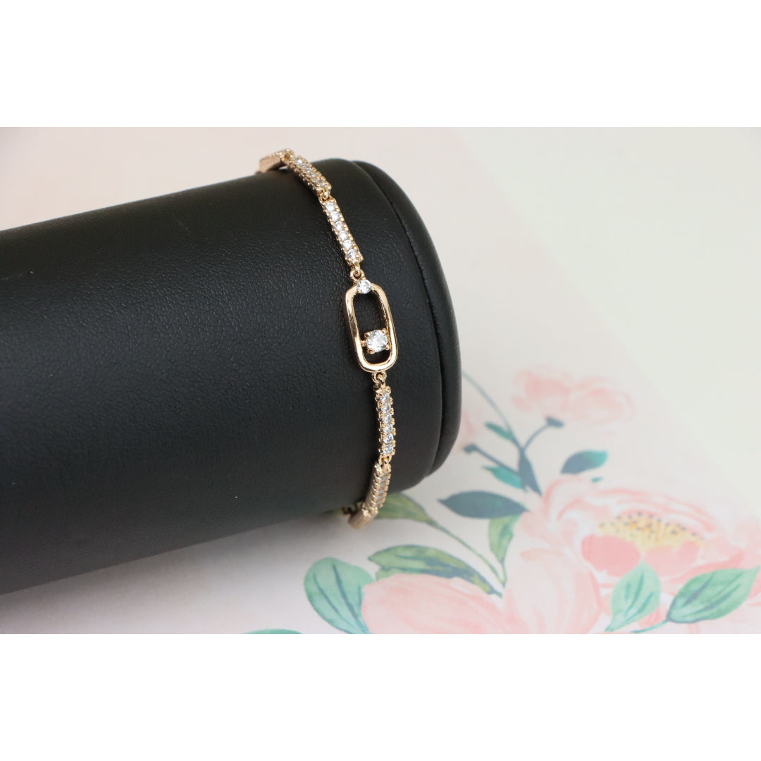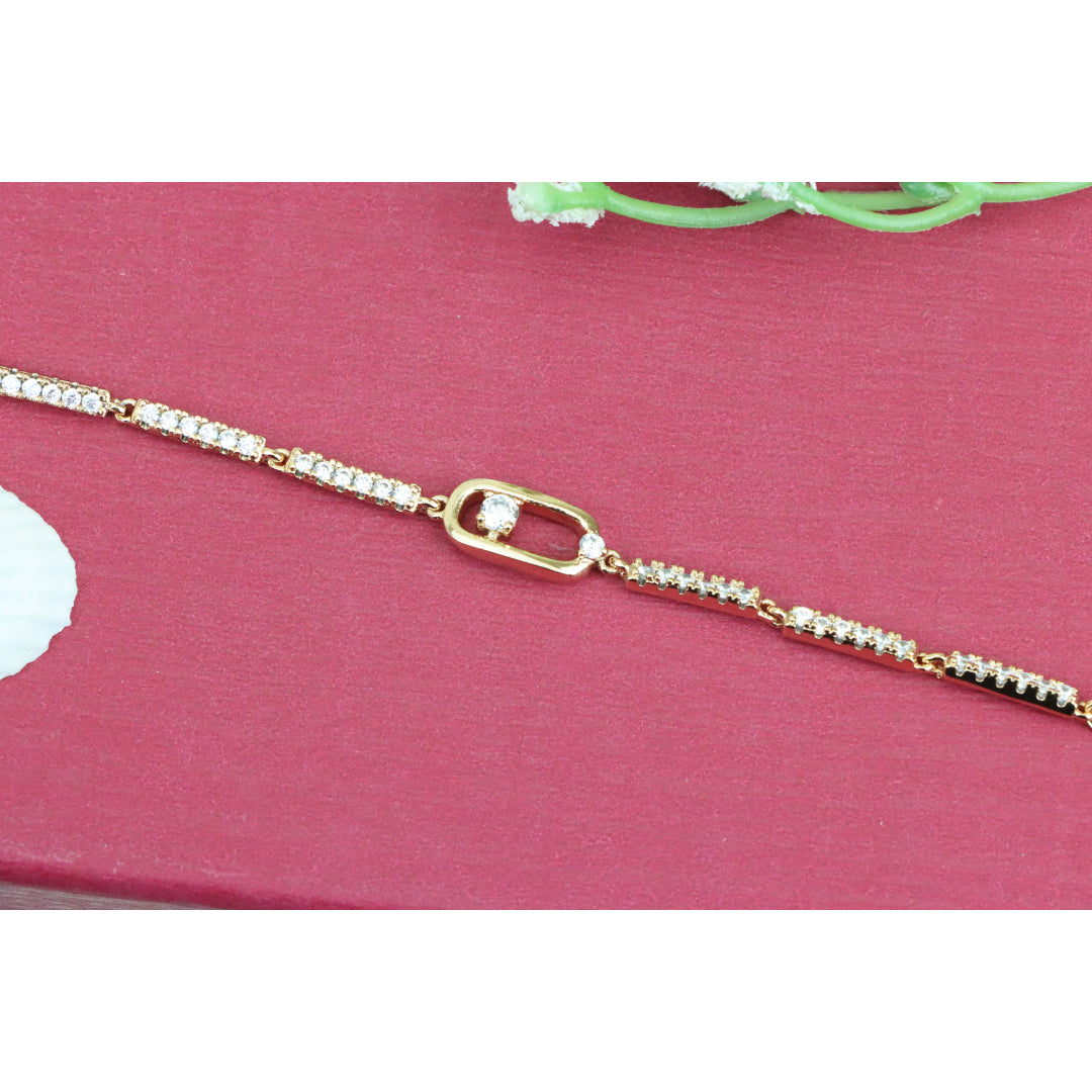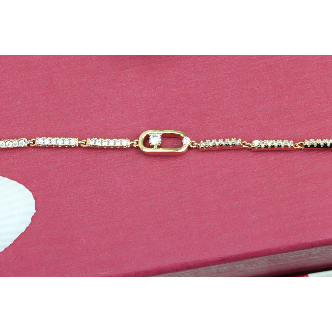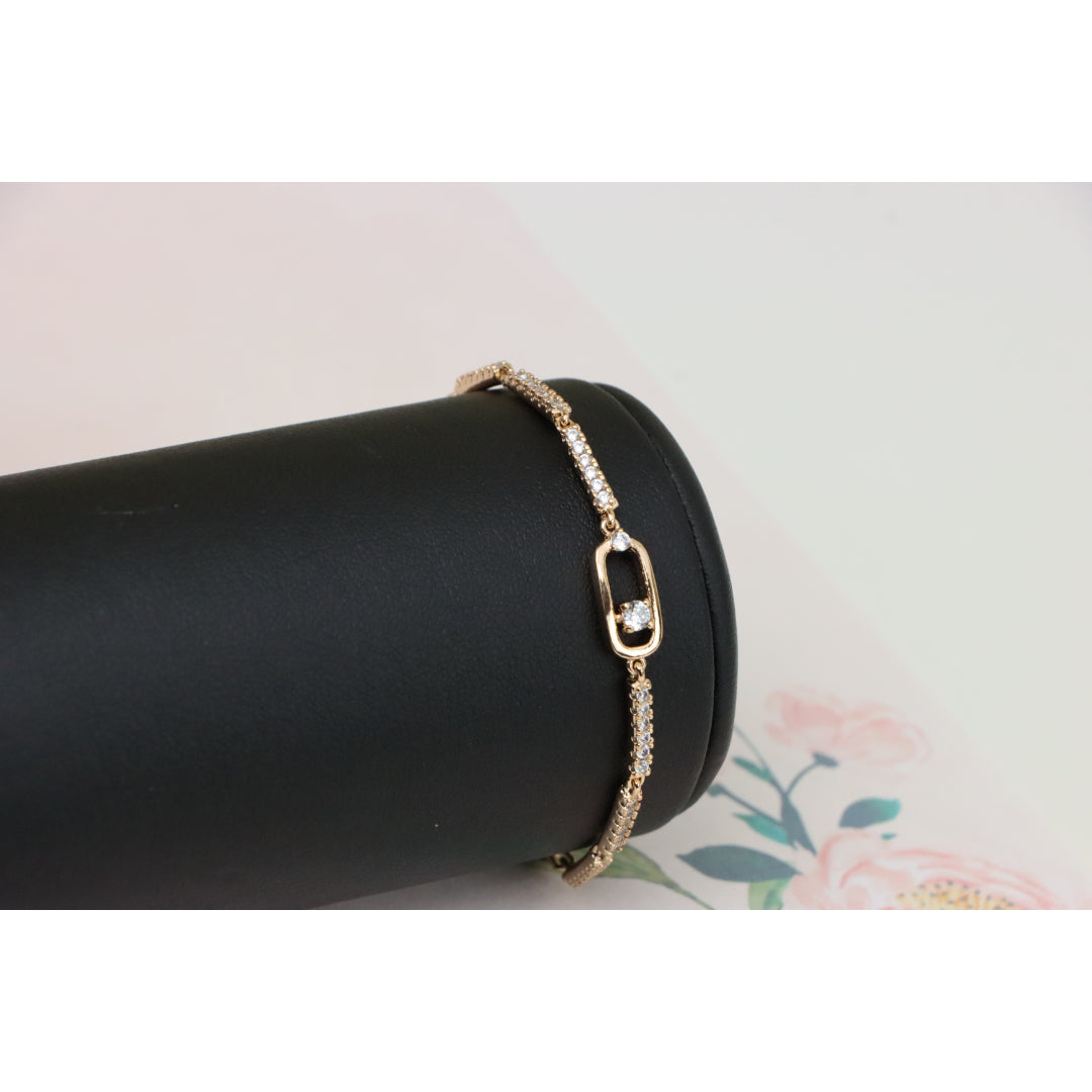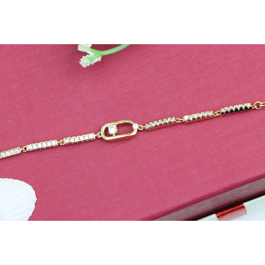 Elegant Rose Gold Bracelet with Sparkling Center Oval Charm, XPBL0913