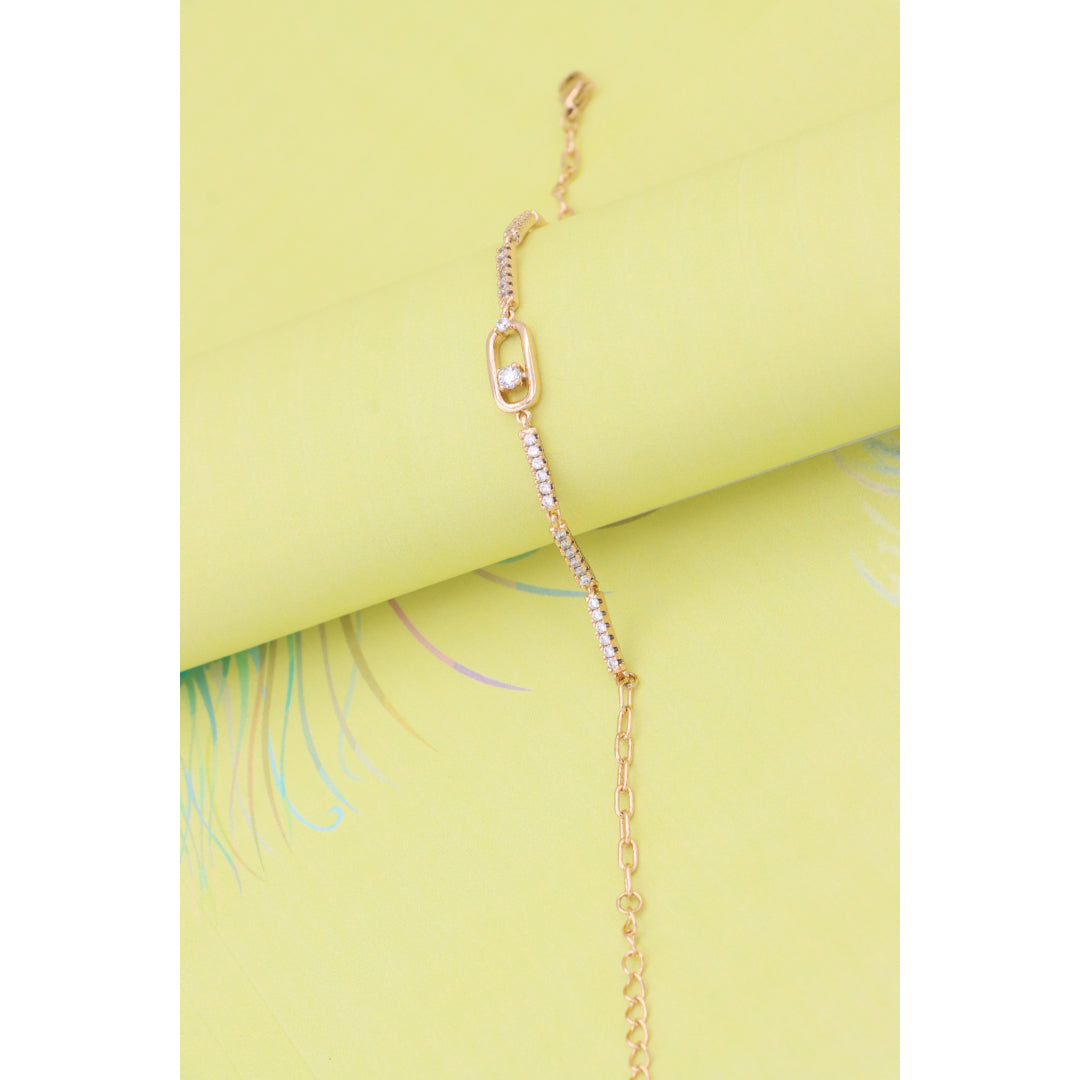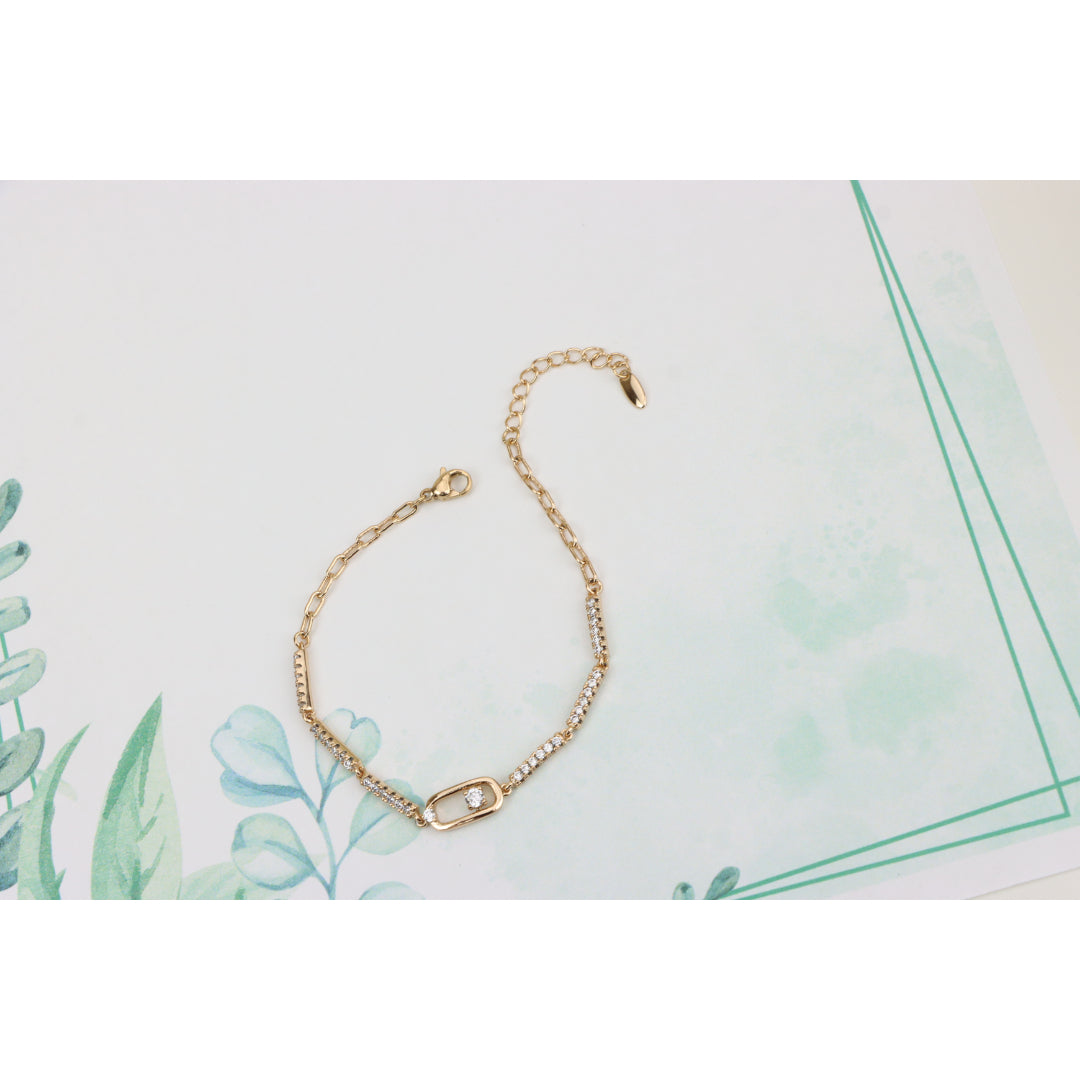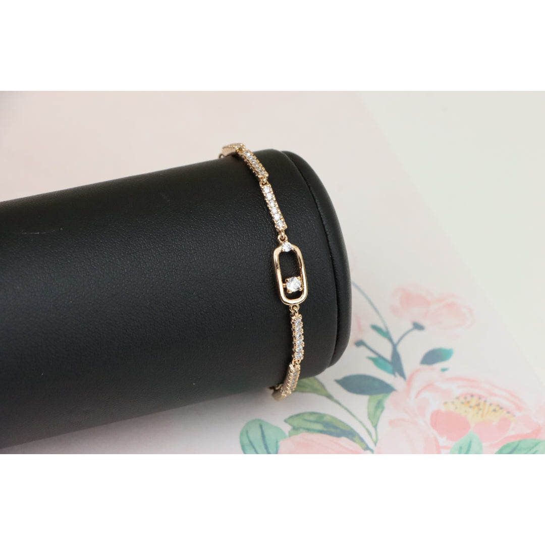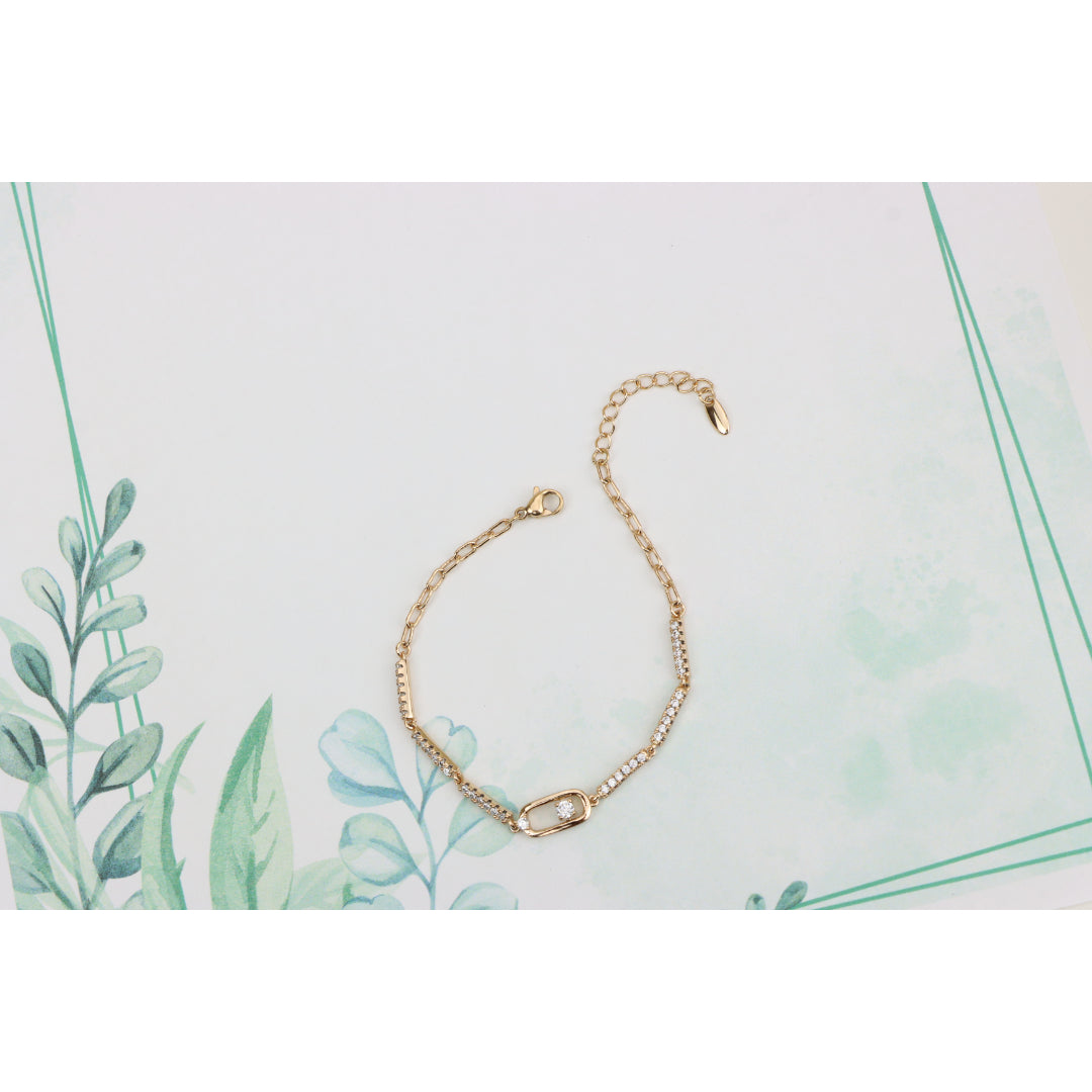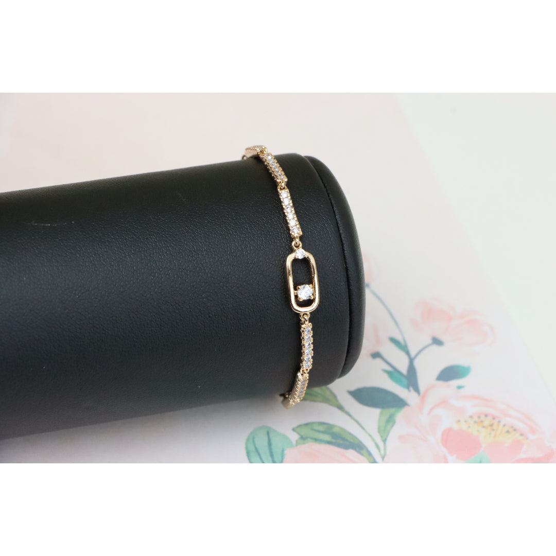 Elegant Rose Gold Bracelet with Sparkling Center Oval Charm, XPBL0913