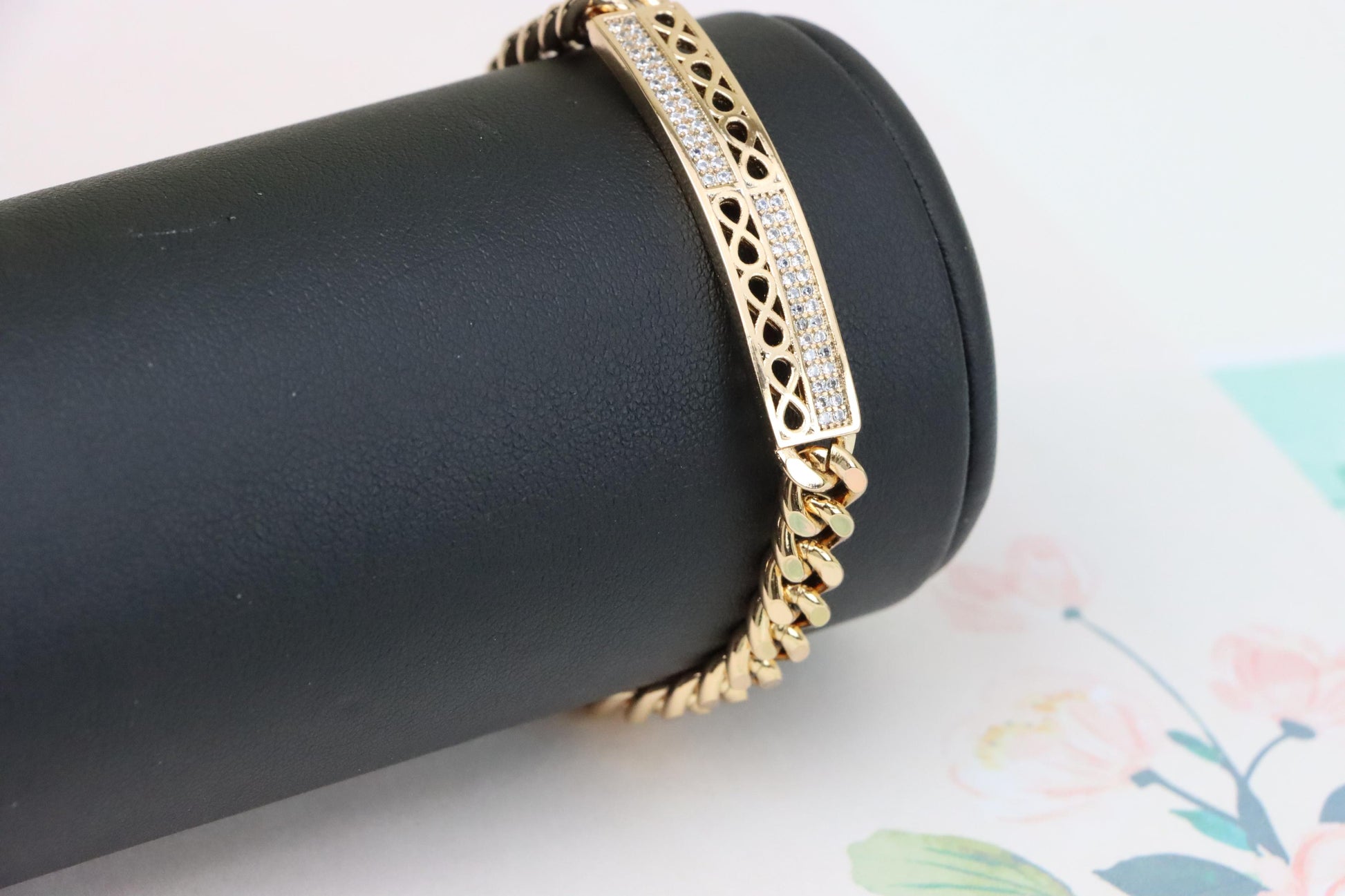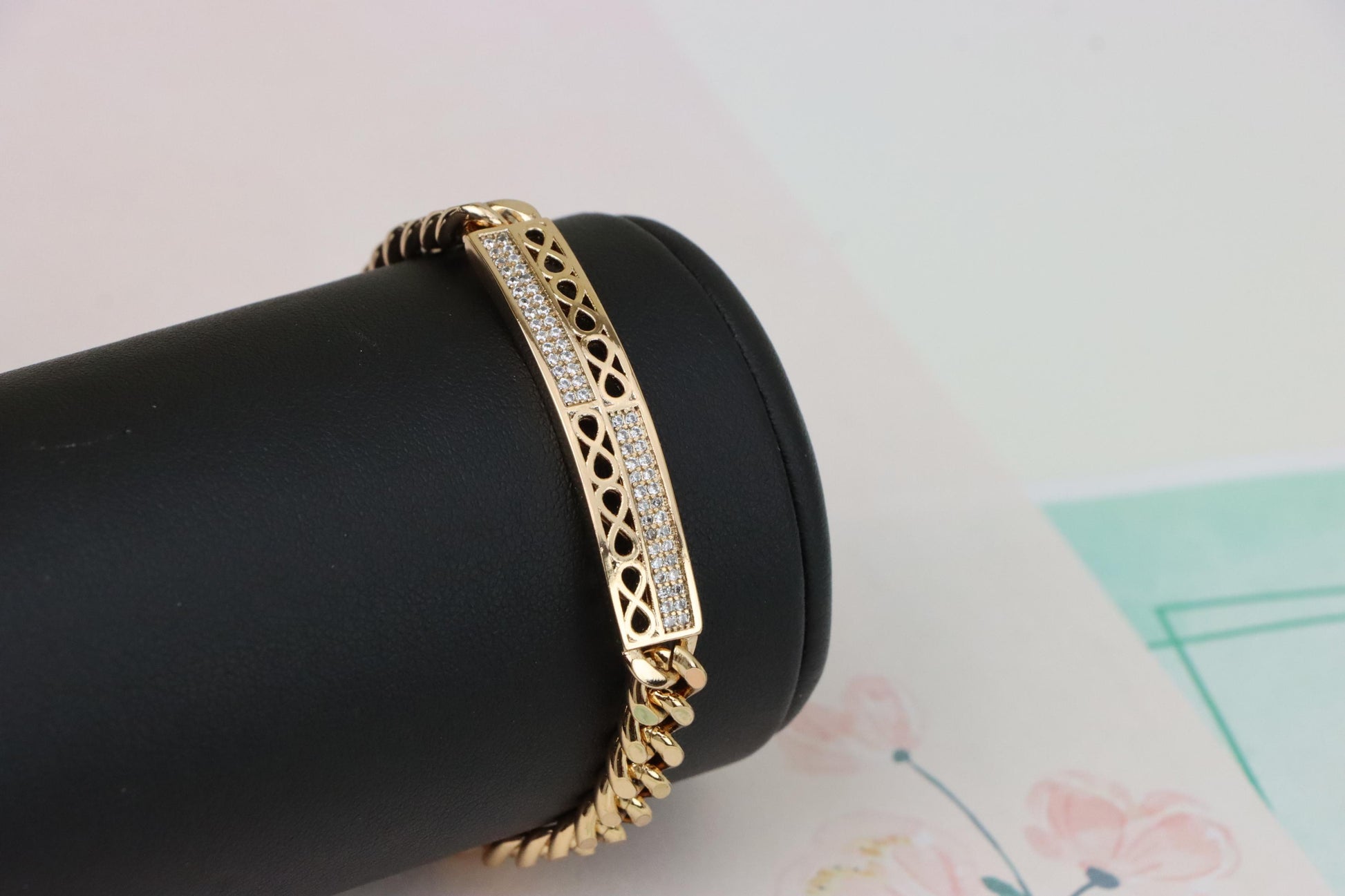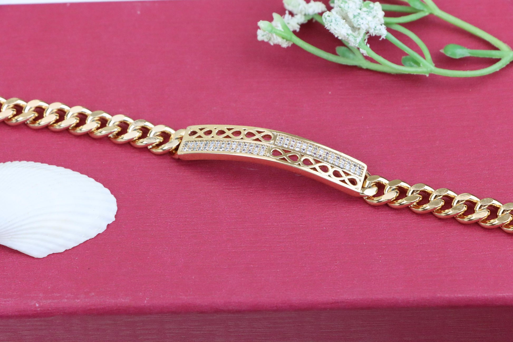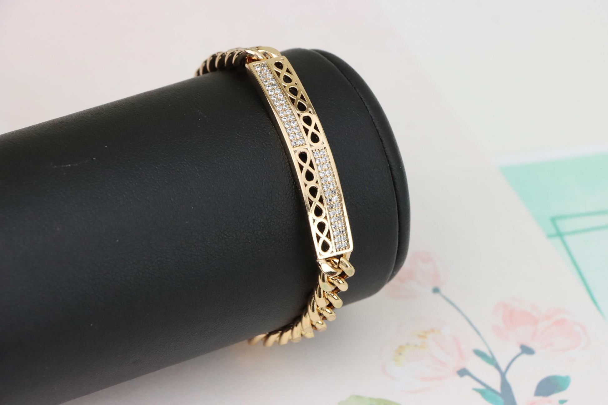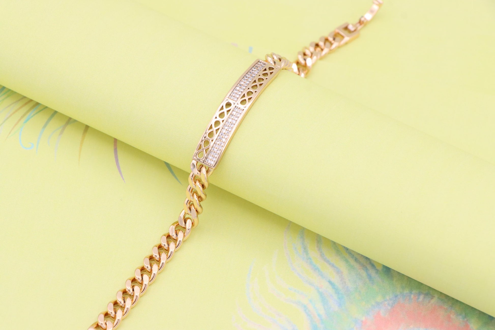 A sophisticated rose gold bracelet featuring delicate teardrop cutouts and sparkling CZ detailing, perfect for both everyday elegance and special occasions.