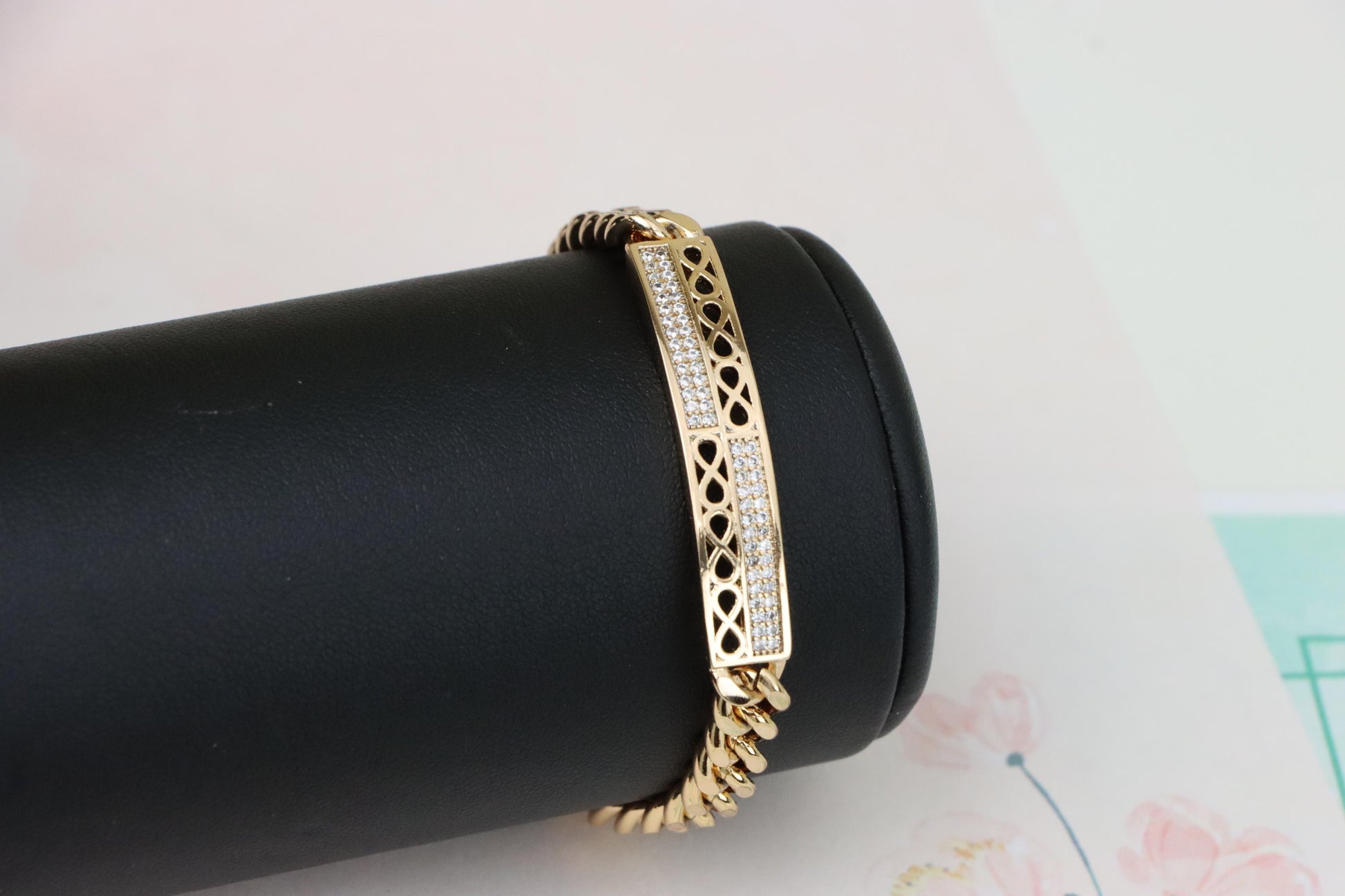Elegant Rose Gold Bracelet with Teardrop Cutouts & CZ Accents, XPBL0963