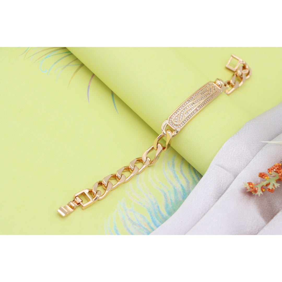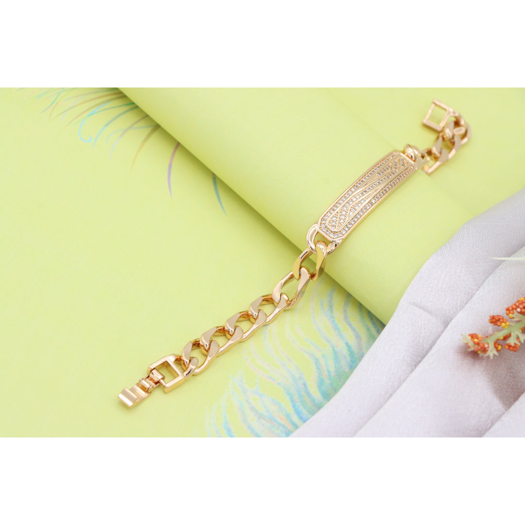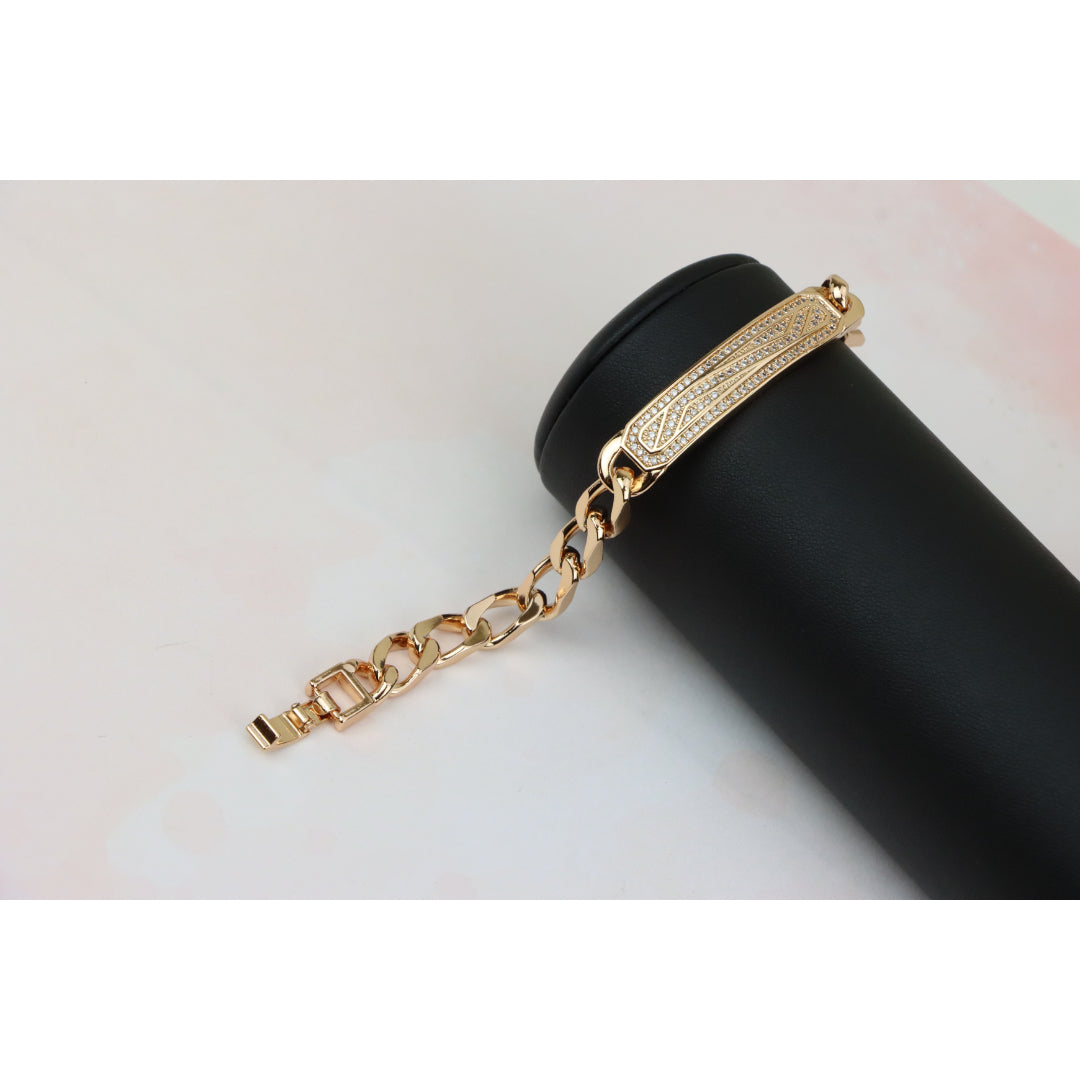 Crafted from high-quality brass and luxuriously gold plated, this rose gold bracelet radiates a refined charm. With an intricate, detailed center design and polished chunky links, it offers a perfect blend of elegance and boldness. Ideal for elevating your everyday or special occasion looks.