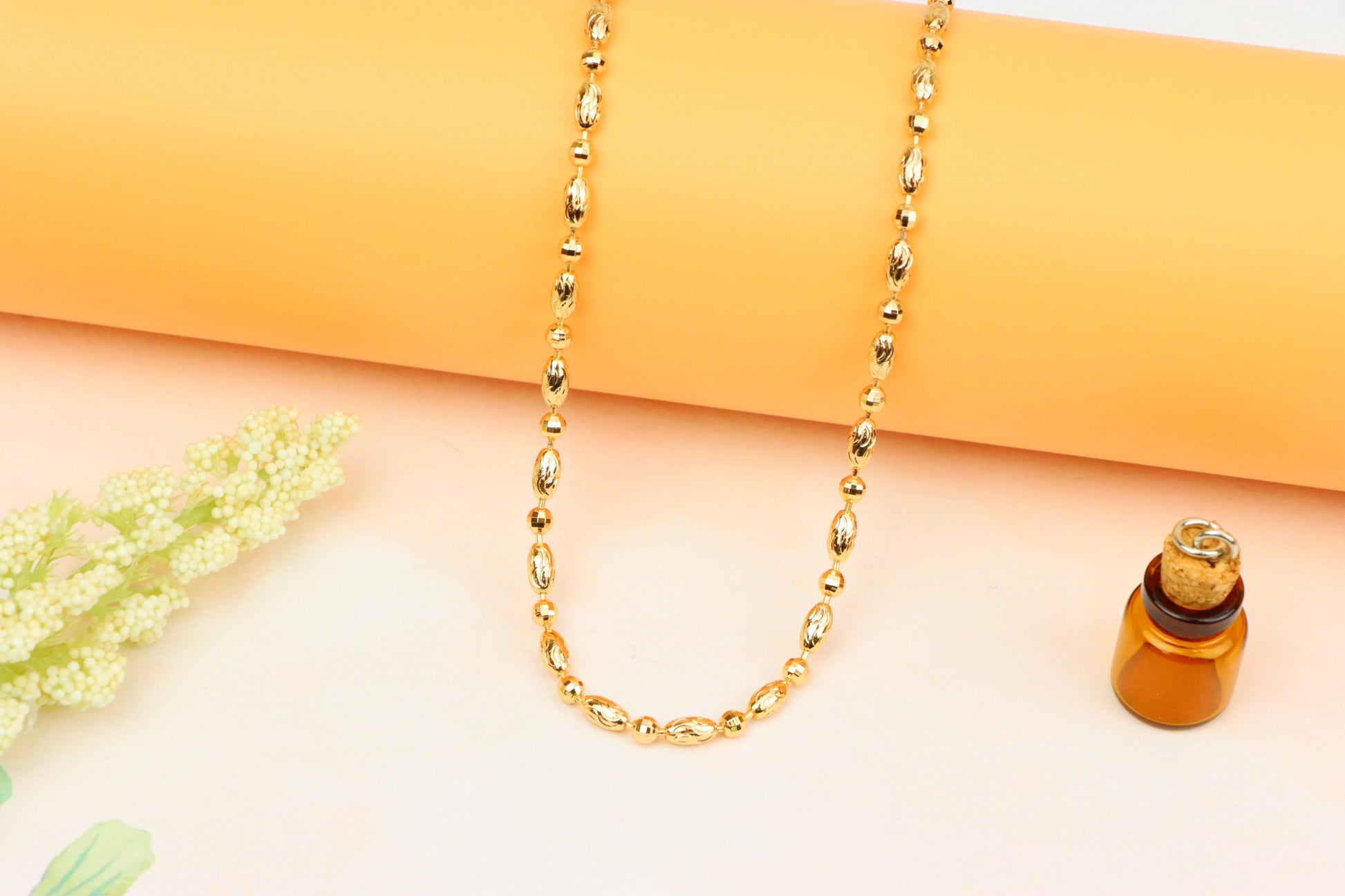 Elegant Rose Gold Chain Necklace with Intricate Oval Bead Links, XPNL1891 (2160-4)