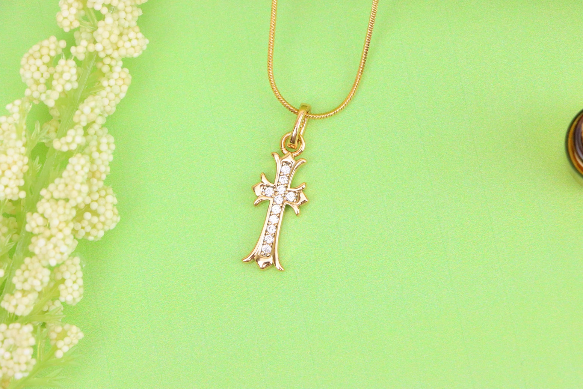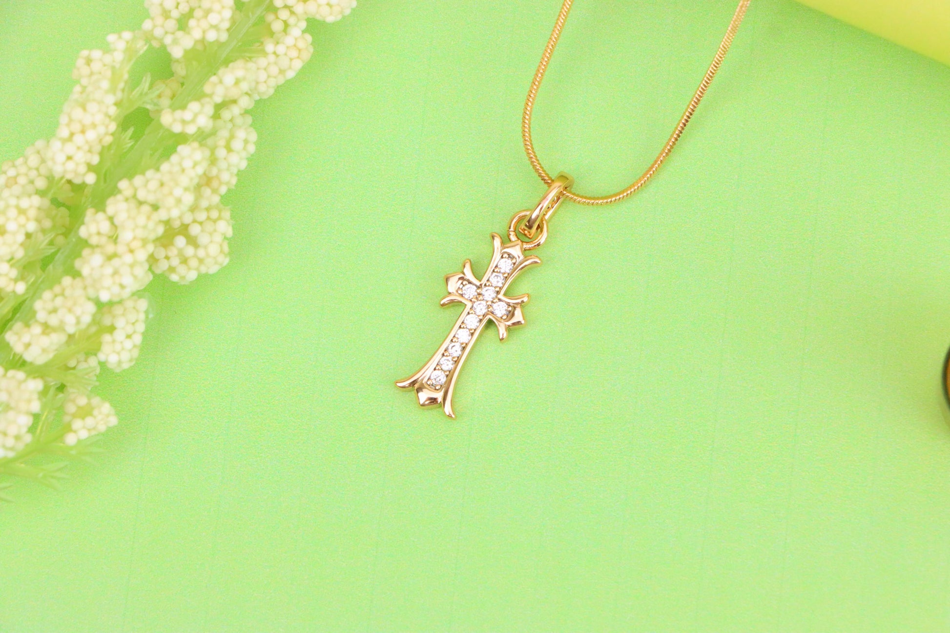 Elegant Rose Gold Cross Pendant with Sparkling Accents, XPPT1629