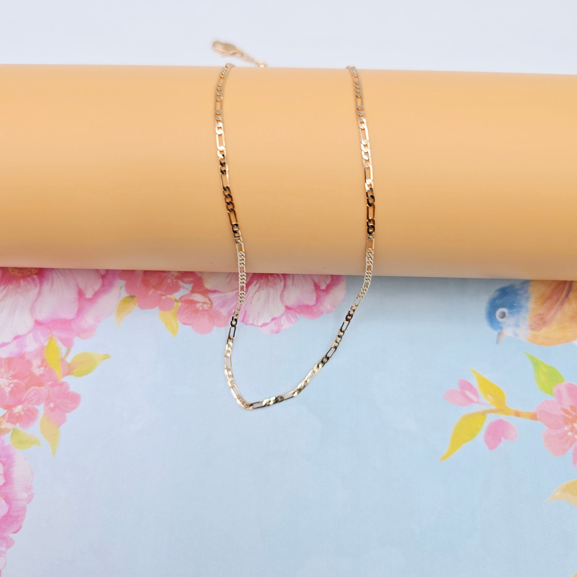 Elegant Rose Gold Figaro Chain Necklace – 50cm Brass Gold Plated, XPNL0113
