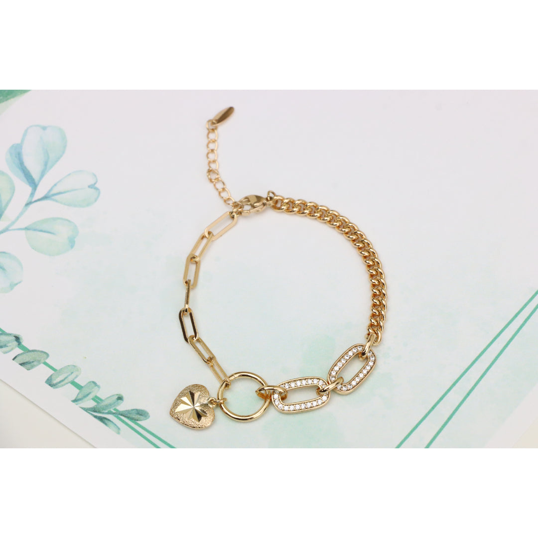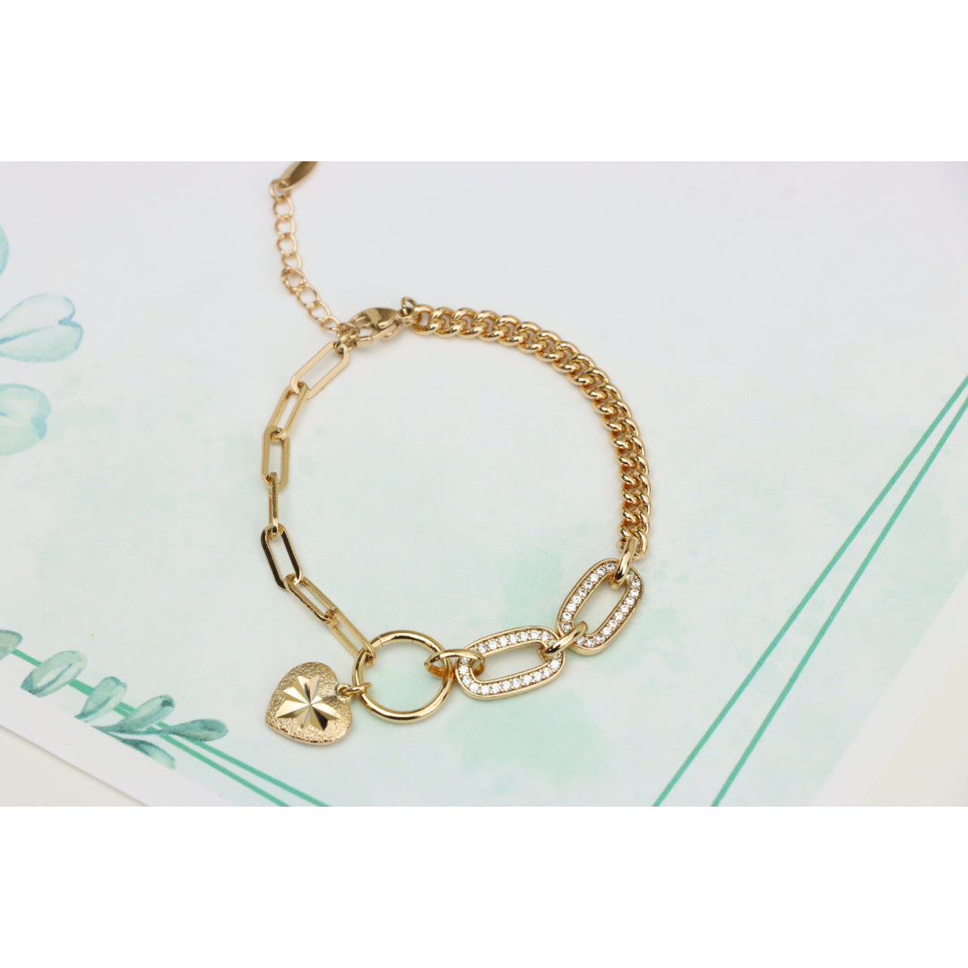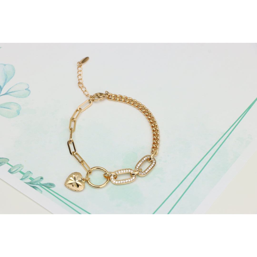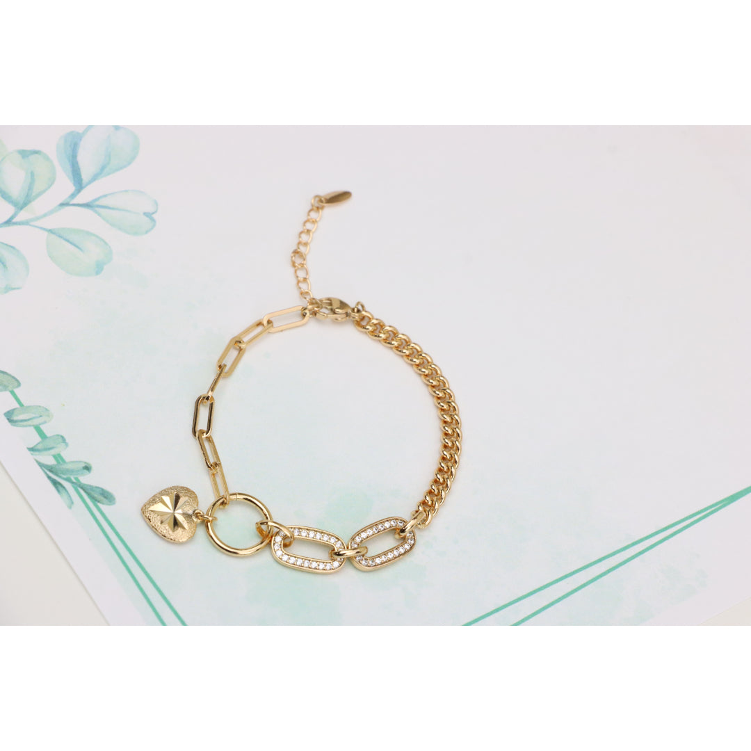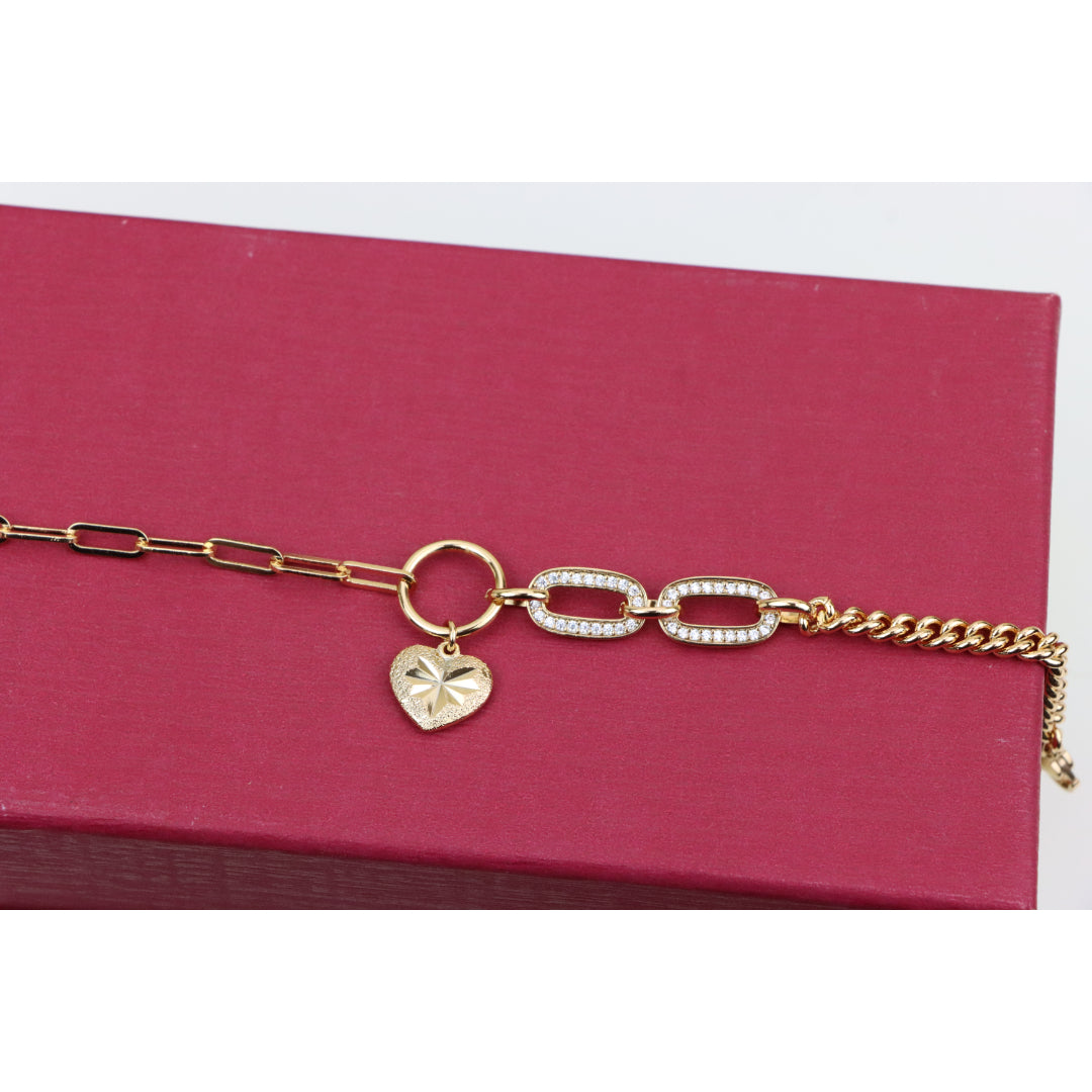 Elegant Rose Gold Heart Charm Bracelet with Sparkling Link Design, XPBL0644 (2065-3)