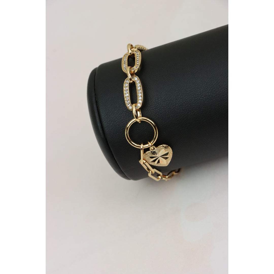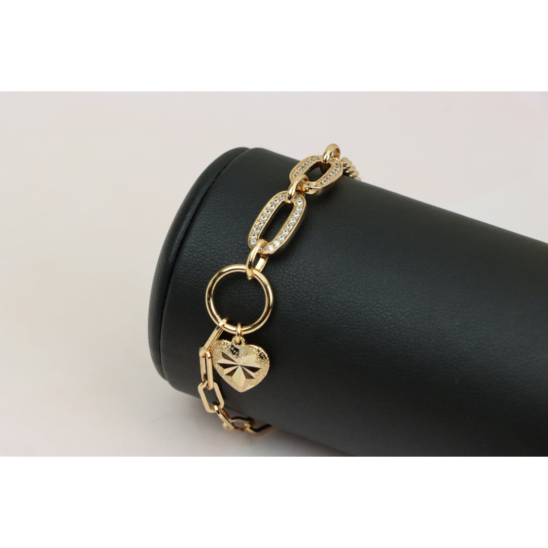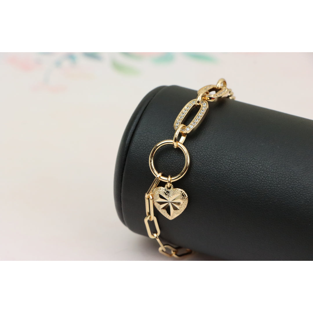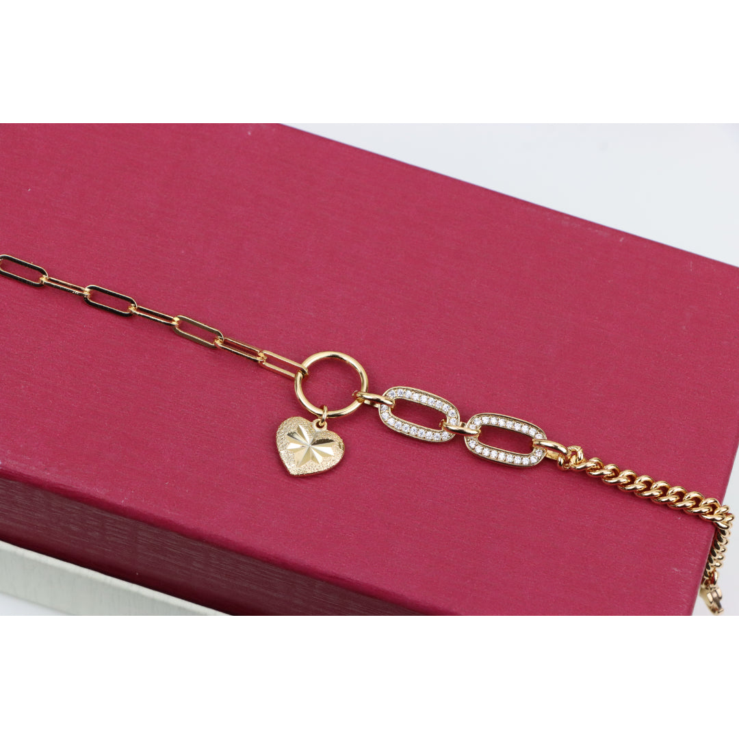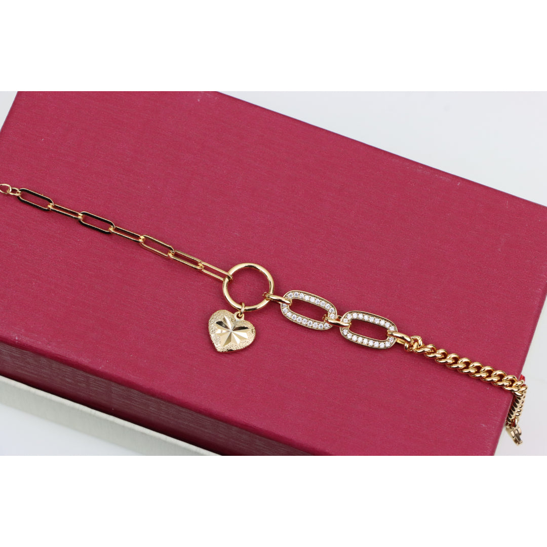 Elegant Rose Gold Heart Charm Bracelet with Sparkling Link Design, XPBL0644 (2065-3)