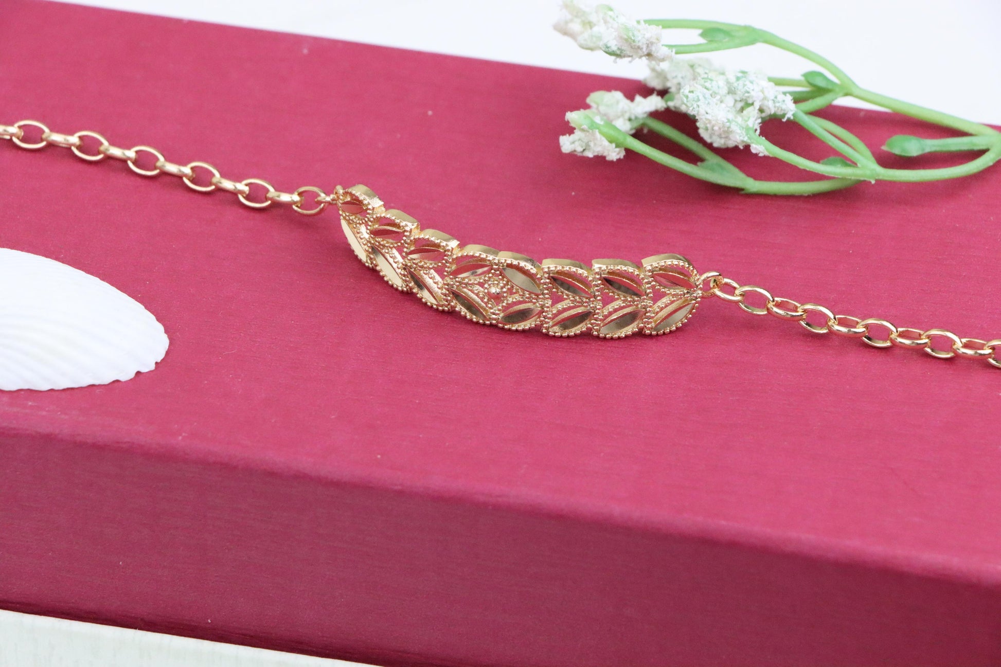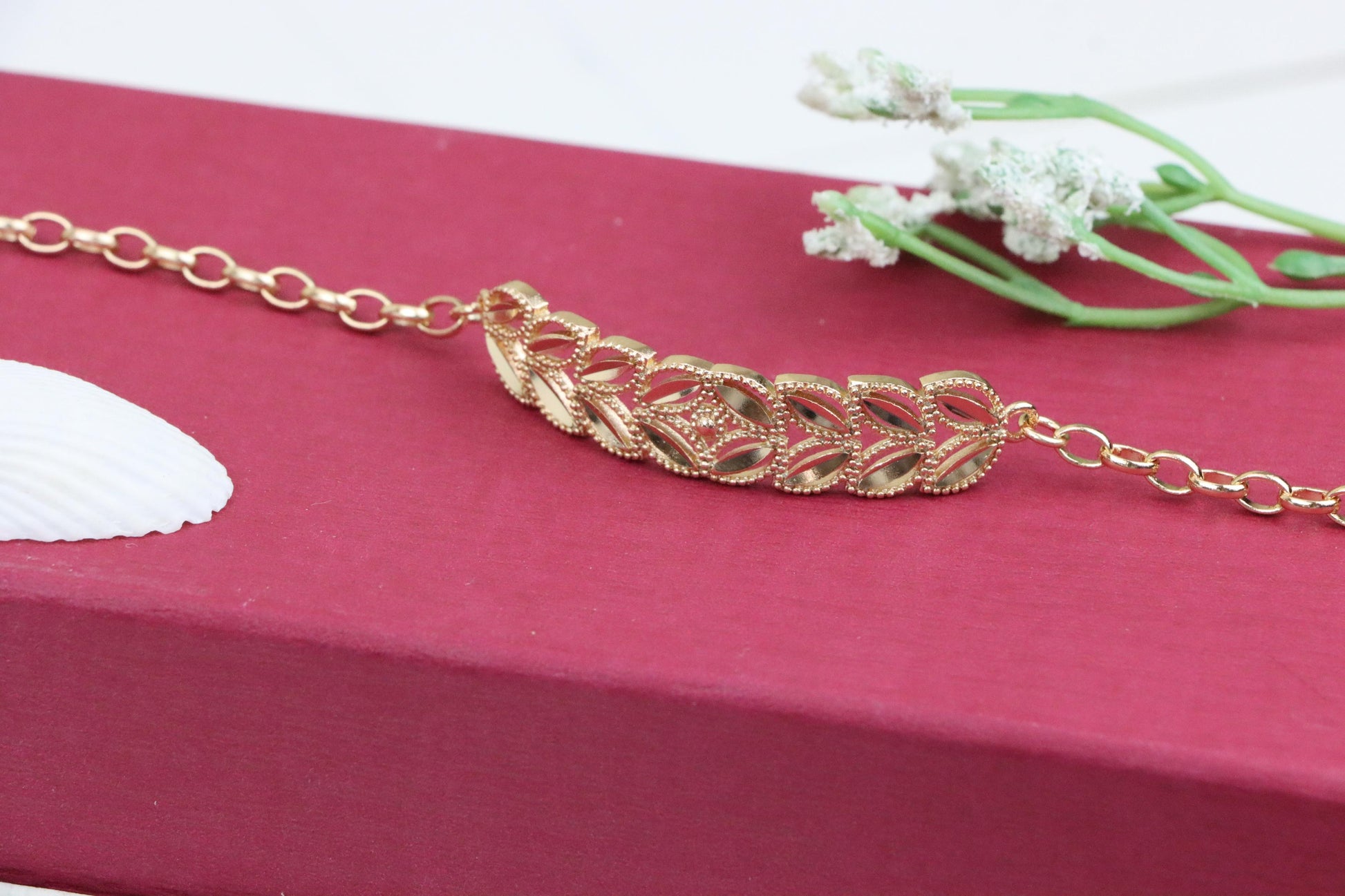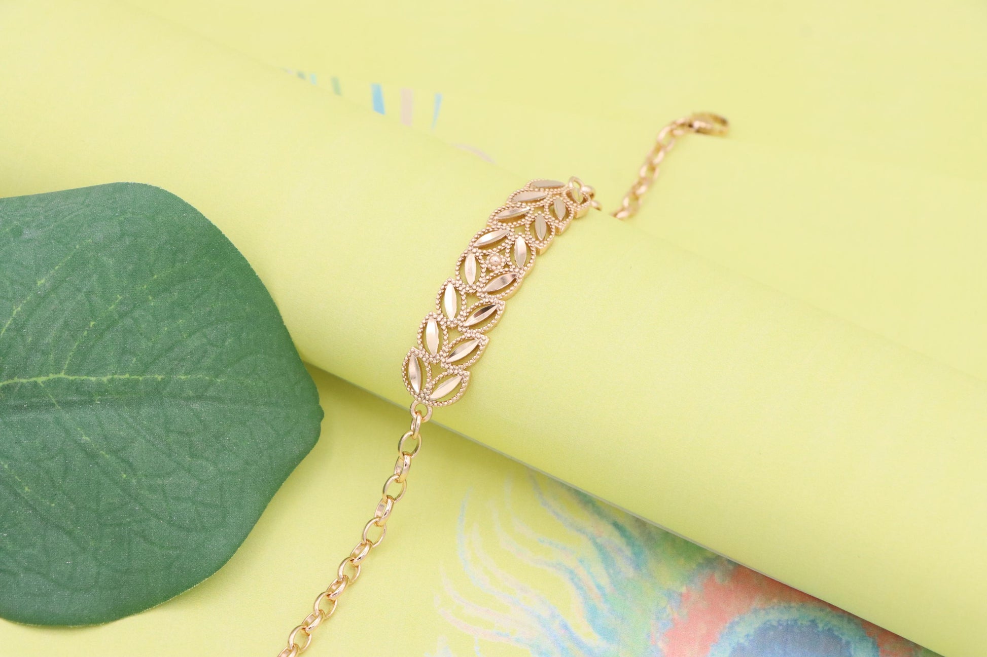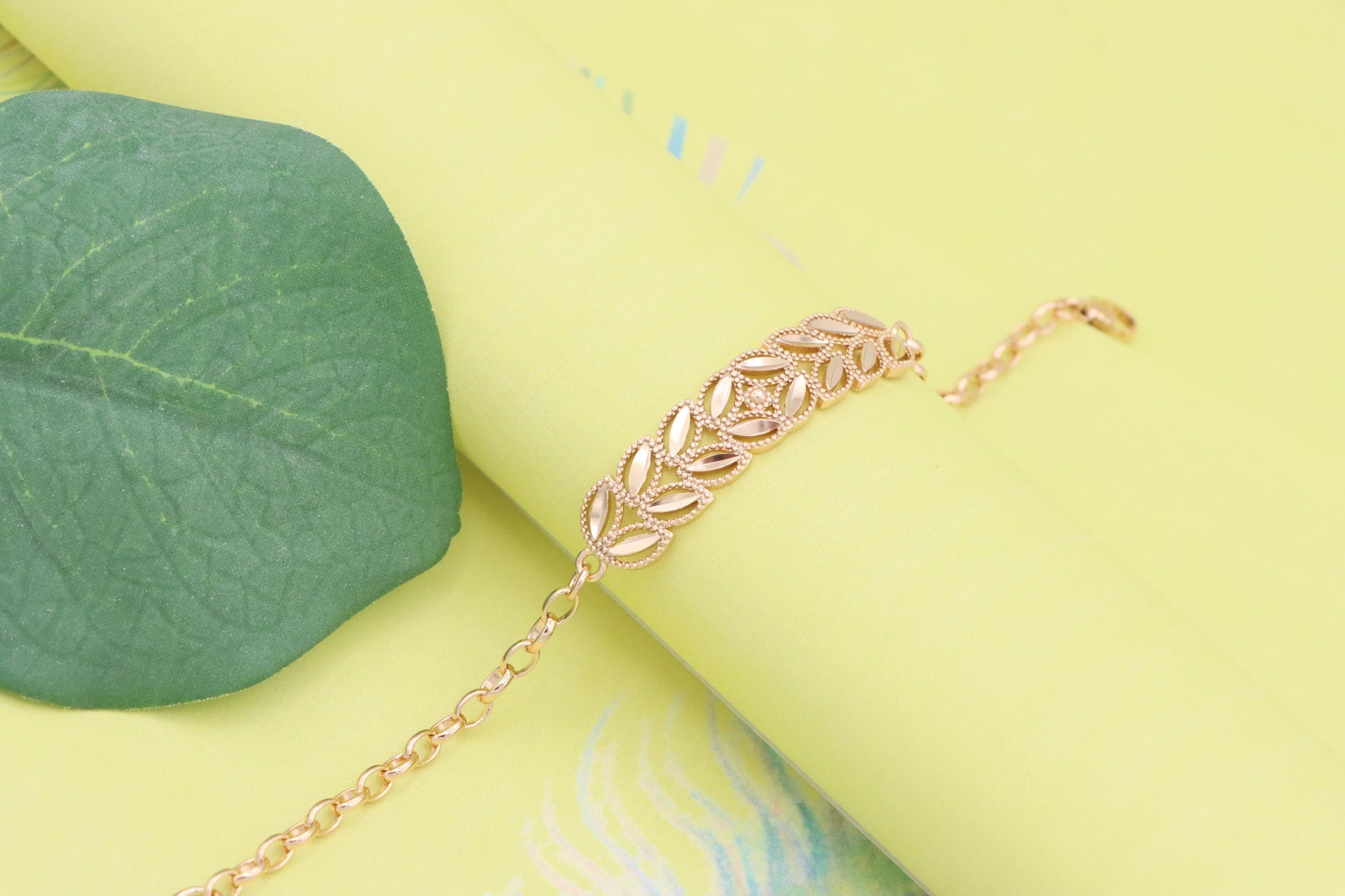 Delicately crafted Rose Gold Bracelet featuring an intricate leaf pattern that enhances any look with timeless elegance.