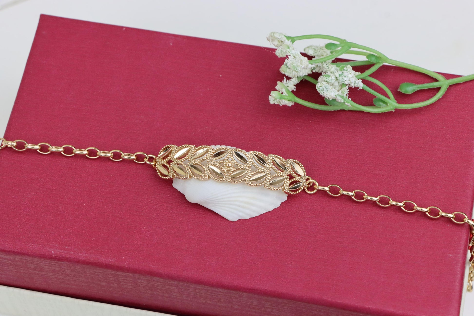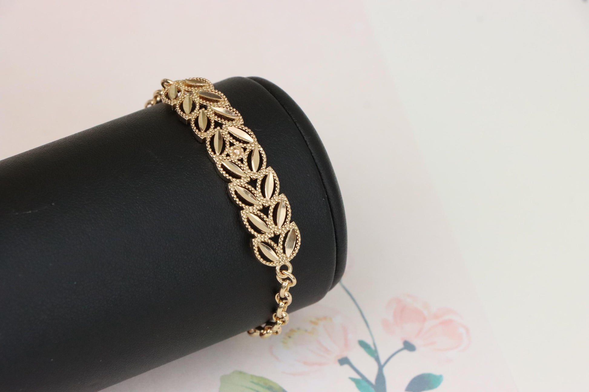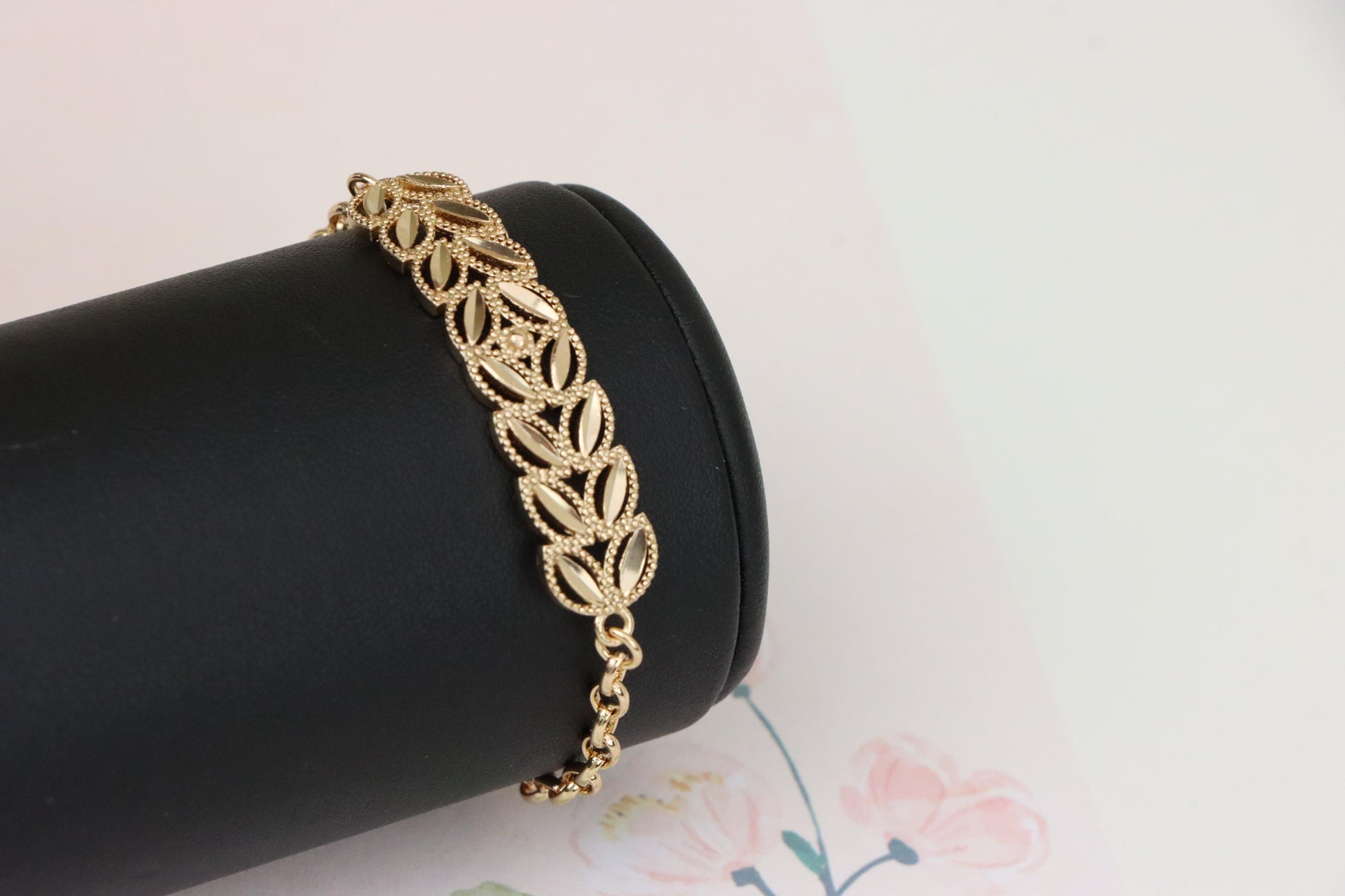 Delicately crafted Rose Gold Bracelet featuring an intricate leaf pattern that enhances any look with timeless elegance.