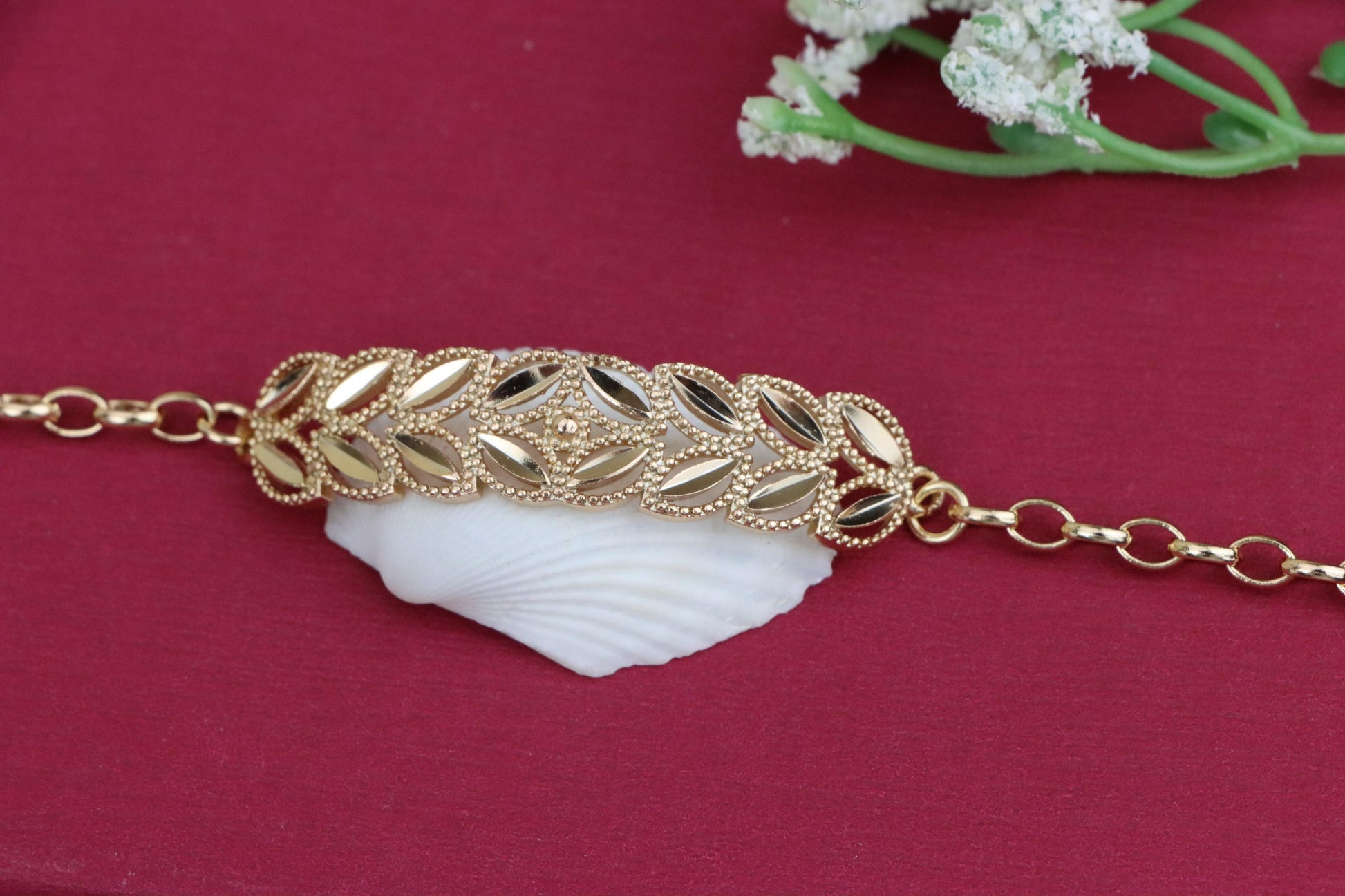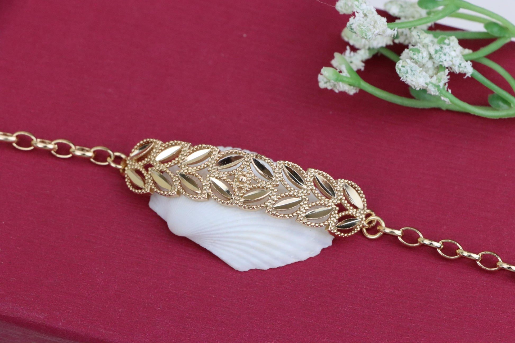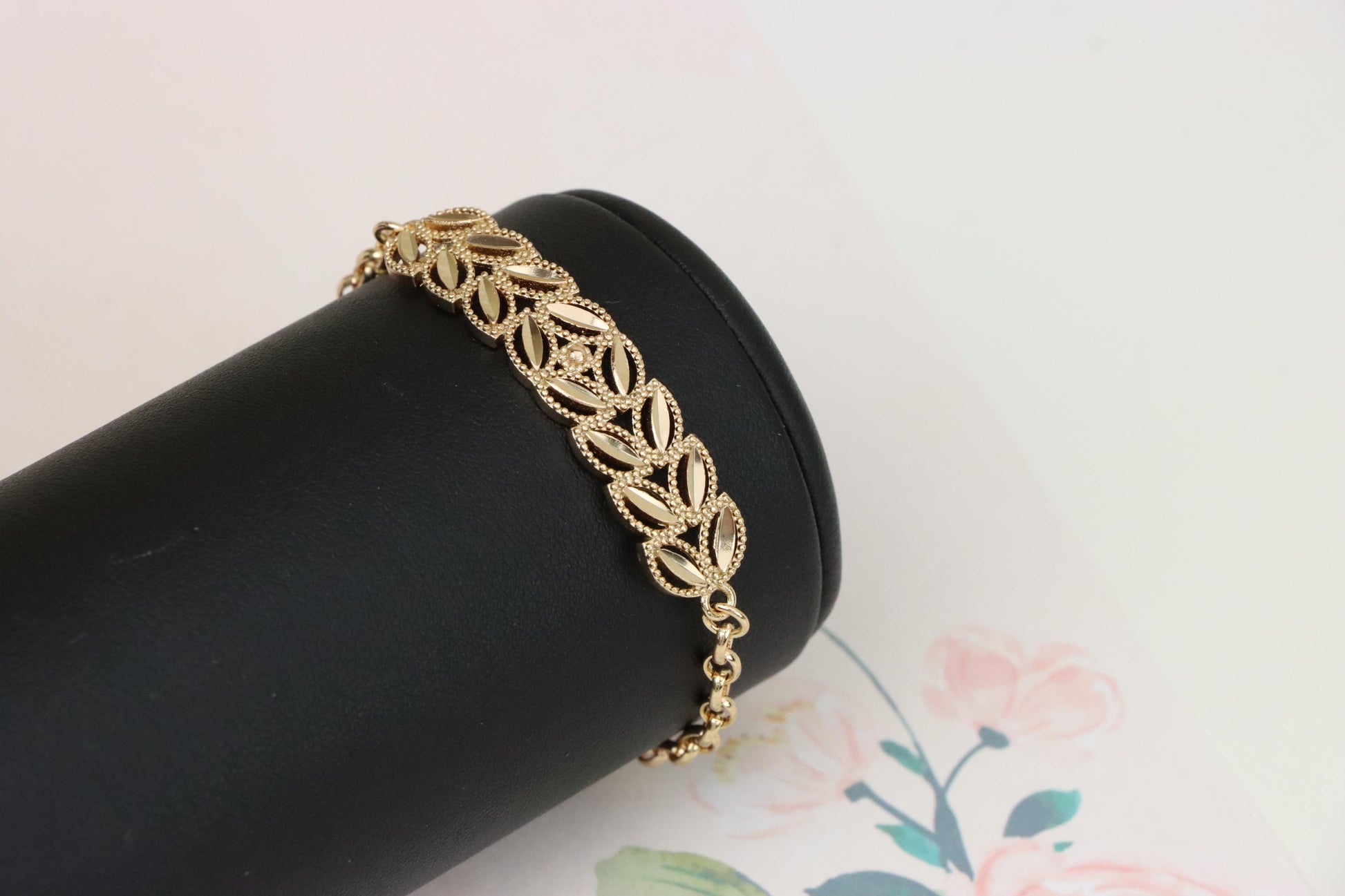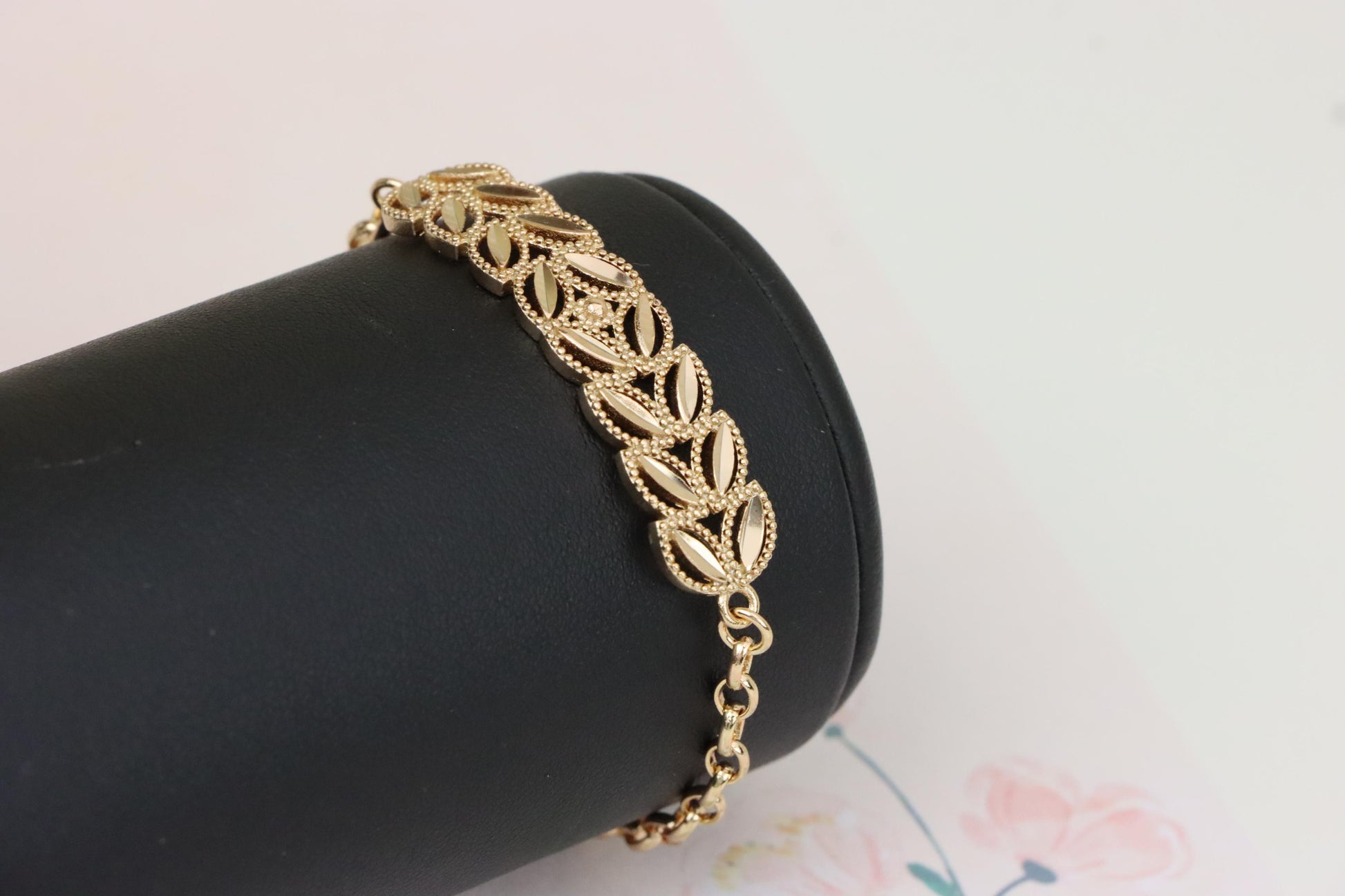 Delicately crafted Rose Gold Bracelet featuring an intricate leaf pattern that enhances any look with timeless elegance.