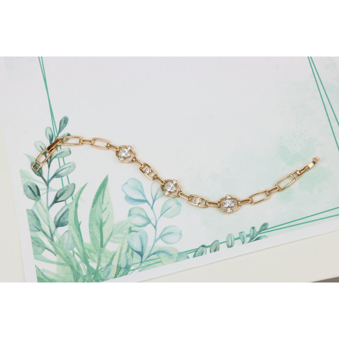 A chic and graceful bracelet featuring oval-cut center stones framed with round cubic zirconia, set in a polished rose gold plated link design.