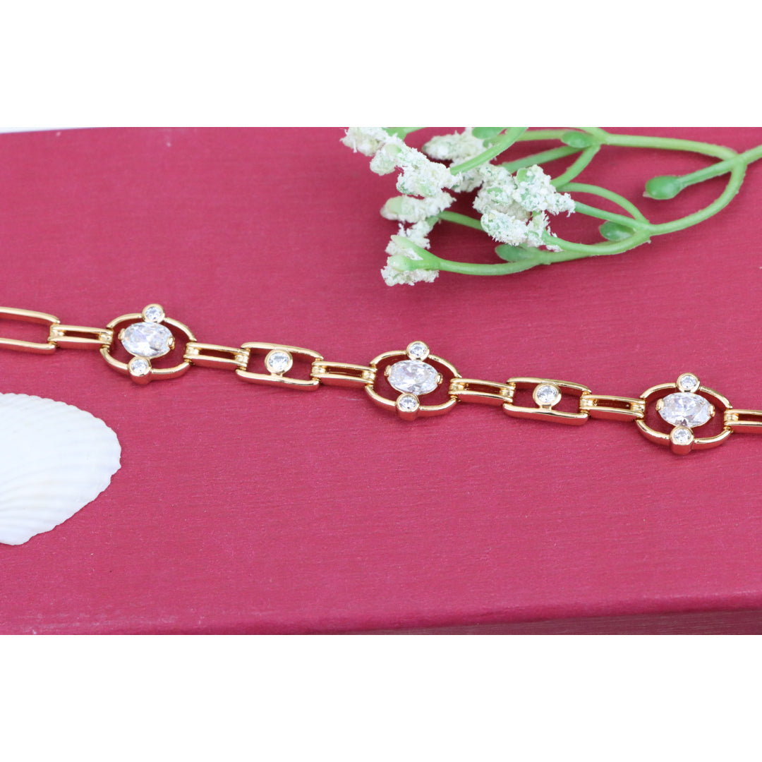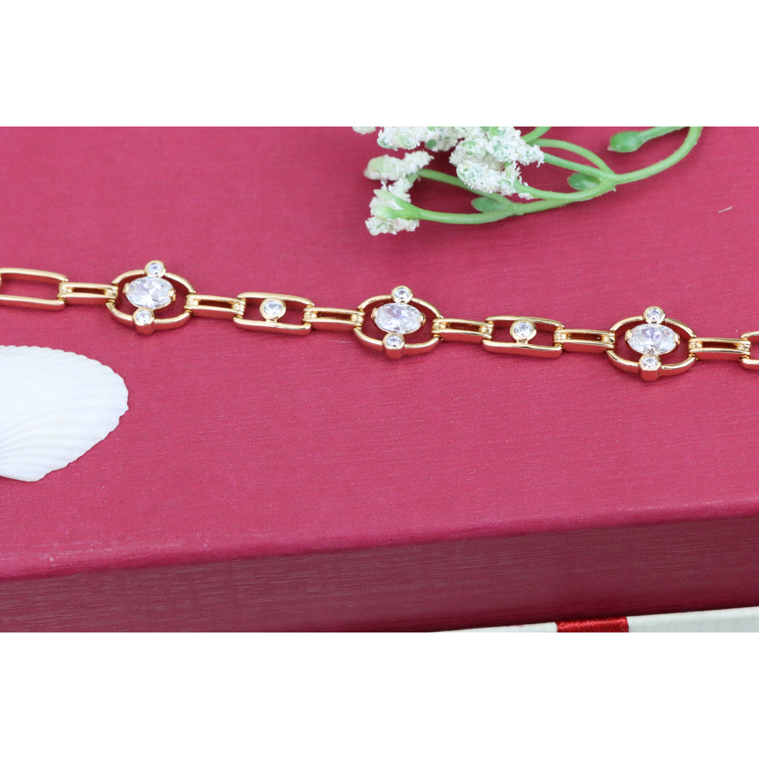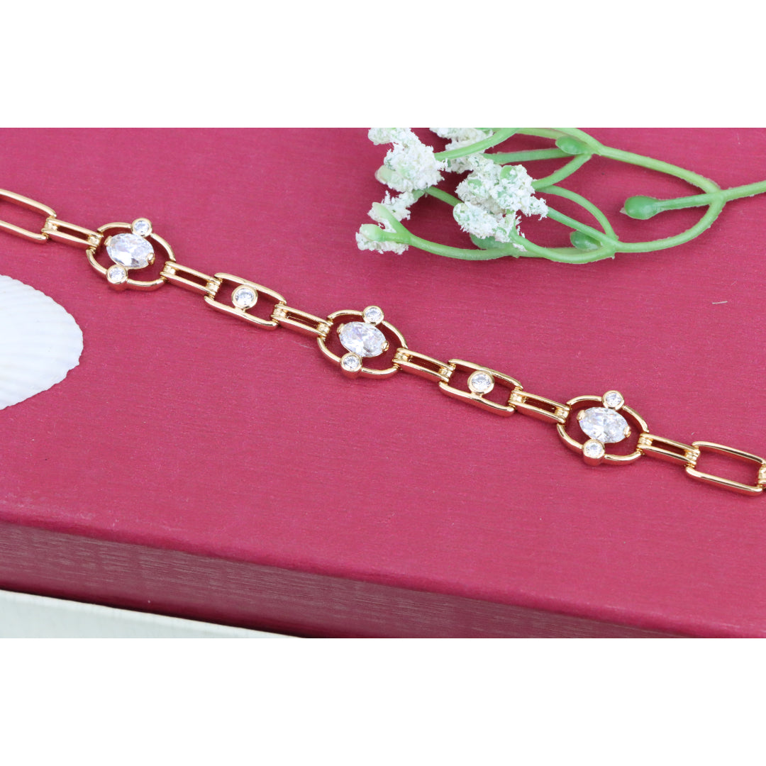 Elegant Rose Gold Link Bracelet with Oval & Round Sparkling CZ, XPBL0926 (2093-5)