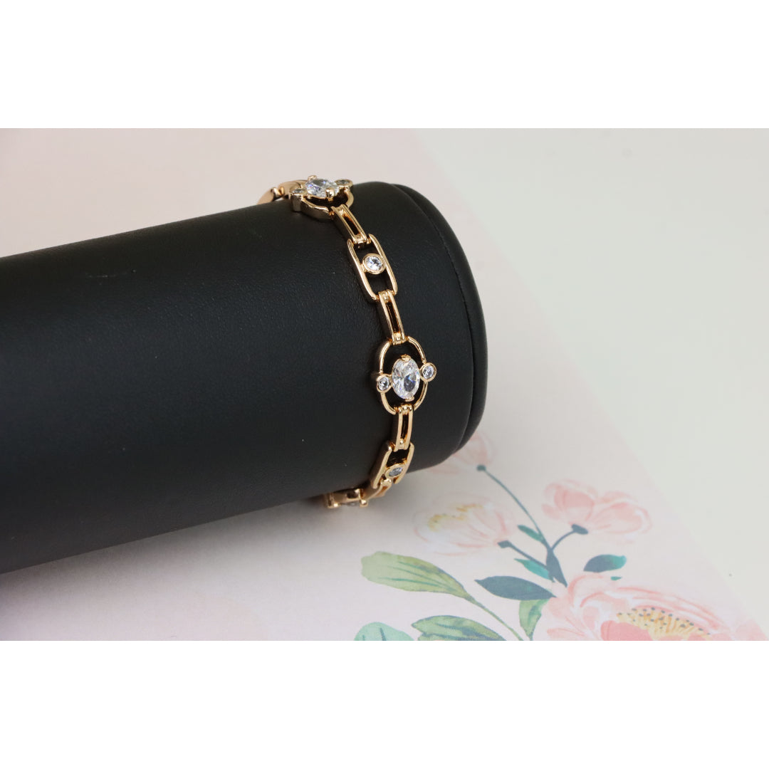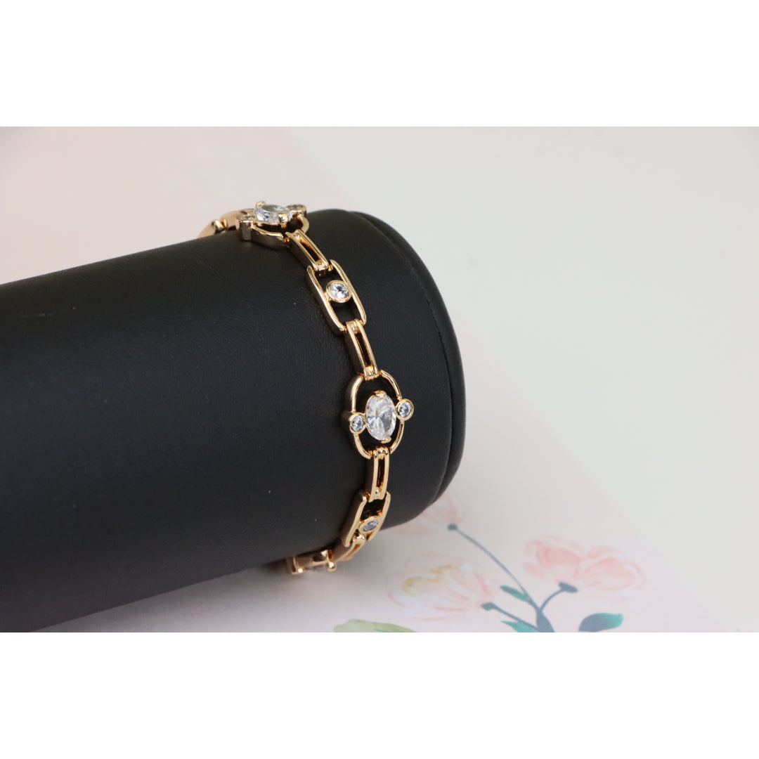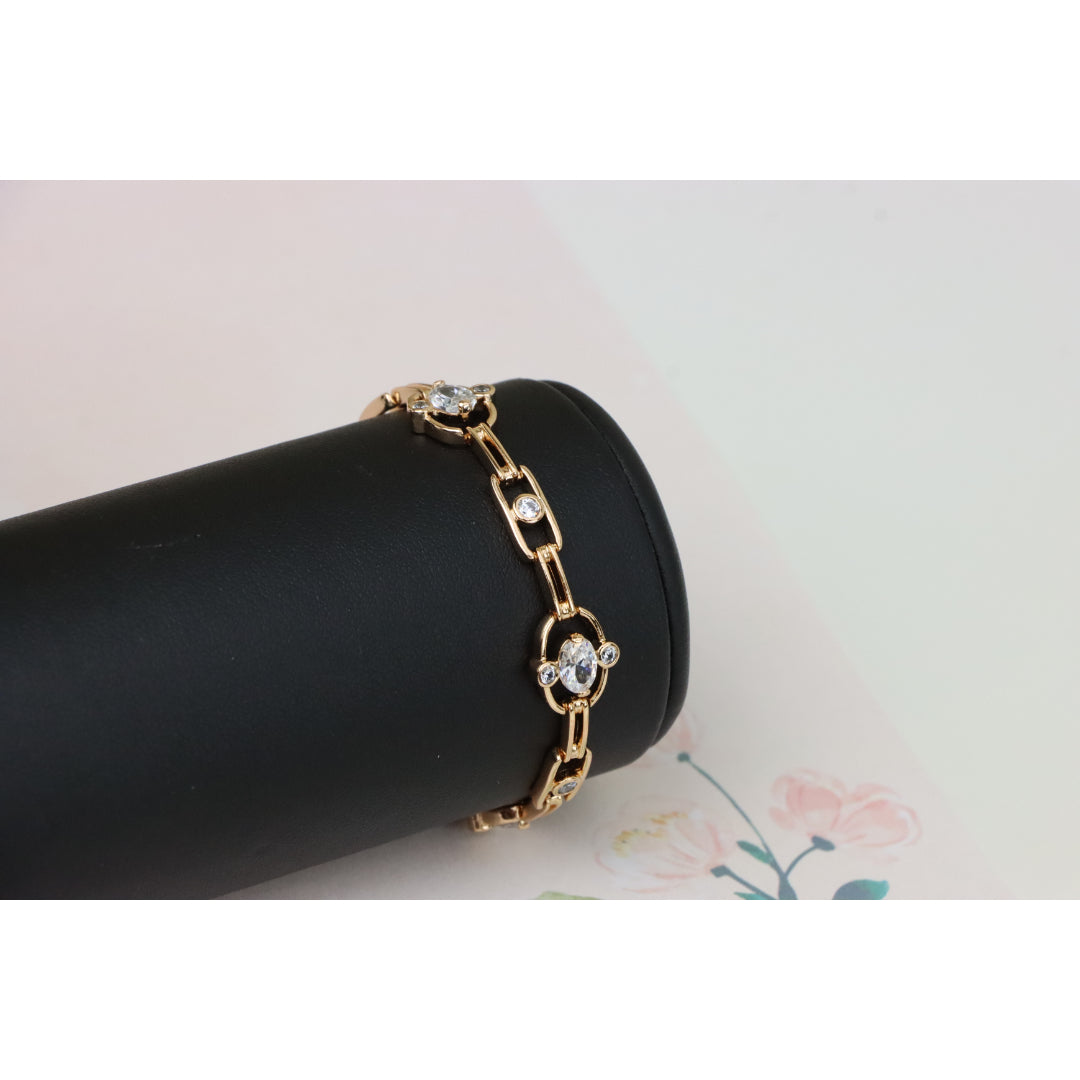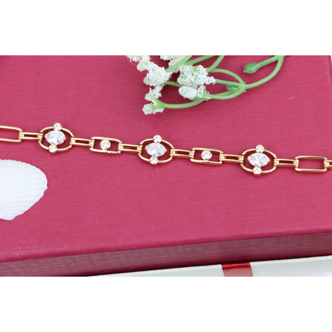 Elegant Rose Gold Link Bracelet with Oval & Round Sparkling CZ, XPBL0926 (2093-5)