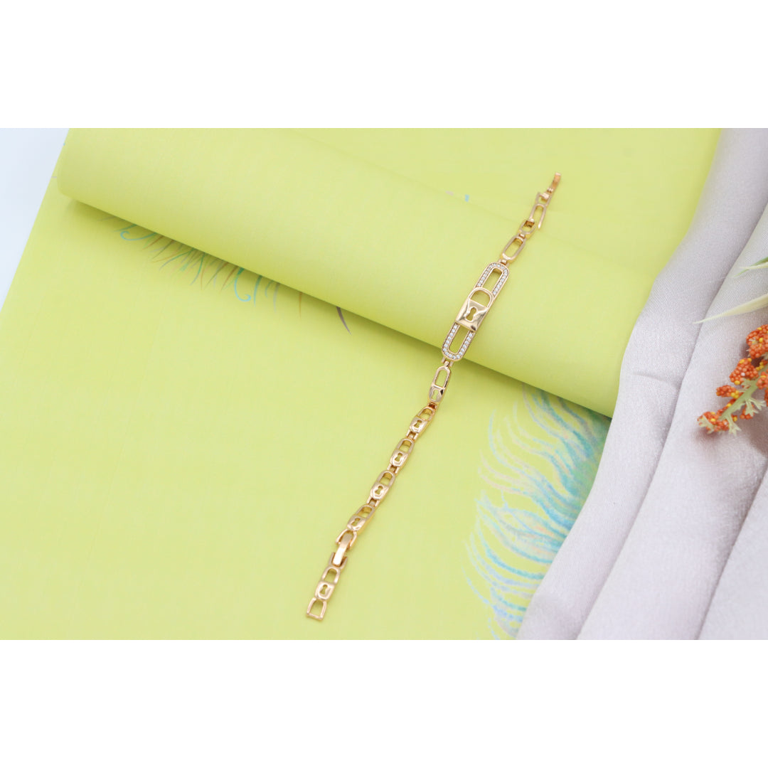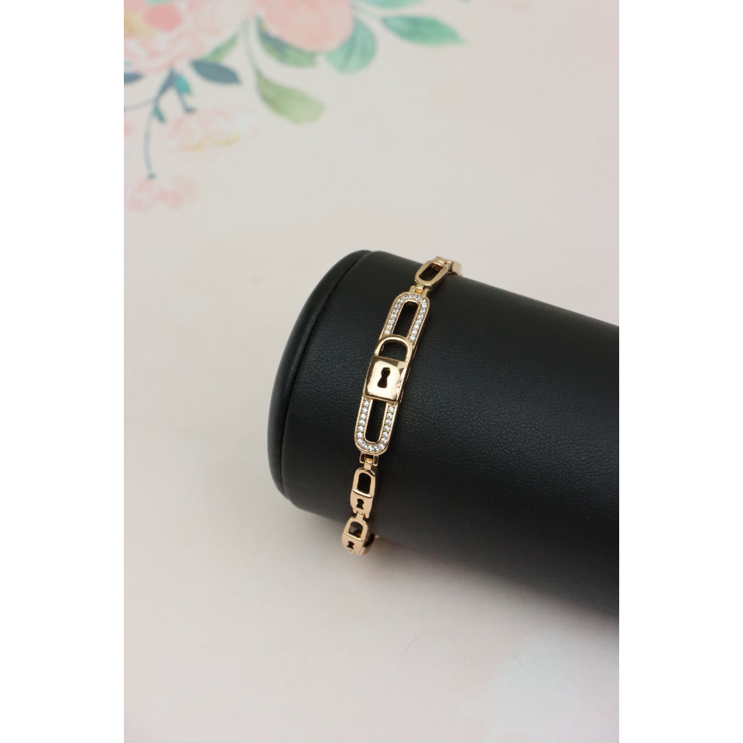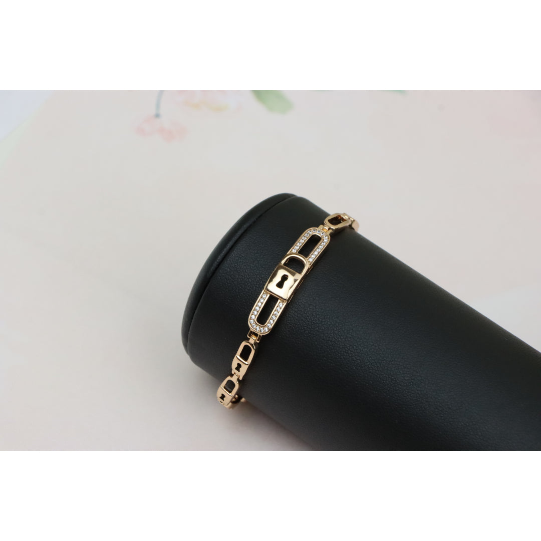 Gold plated over high-quality brass bracelet with a stunning lock-link design, crafted in elegant rose gold, perfect for everyday sophistication or special occasions. Bracelet size is 20cm (approximately 7.87 inches).