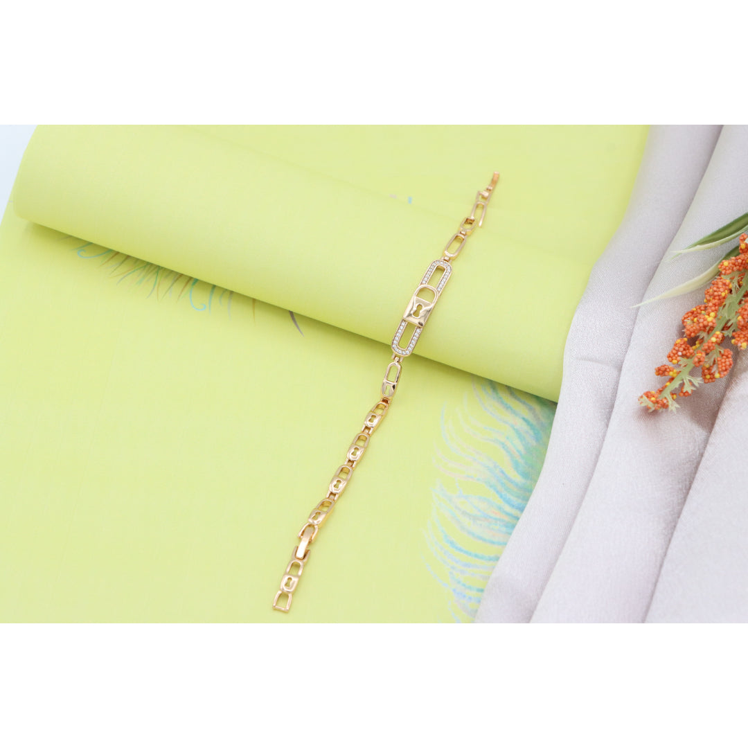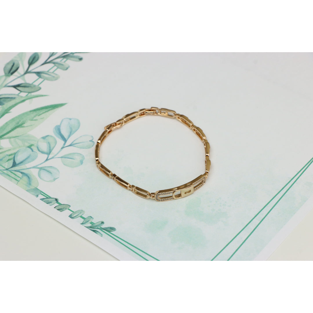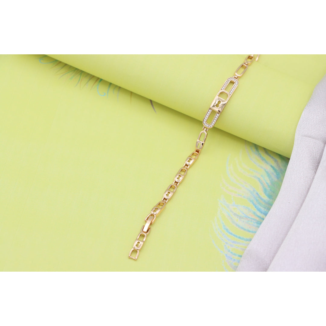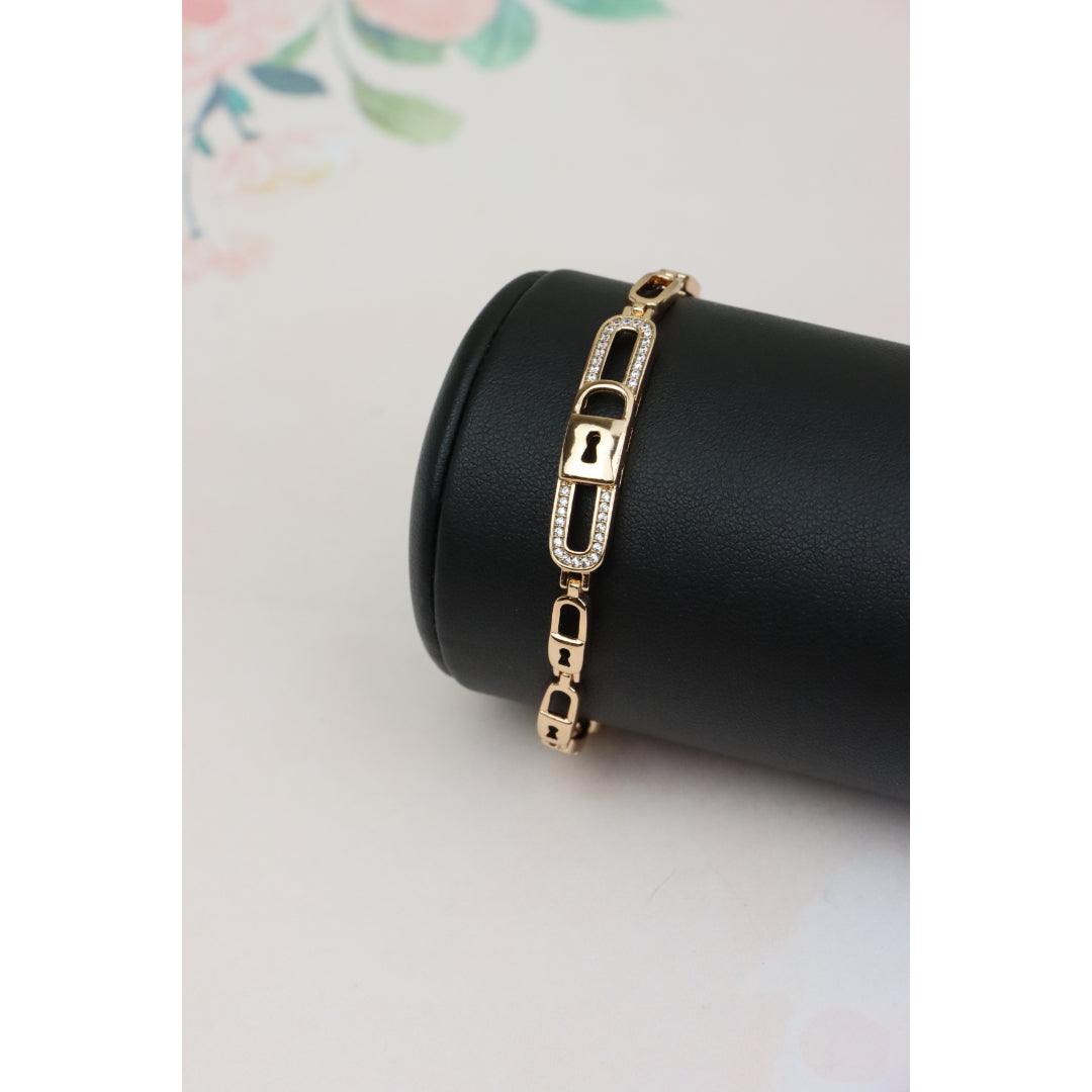 Gold plated over high-quality brass bracelet with a stunning lock-link design, crafted in elegant rose gold, perfect for everyday sophistication or special occasions. Bracelet size is 20cm (approximately 7.87 inches).