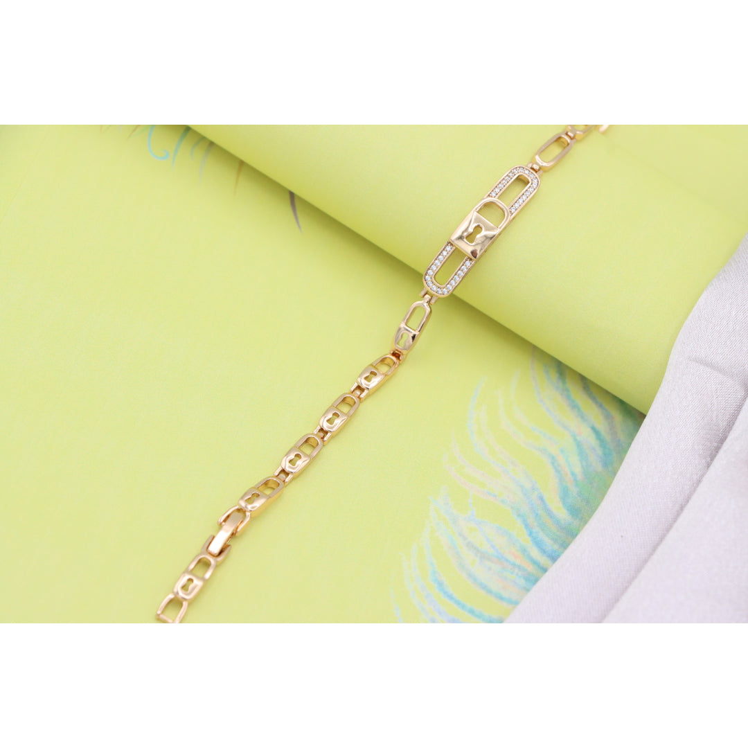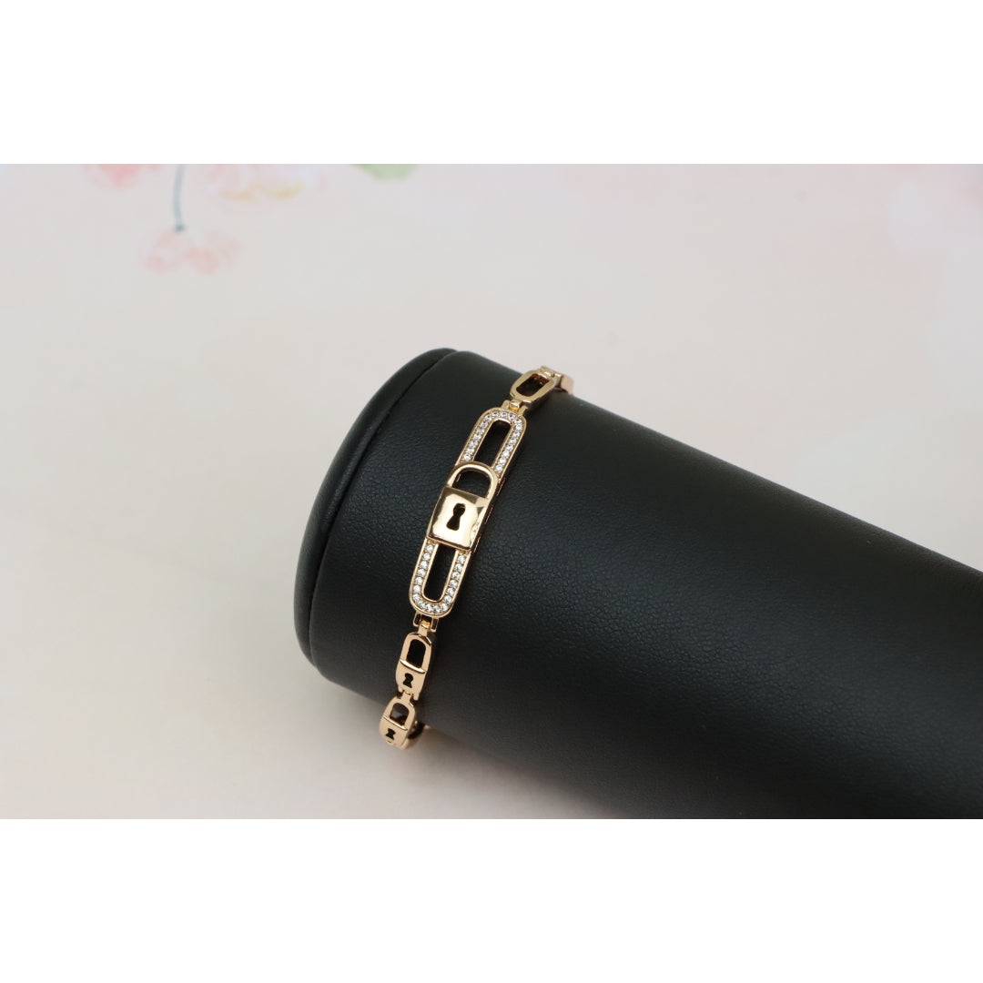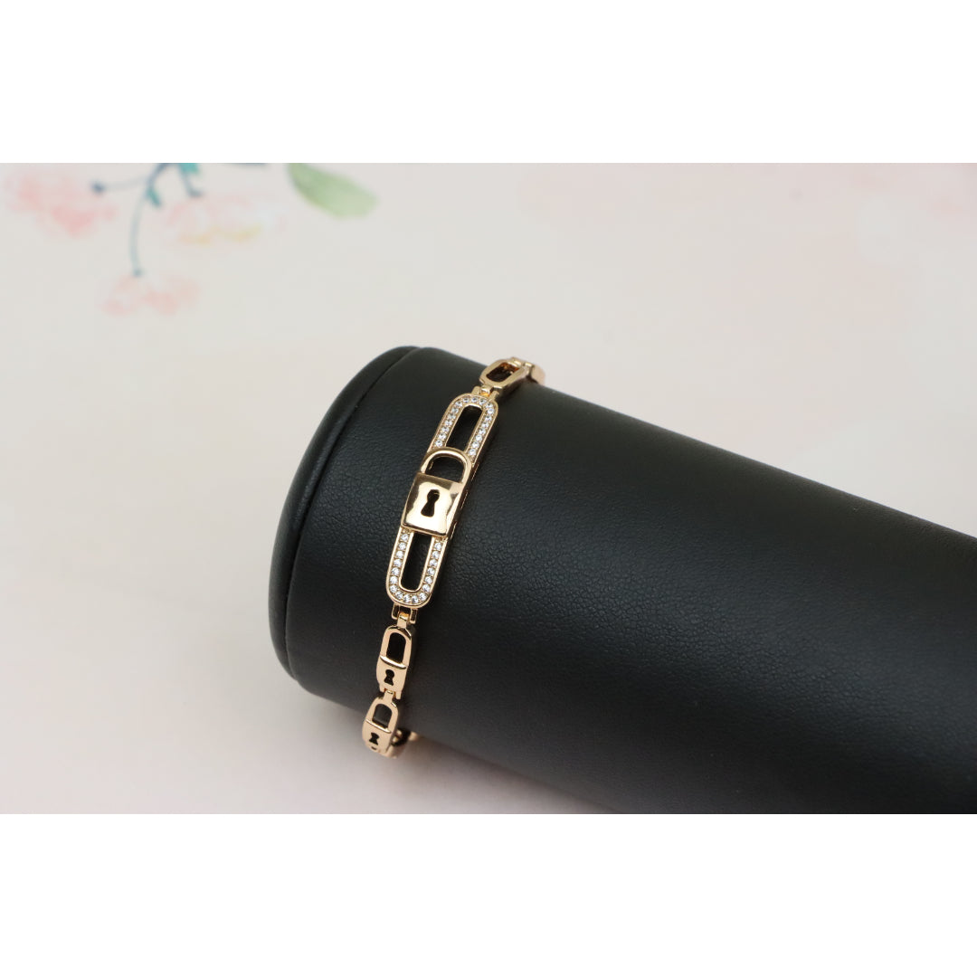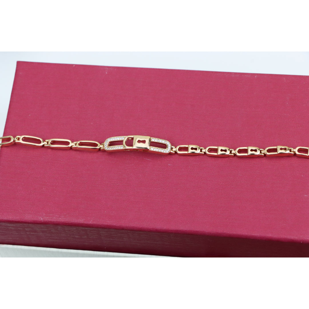Elegant Rose Gold Lock Link Bracelet with Cubic Zirconia, XPBL0640 (2064-9)