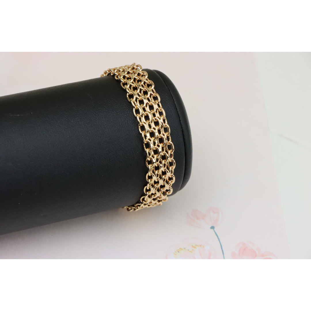 Add bold elegance to your wrist with this multi-chain rose gold bracelet, crafted from high-quality brass and finished with a durable gold plating.