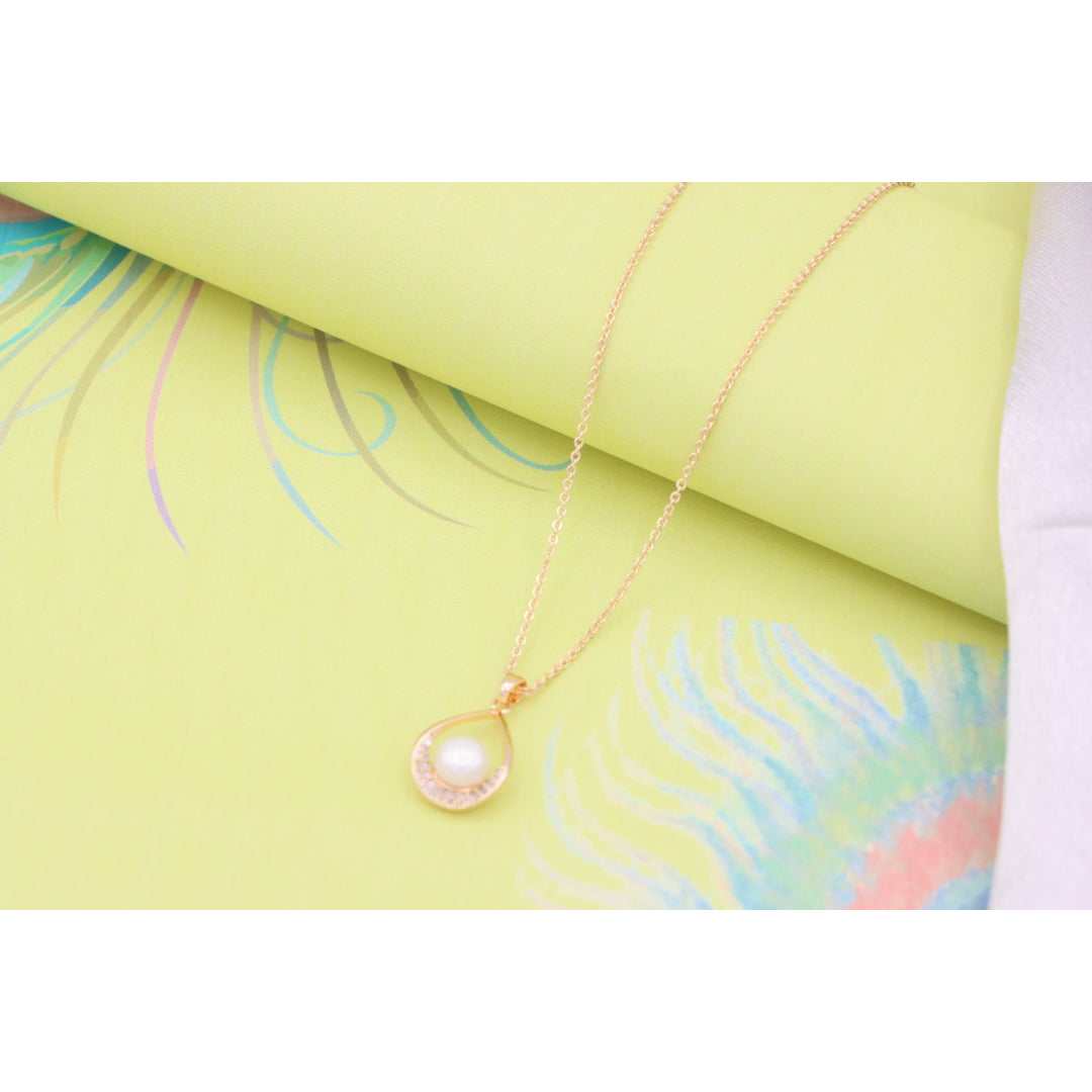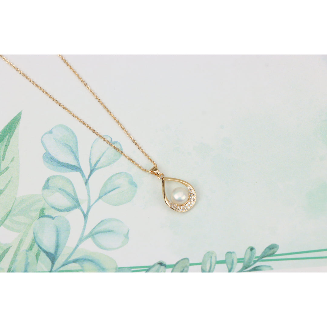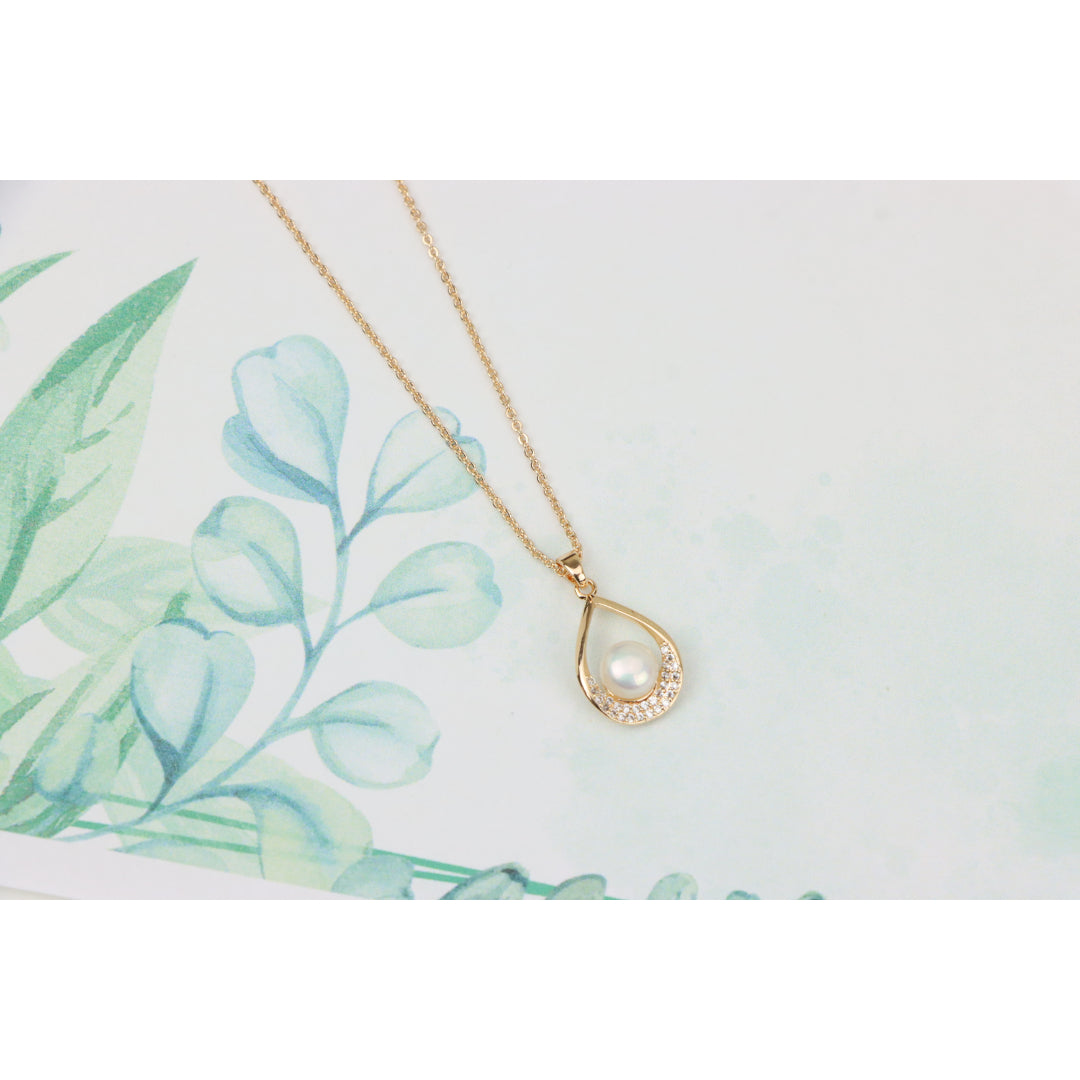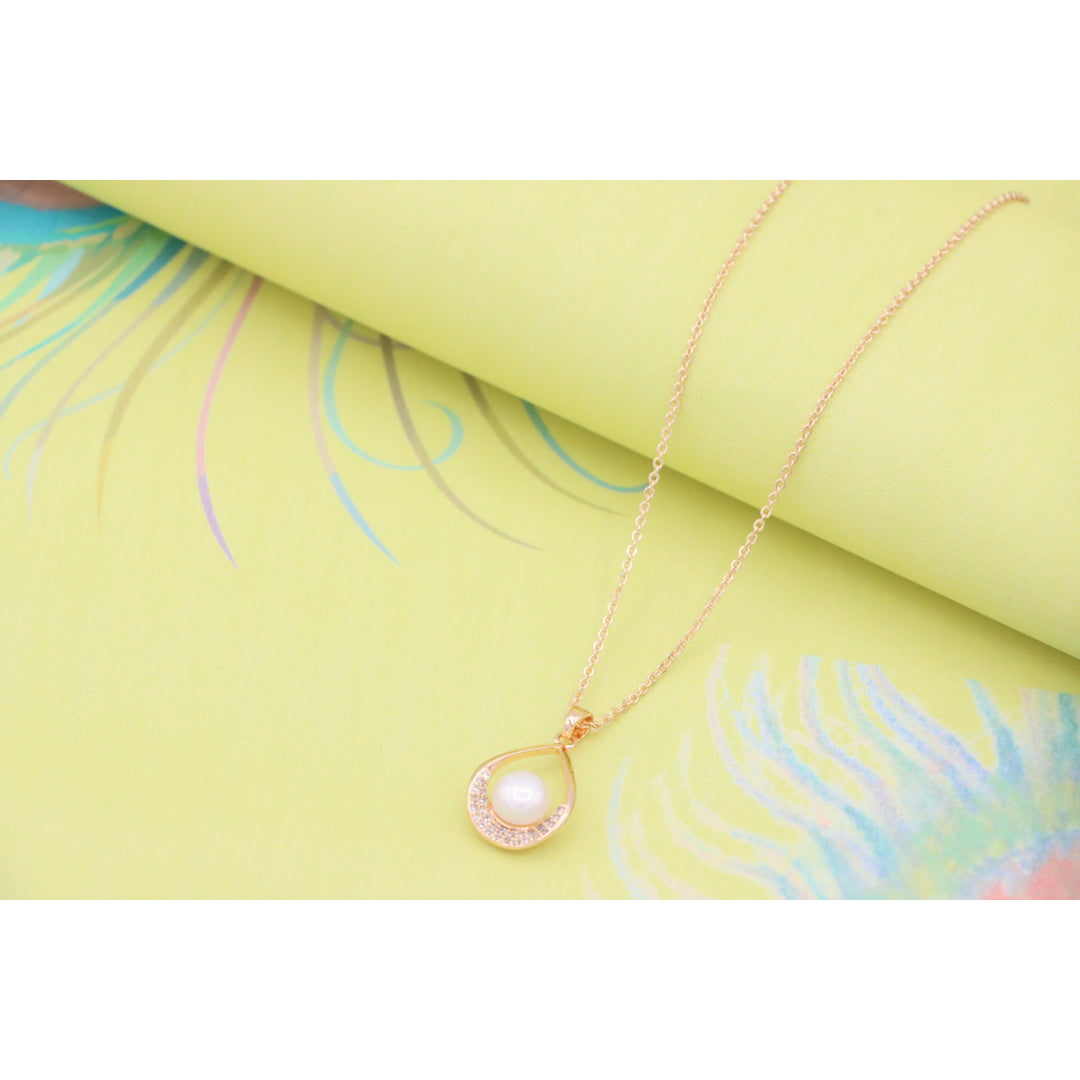 Elegant Rose Gold Necklace with Pearl Drop Pendant, XPNL0717