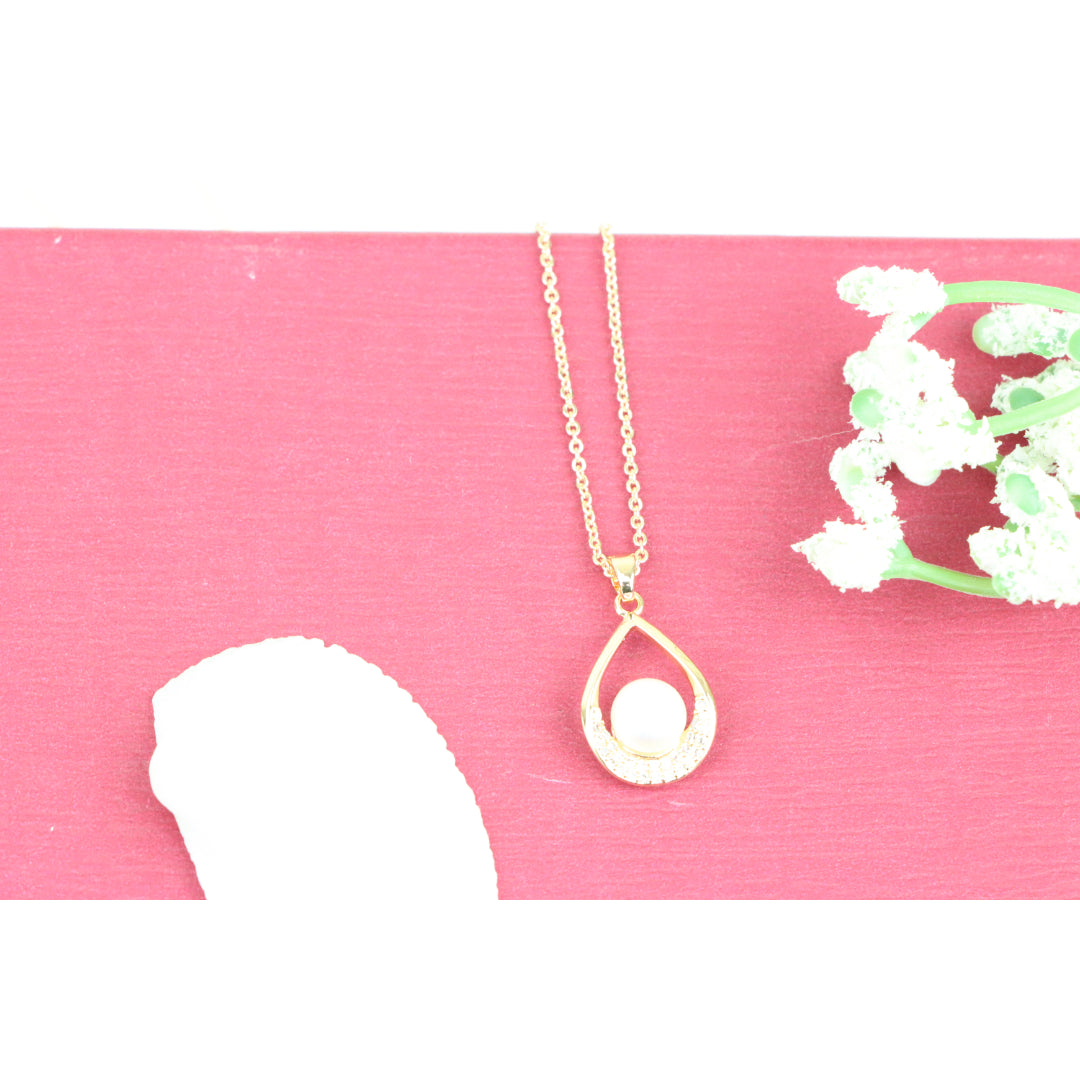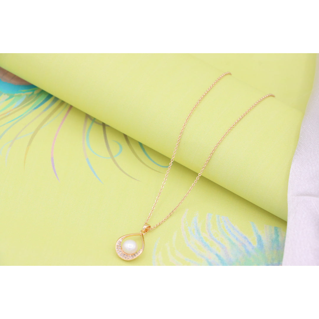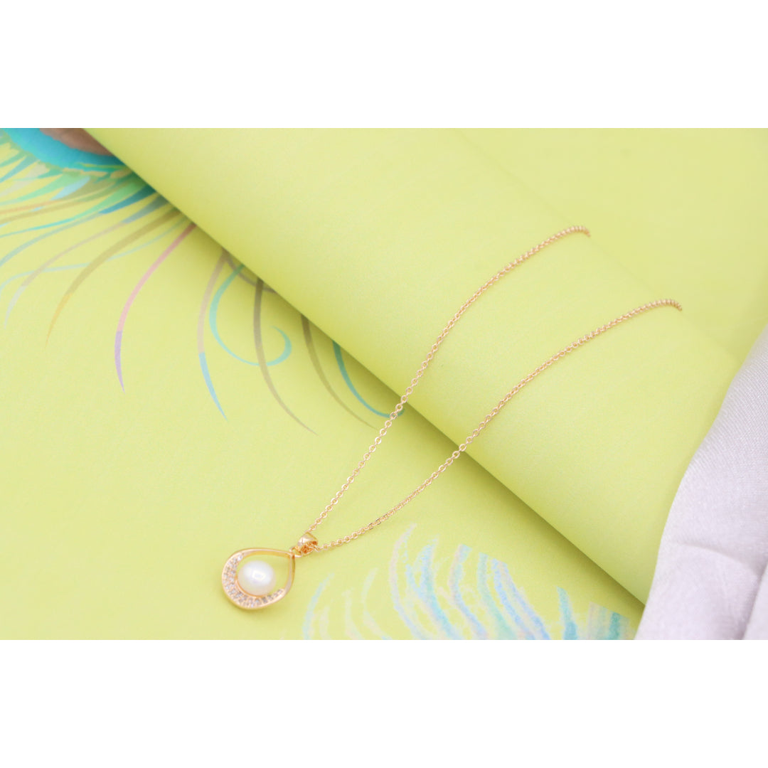 Elegant Rose Gold Necklace with Pearl Drop Pendant, XPNL0717