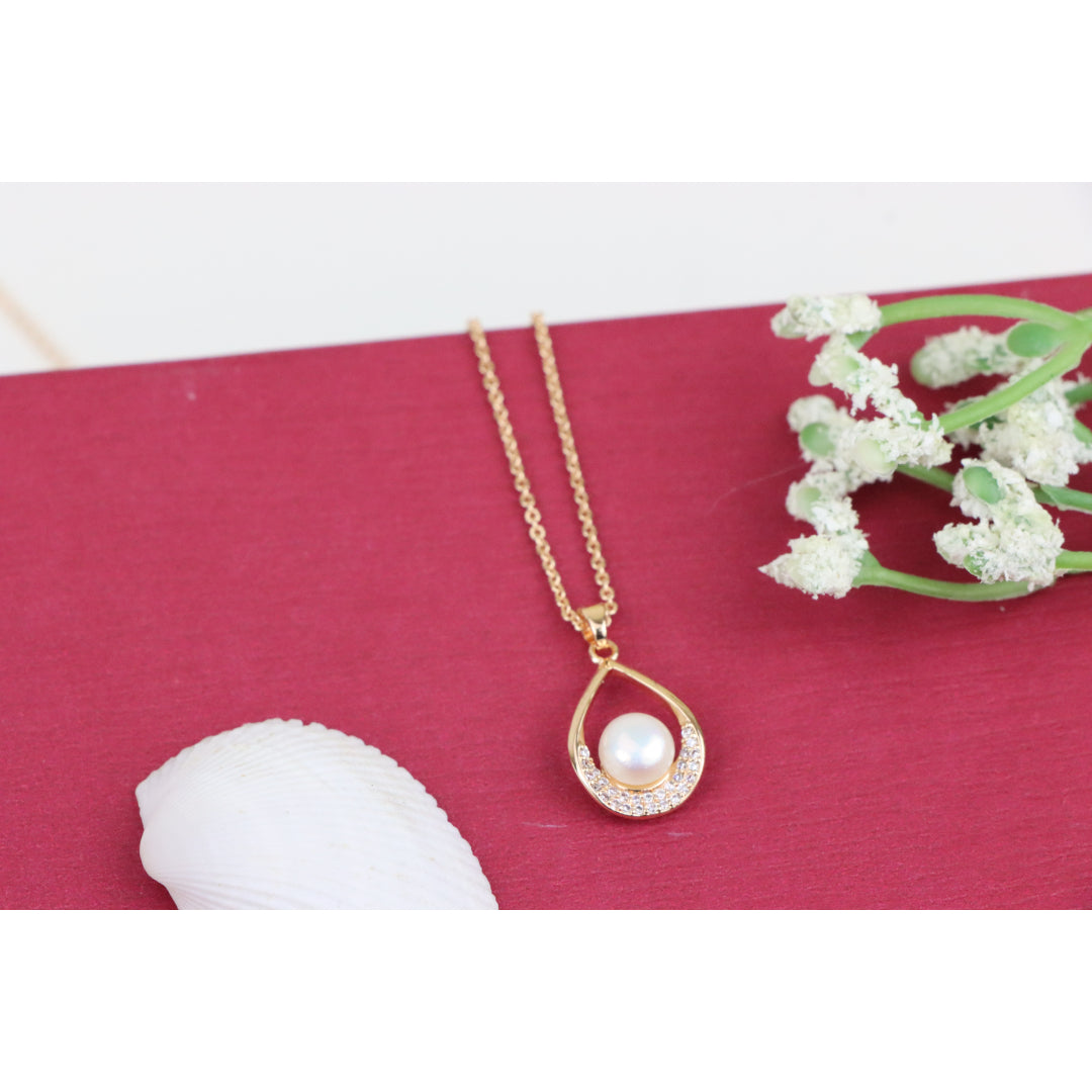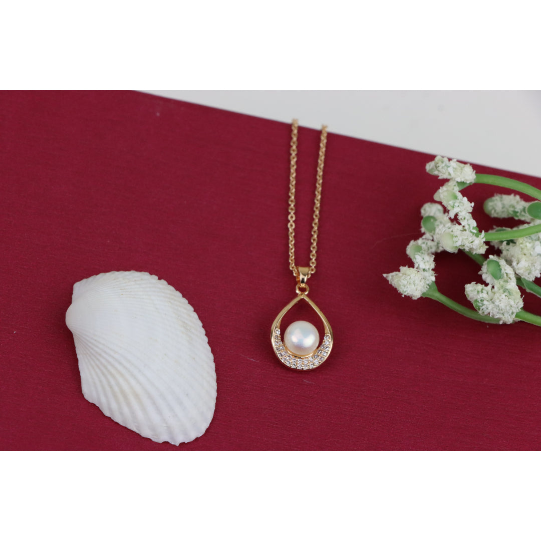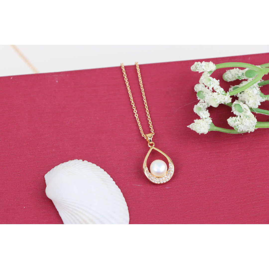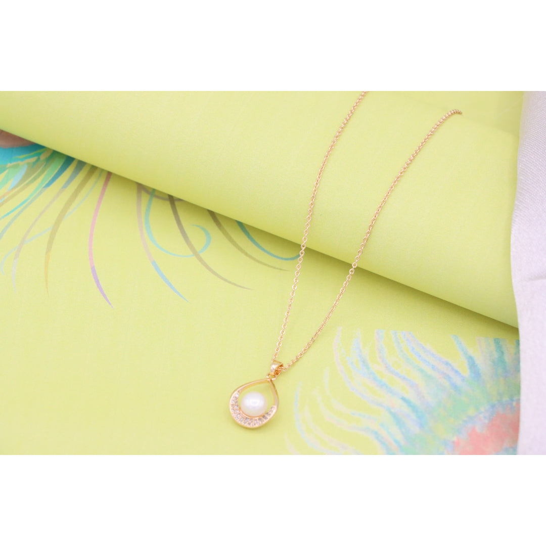 Elegant Rose Gold Necklace with Pearl Drop Pendant, XPNL0717