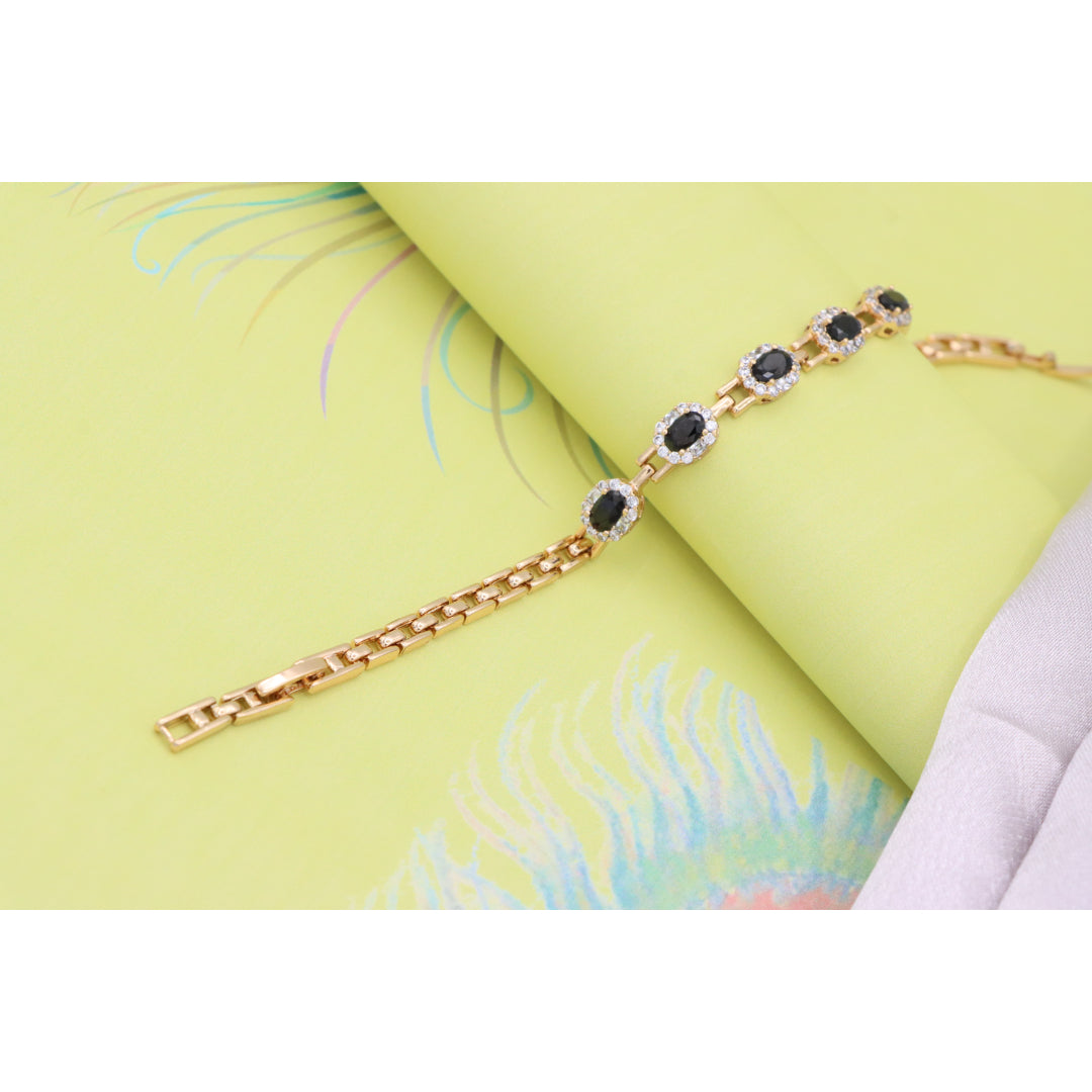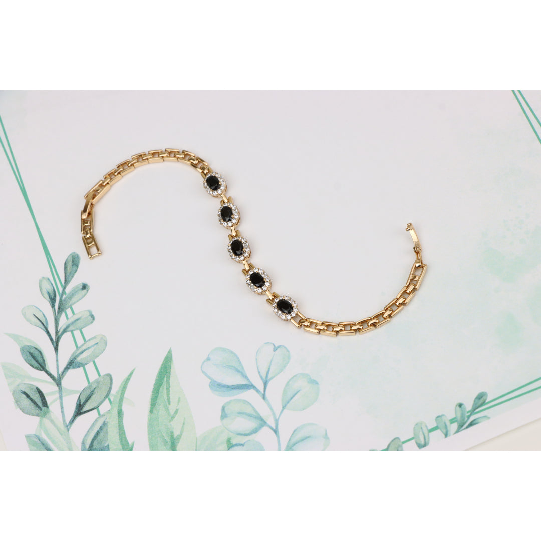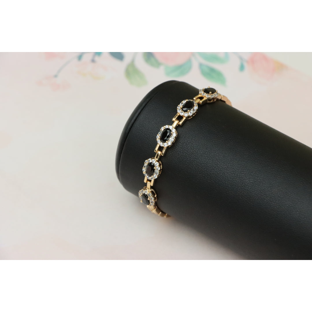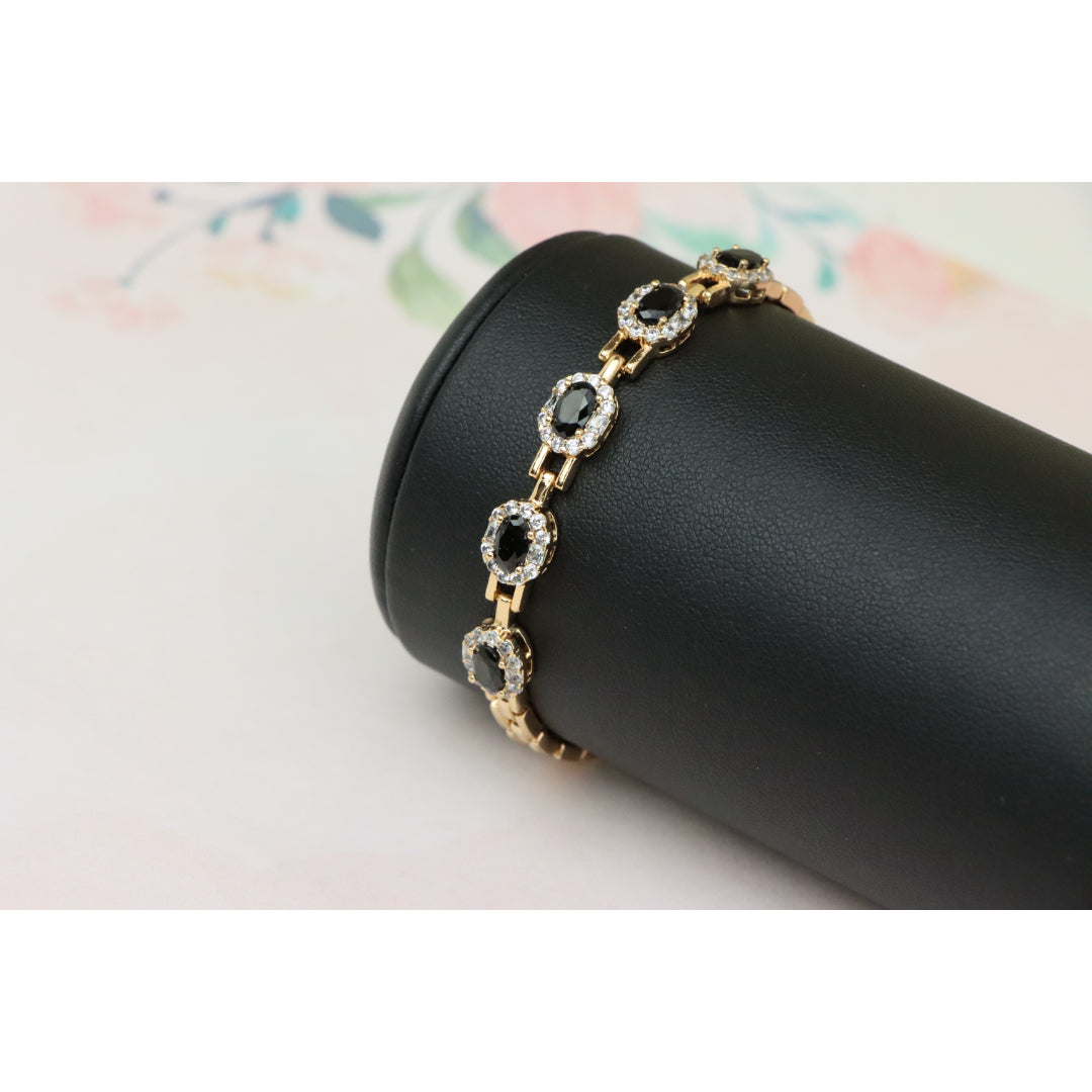 Elegant Rose Gold Oval Black Stone Bracelet with Crystal Halos, XPBL0736
