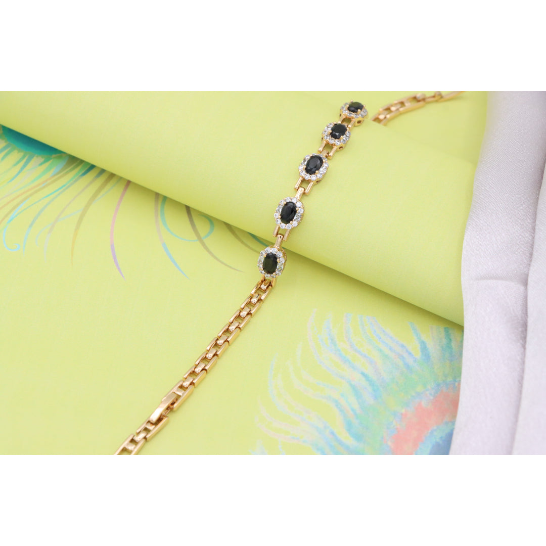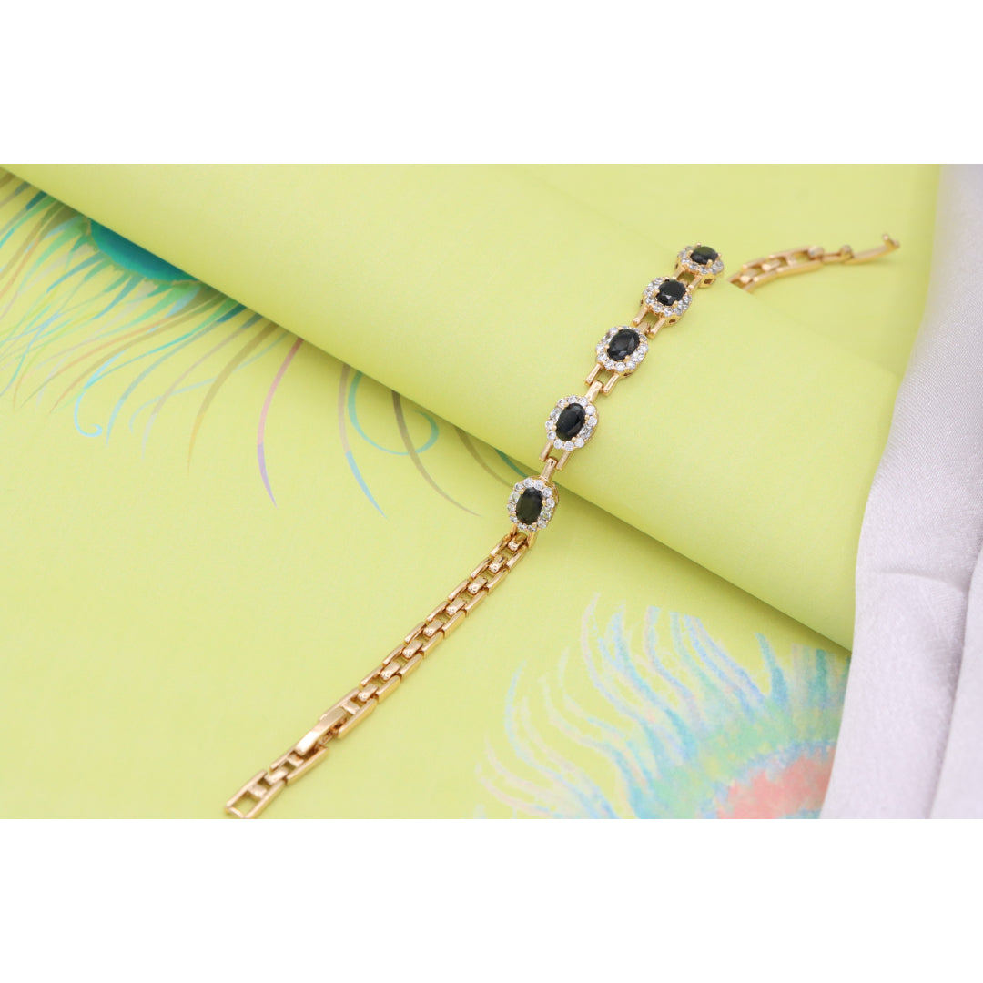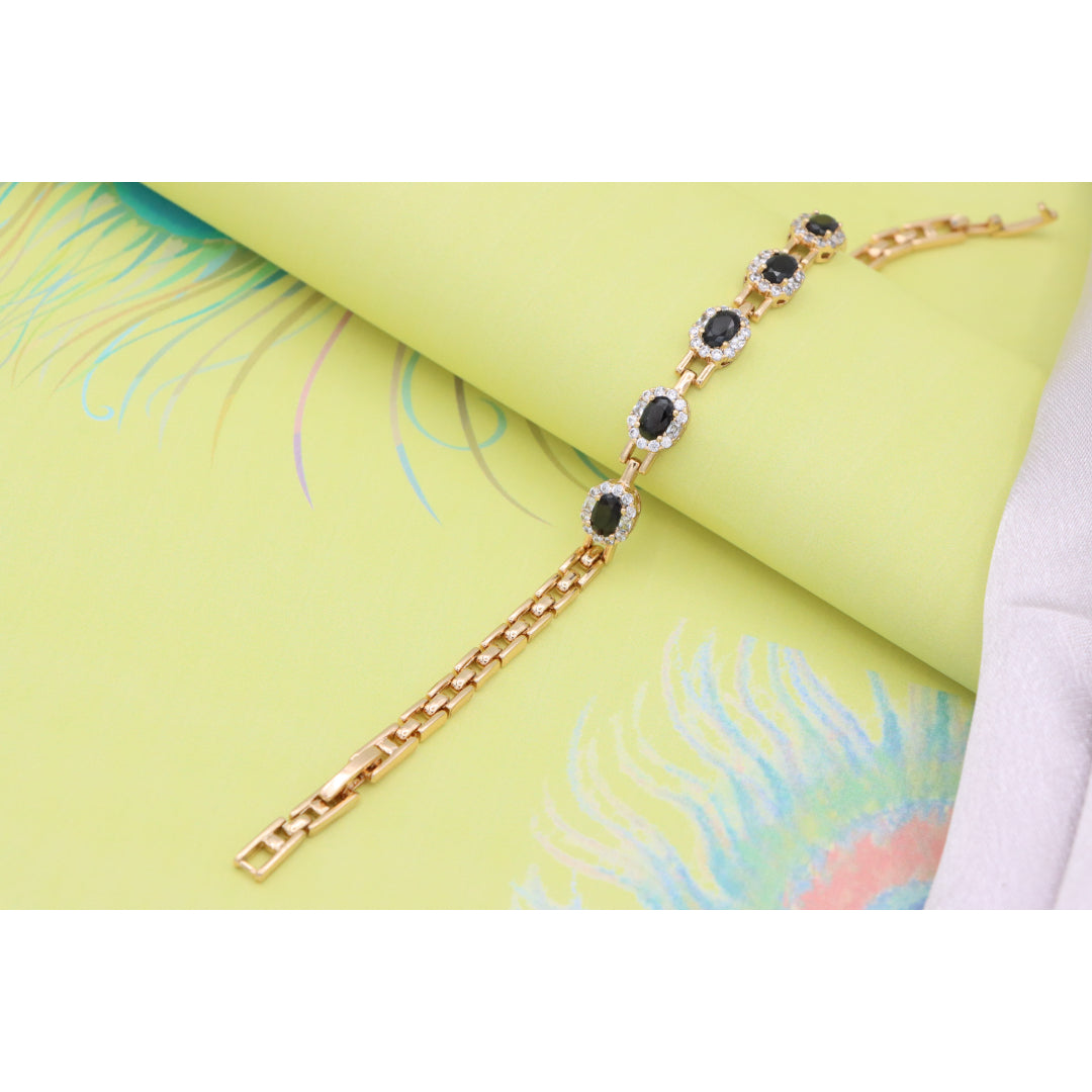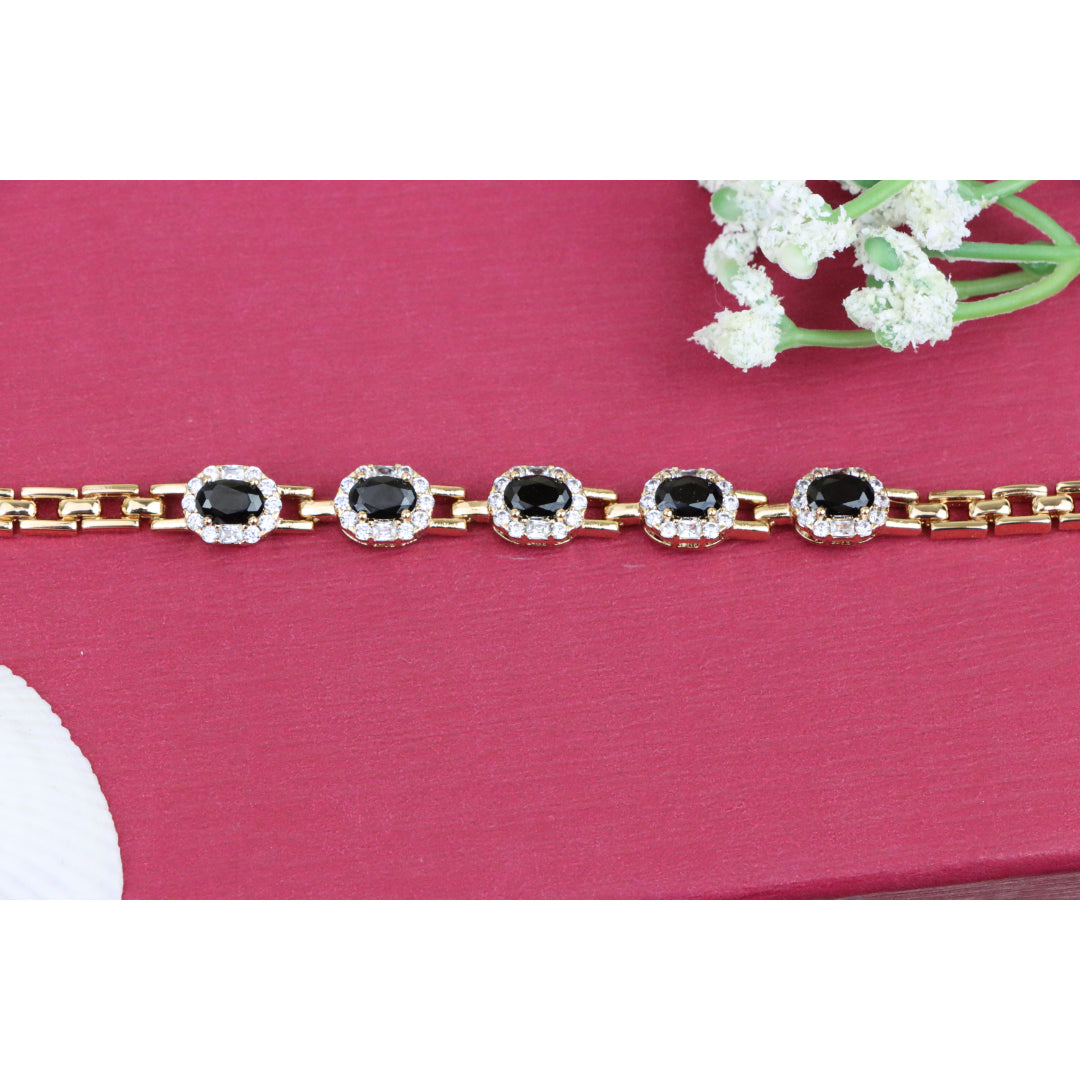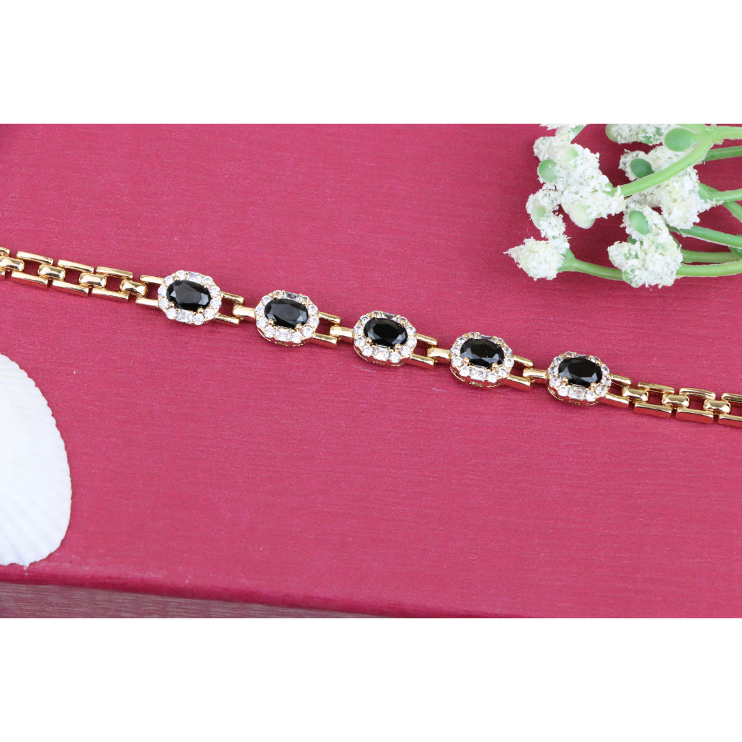 Elegant Rose Gold Oval Black Stone Bracelet with Crystal Halos, XPBL0736