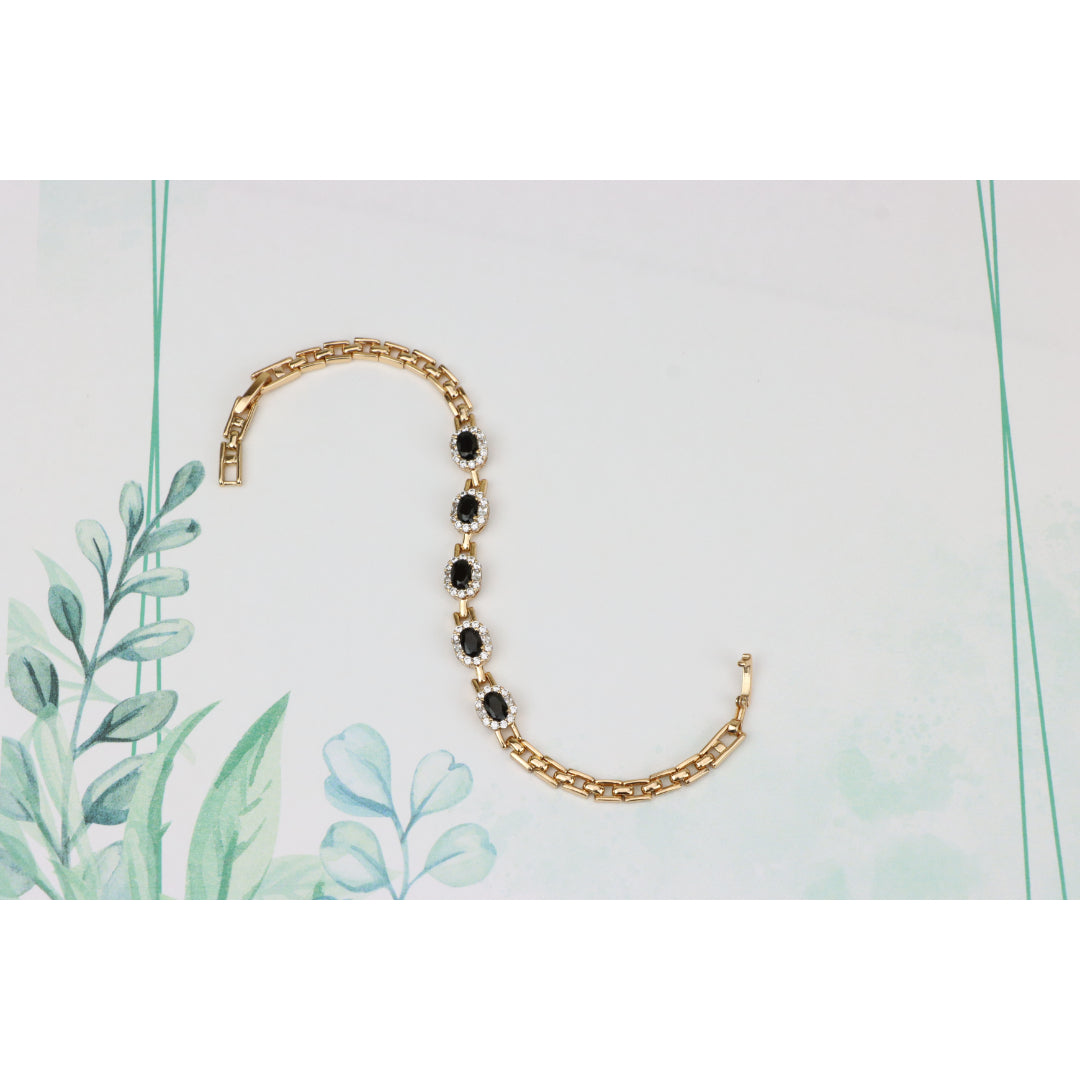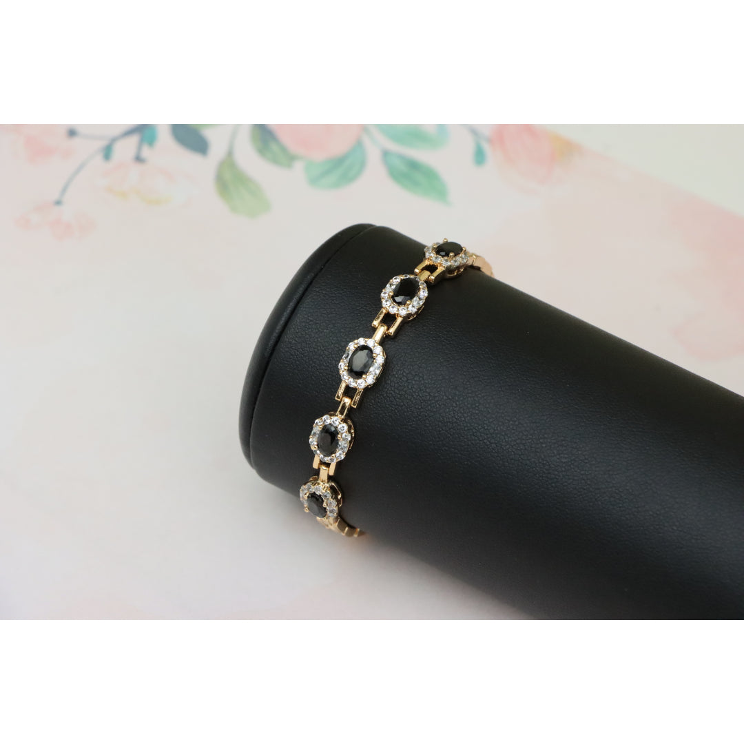 Elegant Rose Gold Oval Black Stone Bracelet with Crystal Halos, XPBL0736 (2074-5)