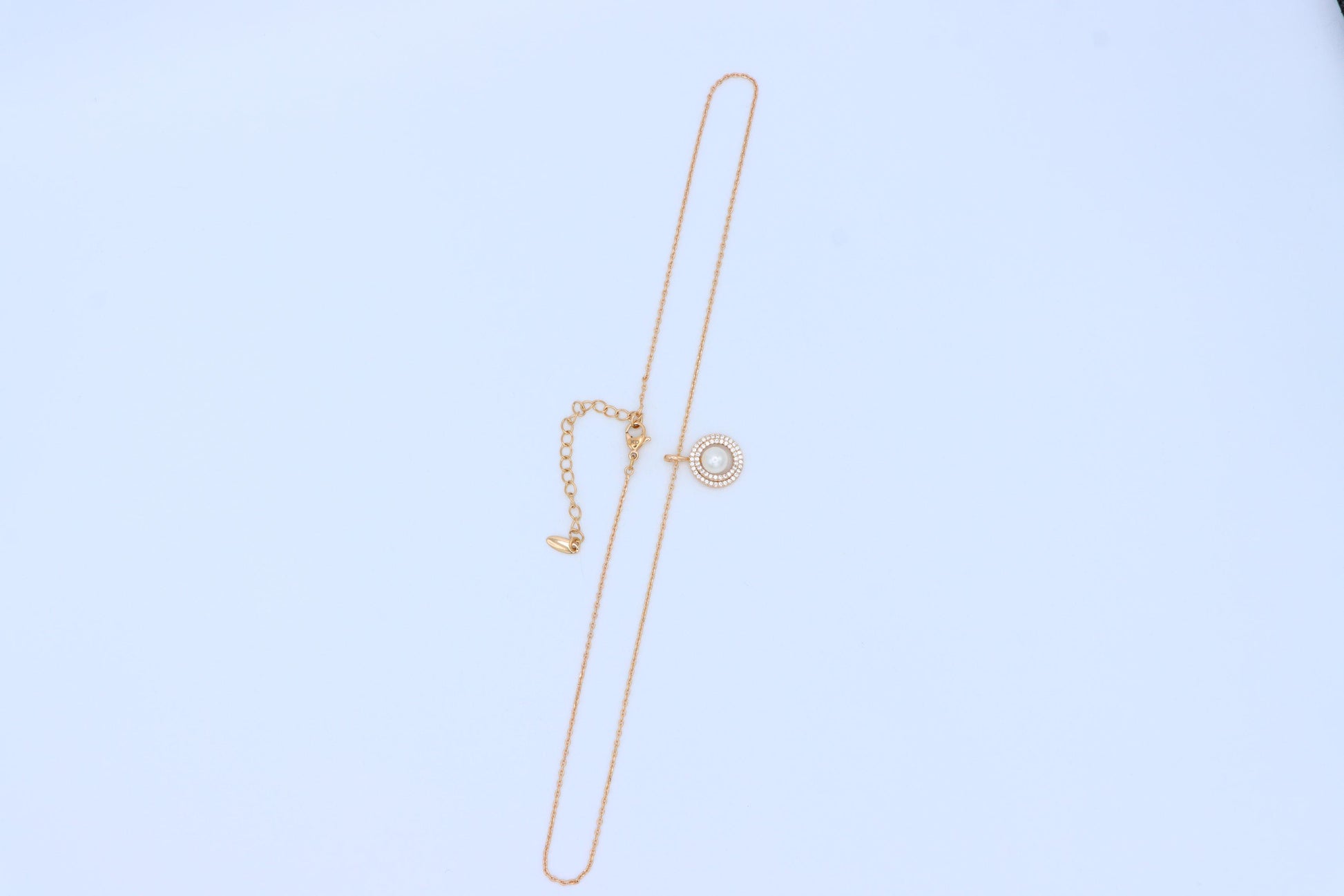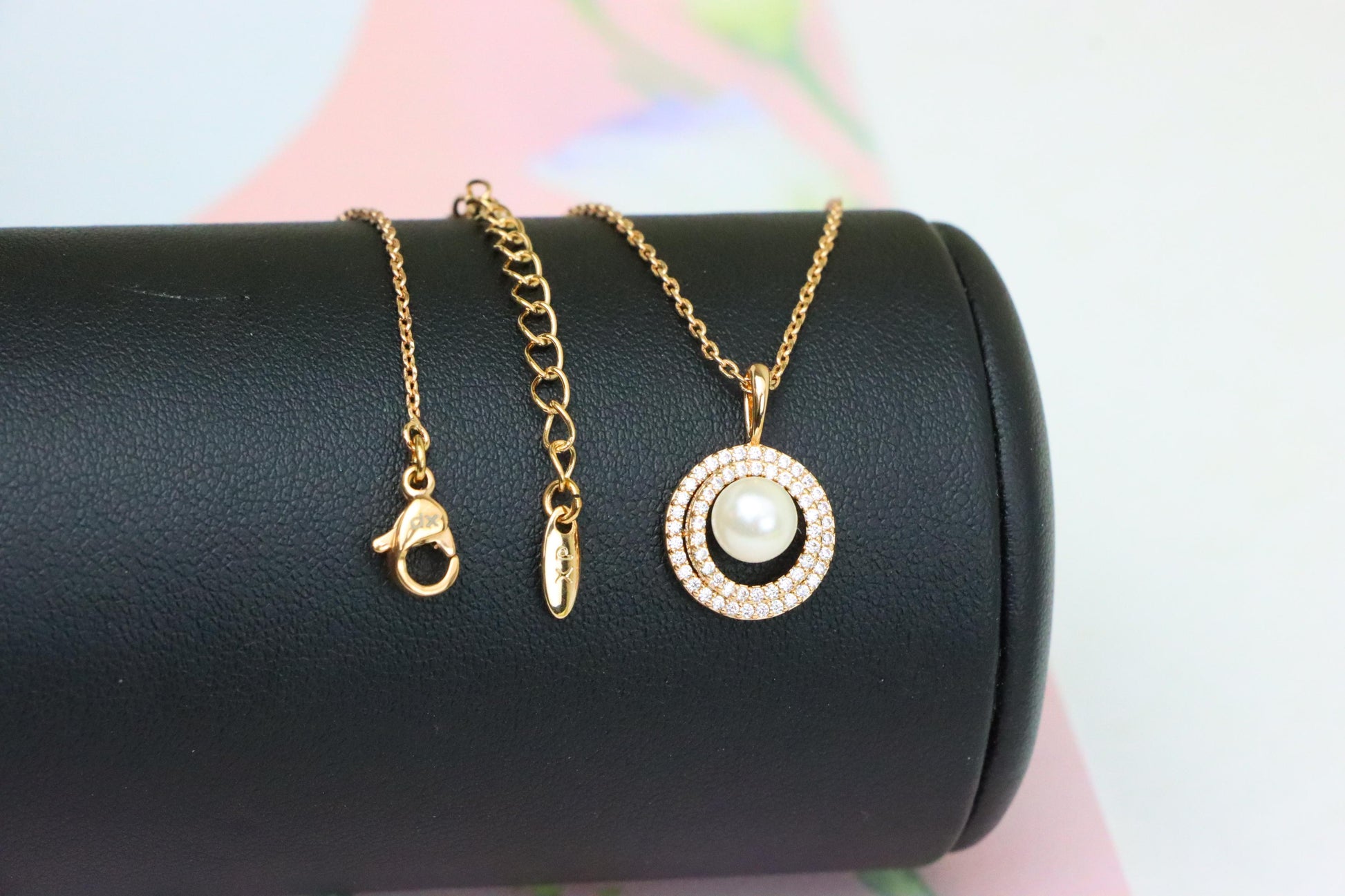 ✔ Features a round pearl encased in a sparkling double halo pendant
